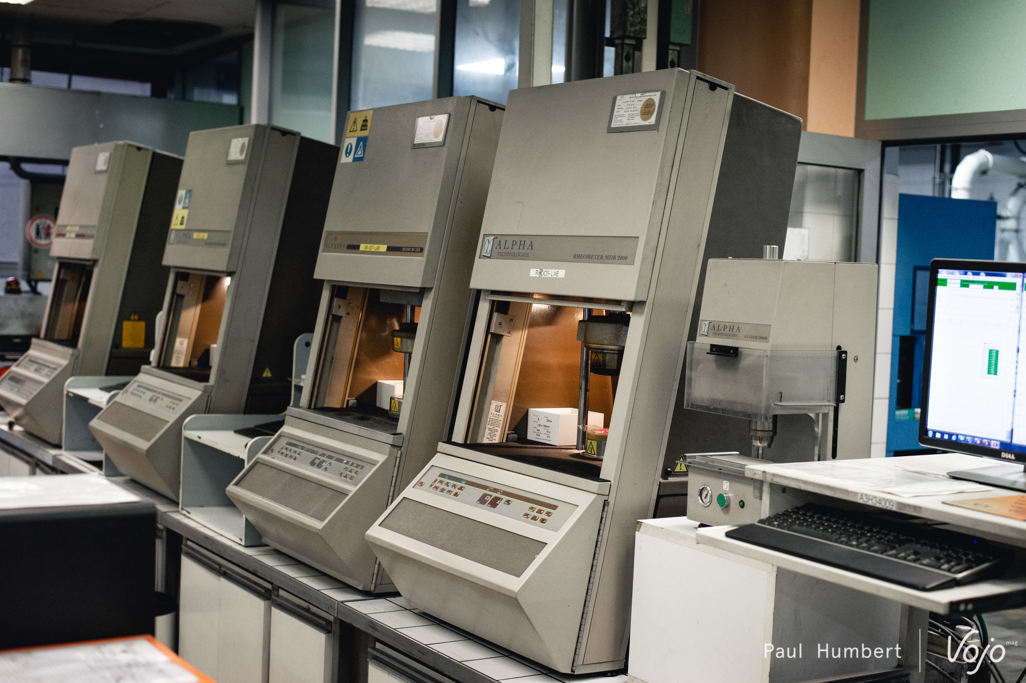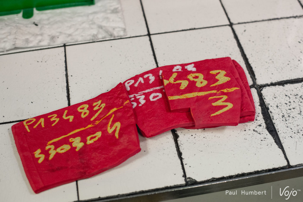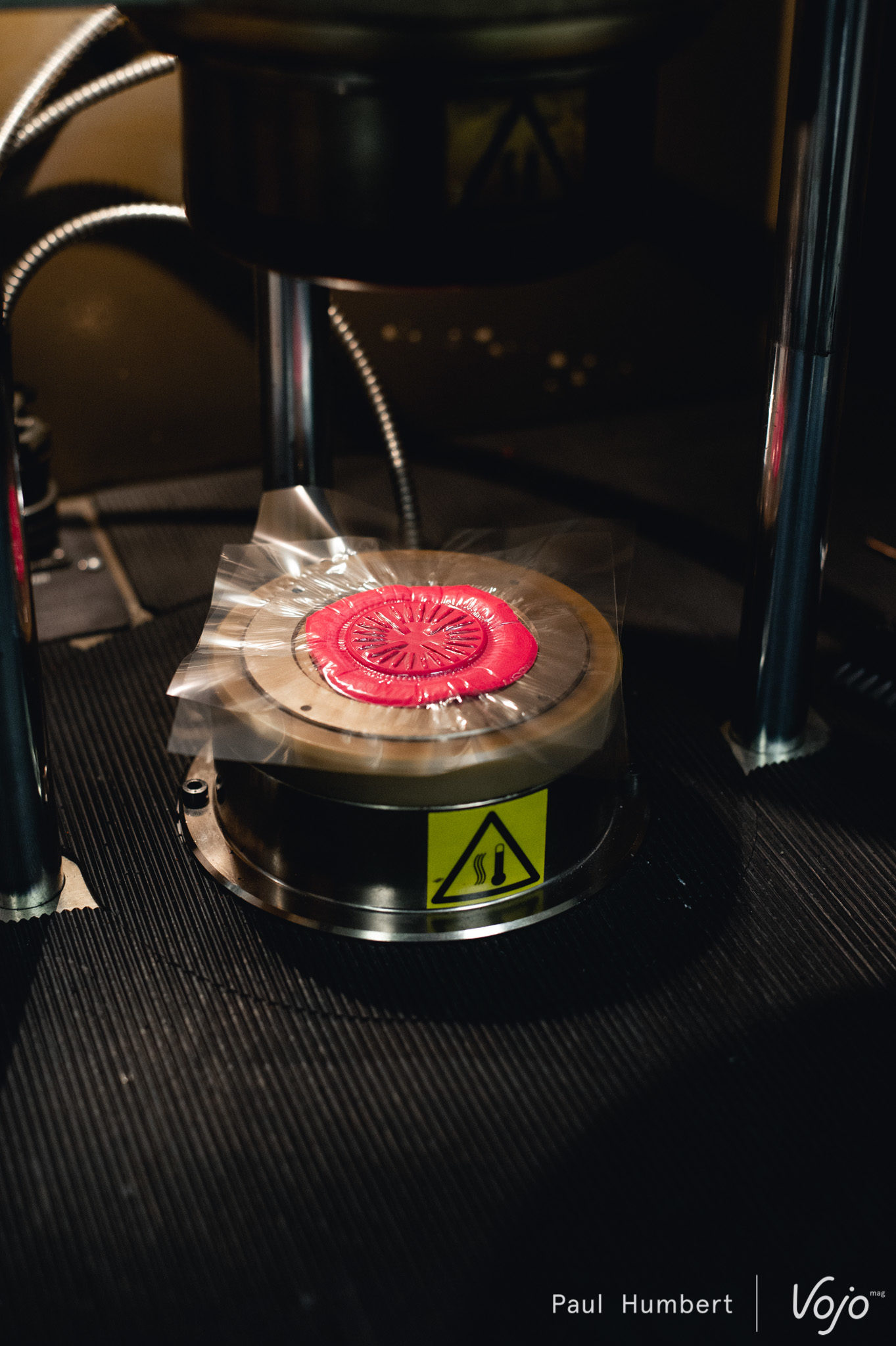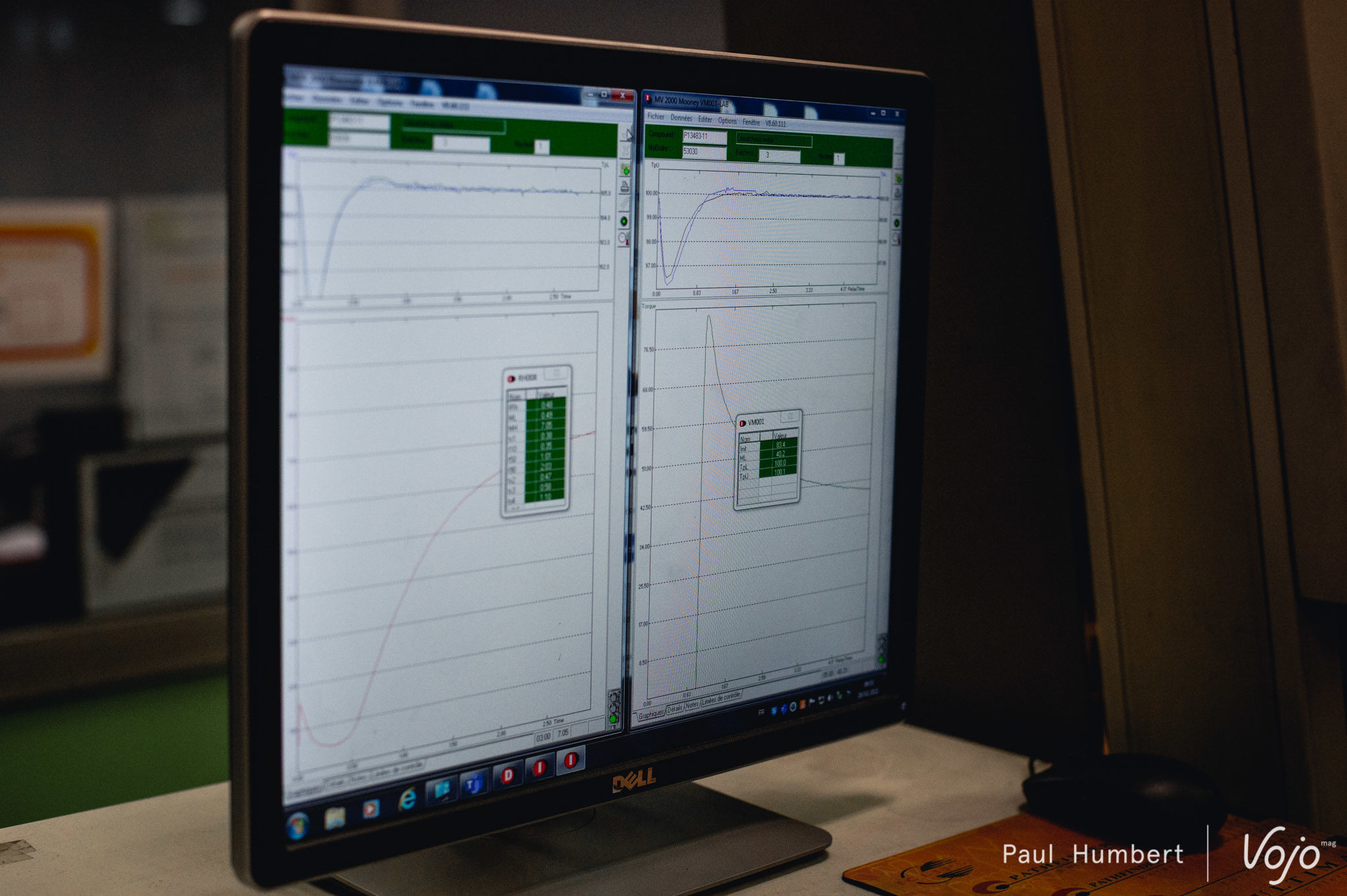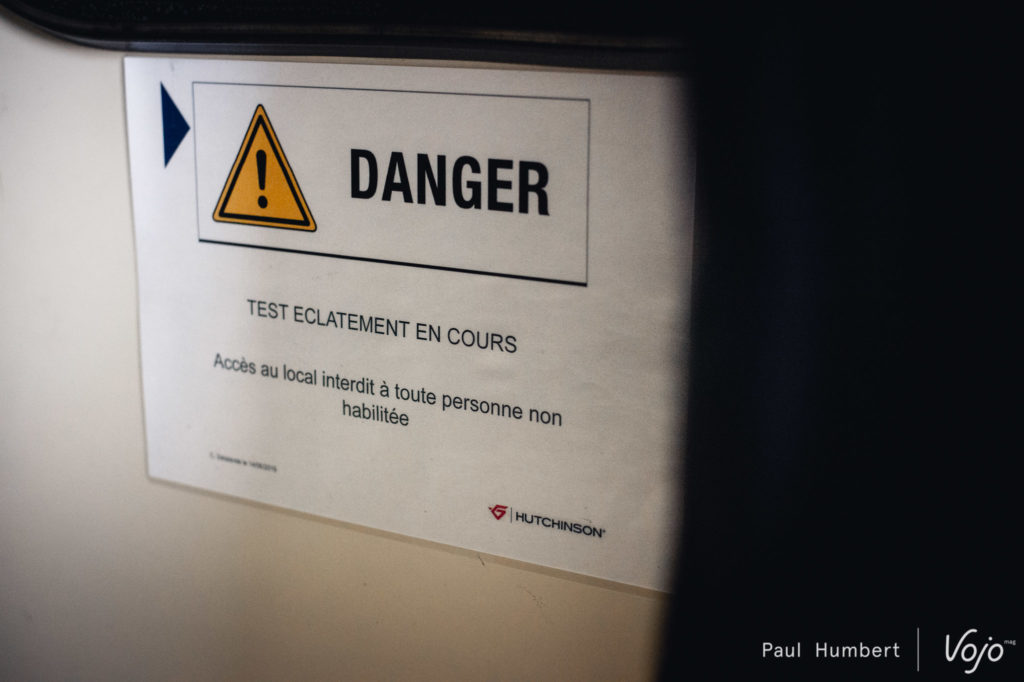Dernière étape avant validation : les tests. Hutchinson est équipé d’un laboratoire qui permet de tester la résistance des vignettes aux UV mais également et surtout la résistance à la perforation, un banc de rendement et un banc de déflexion (qui analyse le confort de la carcasse). On retrouve également un test de rigidité des tringles, un banc de fatigue et un banc d’éclatement (notre petit préféré).