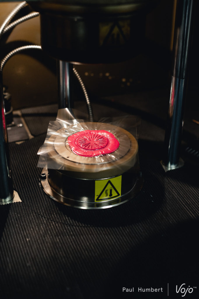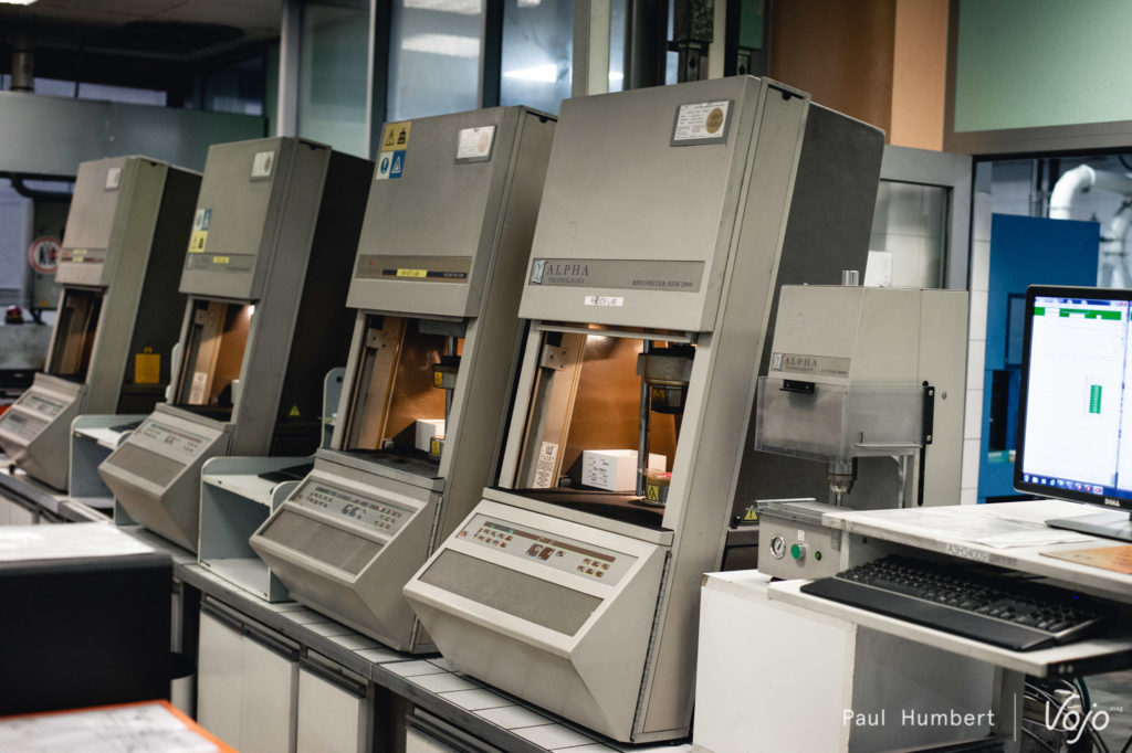 C’est Audrey, chimiste chez Hutchinson, qui nous accompagne et nous présente les machines assurant ce mélange mais également les tests des différents matériaux. Pour cette gomme mélangée, malaxée, travaillée sur des rouleaux, l’étape suivante est la vulcanisation.
