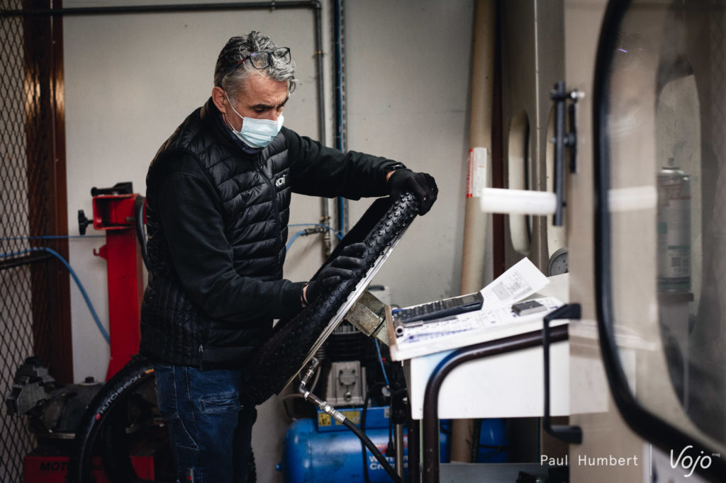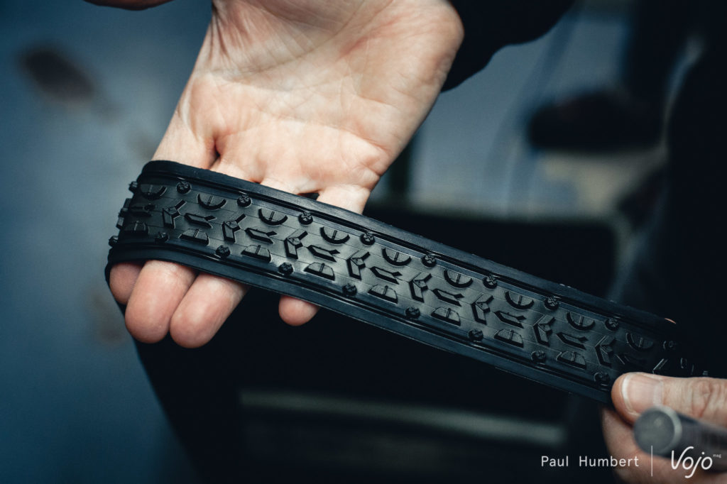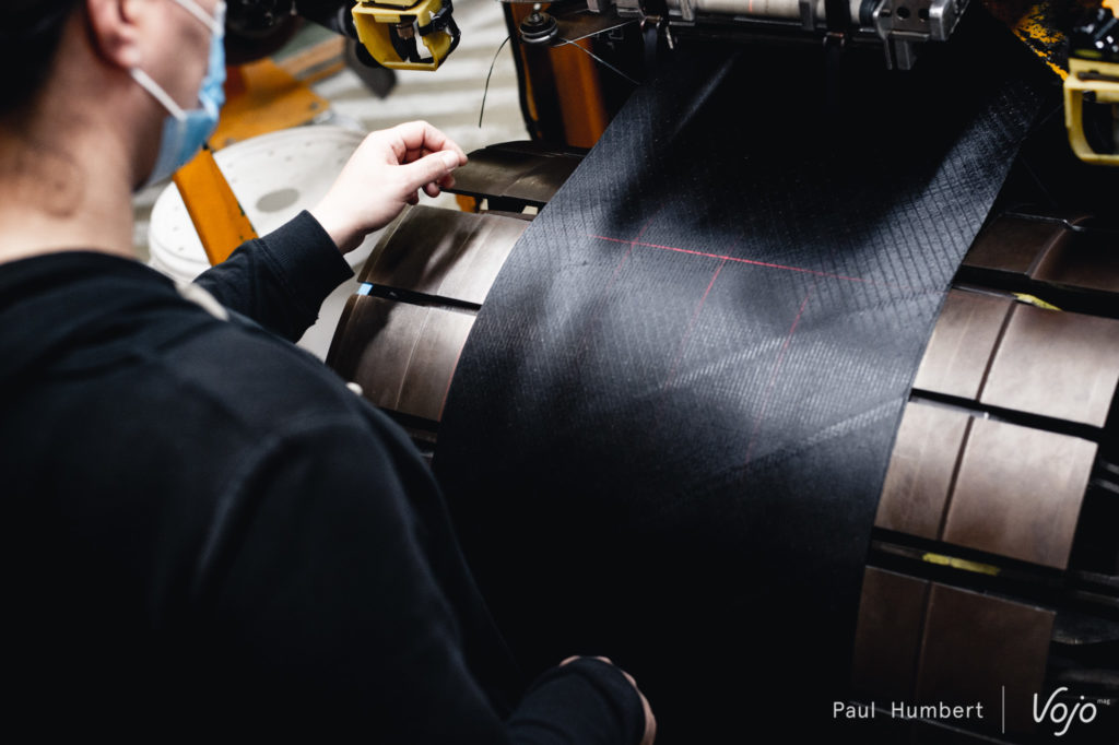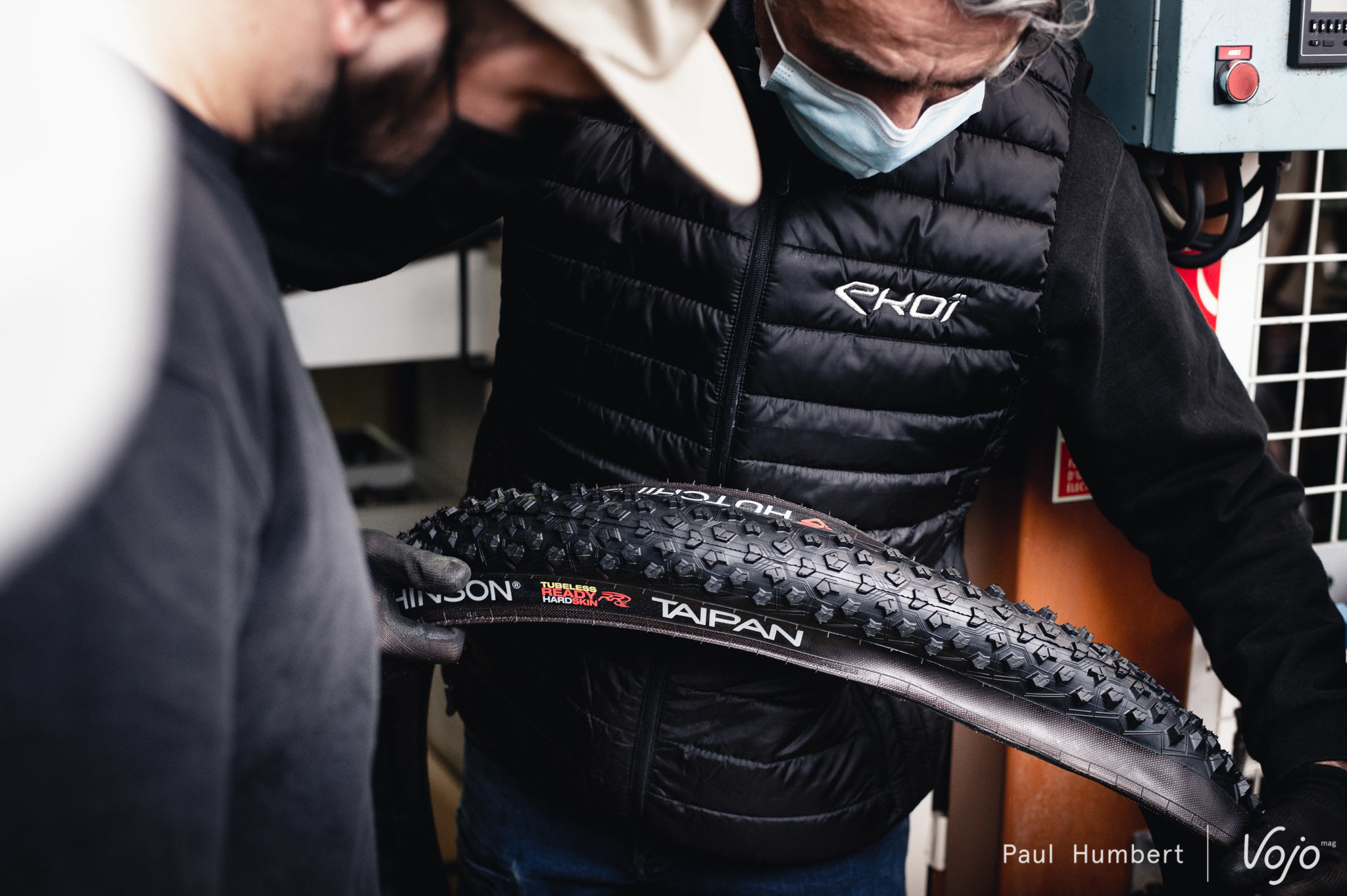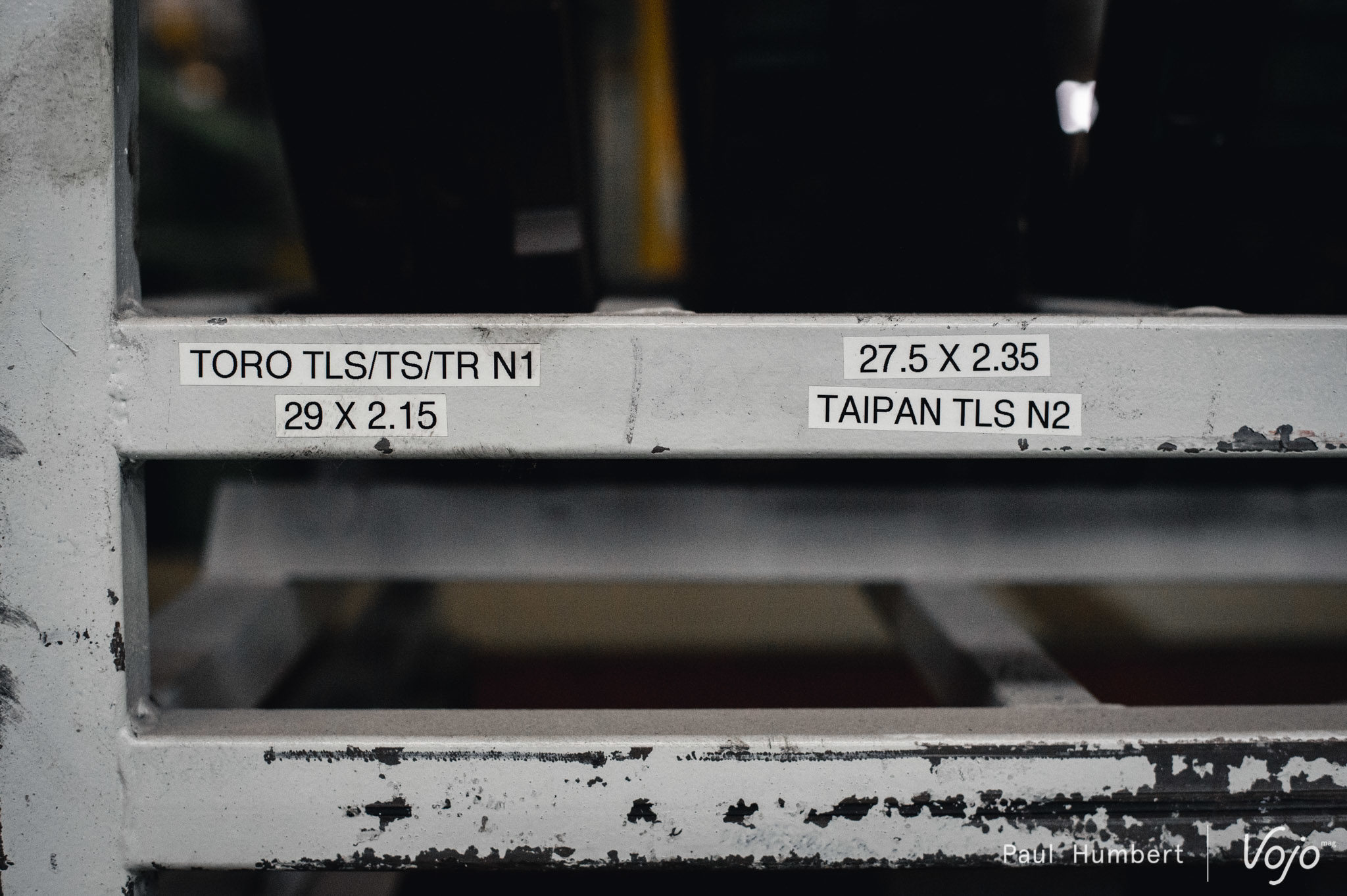 On continue la visite avec Joël Balez, ingénieur R&D et on passe à un autre élément structurel archi important du pneu de VTT : sa carcasse. La carcasse d’un pneu, c’est son squelette, ce qui lui permet de se « tenir » et qui vient définir beaucoup de ses qualités dynamiques.