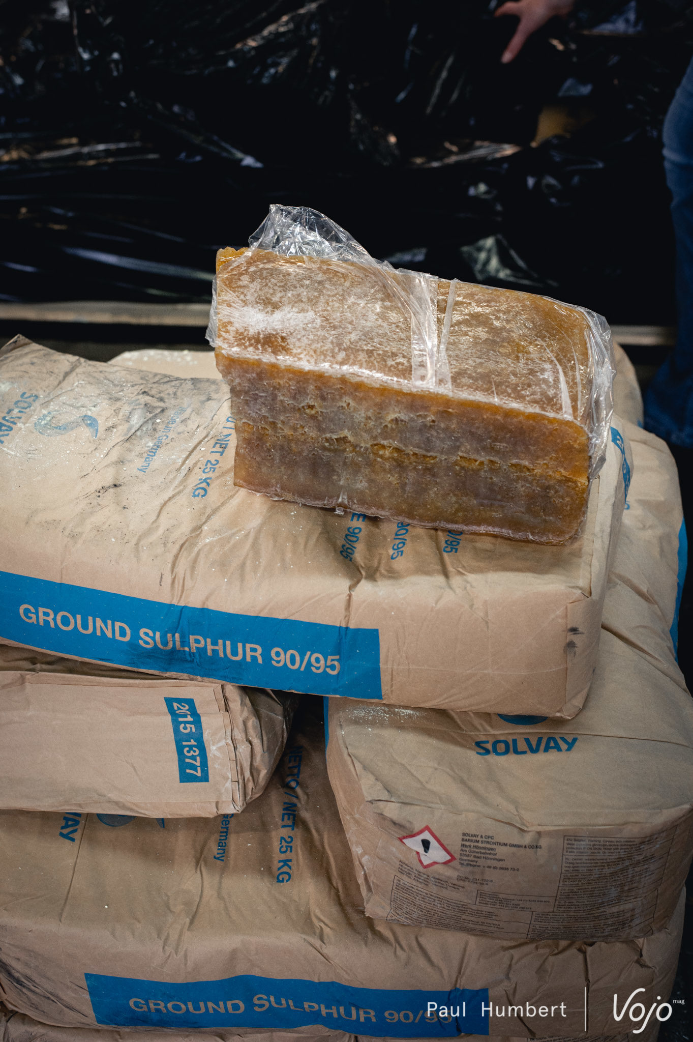 La gomme que nous avons découverte avec Audrey dans l’immense « cuisine » Hutchinson est triée et on en retrouve plusieurs types qui viendront se mélanger dans cette phase d’extrusion pour créer vos pneus à plusieurs densités. Les gommes sont réchauffées puis assemblées.