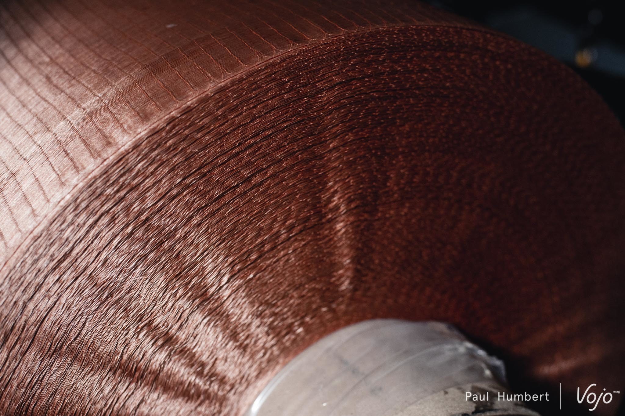 Ce sont des fils de kevlar trempés dans une solution caoutchouteuse qui viendront assurer ce rôle dans l’assemblage final.