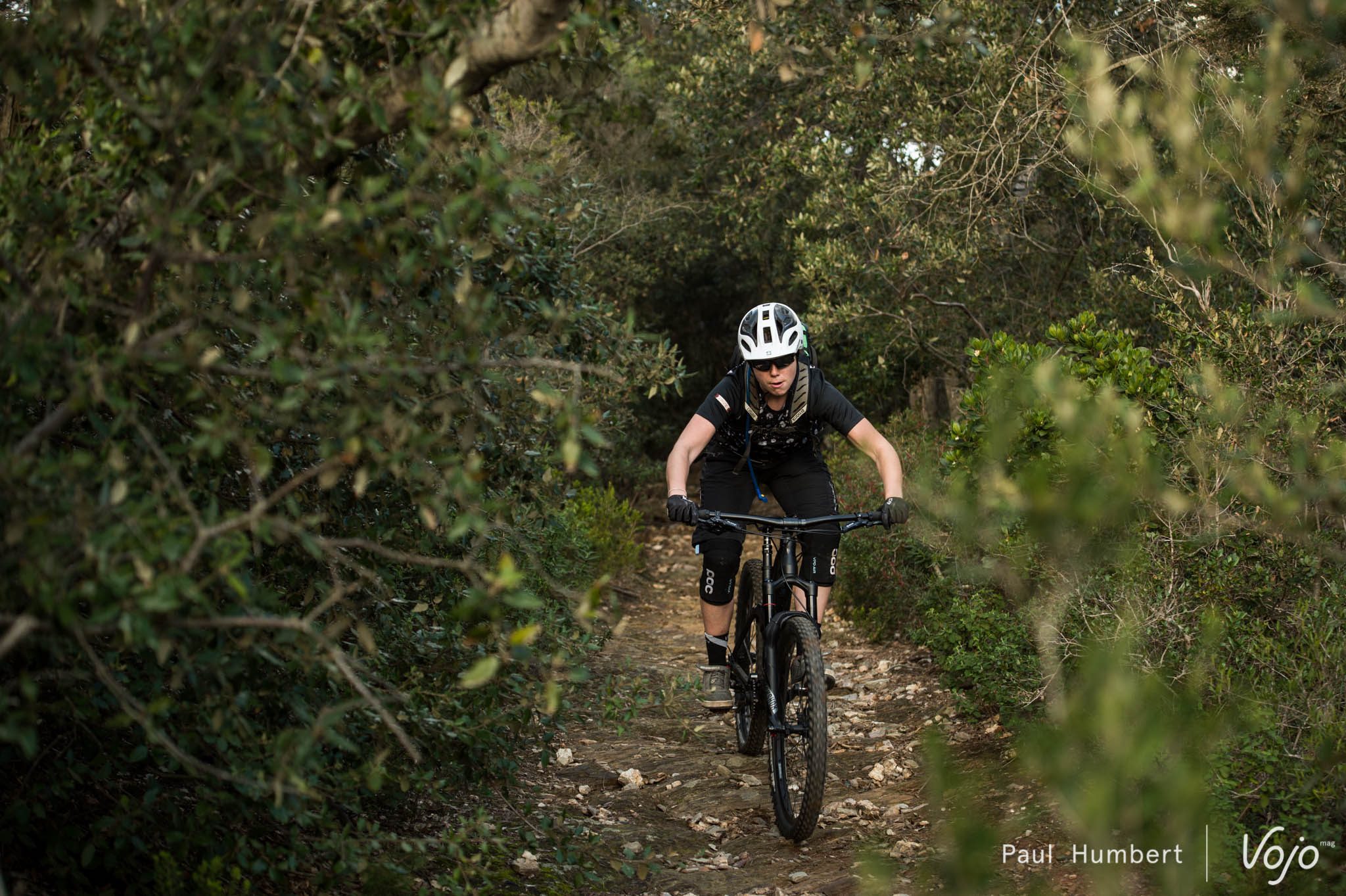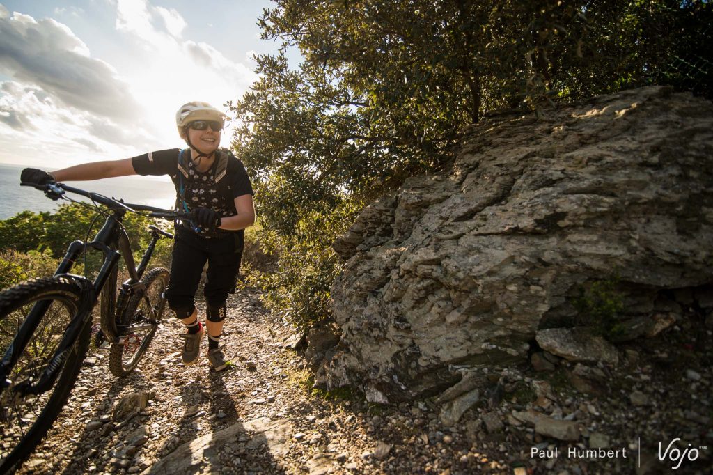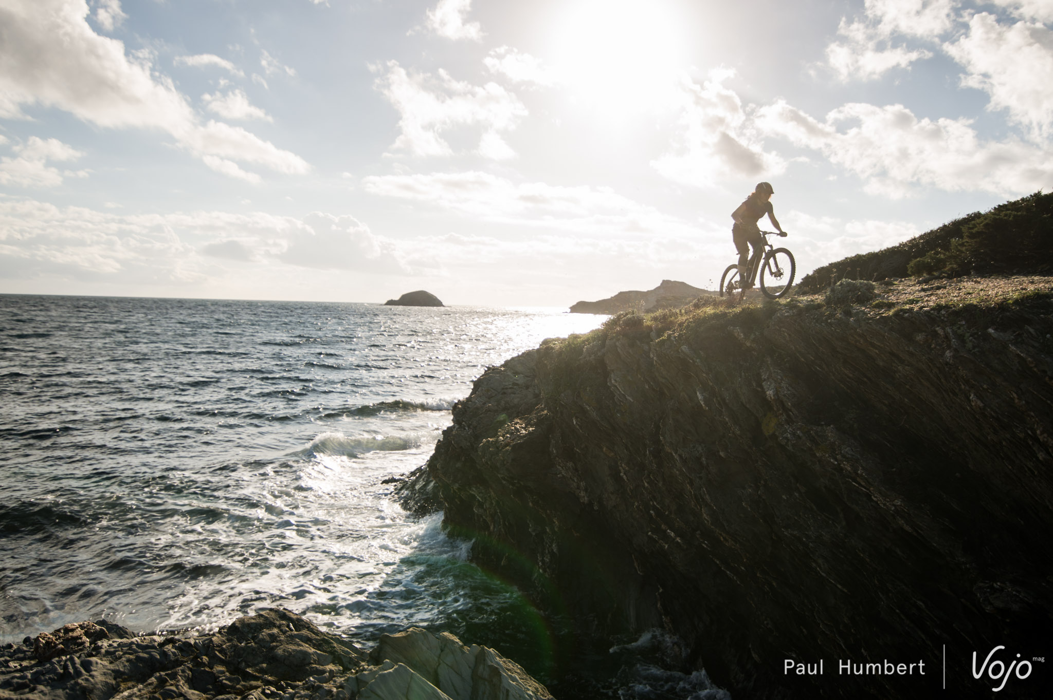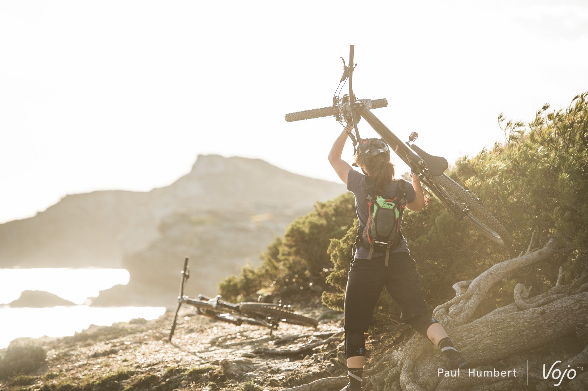 Le sentier est ludique, vallonné à souhait, alternant petites descentes trialisantes et montées rocailleuses et sinueuses. Il nous plonge tantôt dans le maquis, tantôt nous fait déboucher sur un point de vue bordant les falaises escarpées et le bleu sombre de la mer méditerranée en fin de journée.
