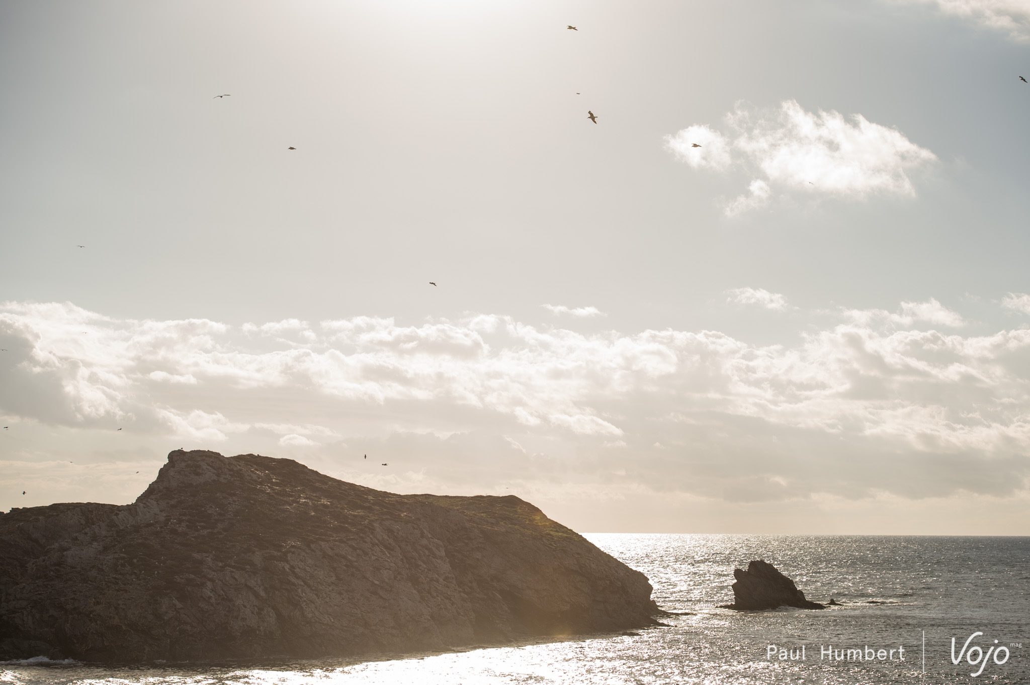 Les nuages ont disparu, la lumière fait prendre à la roche une couleur rougeâtre et de larges sourires s’affichent sur nos visages. Mais il est déjà temps de rentrer… la dernière navette est à 17h15 ! Nous reprenons la direction du village, avec un petit pincement au cœur : nous n’aurons pas eu le temps d’aller jusqu’au Langoustier, à la pointe ouest de l’île. Ce sera l’occasion d’y retourner l’hiver prochain !