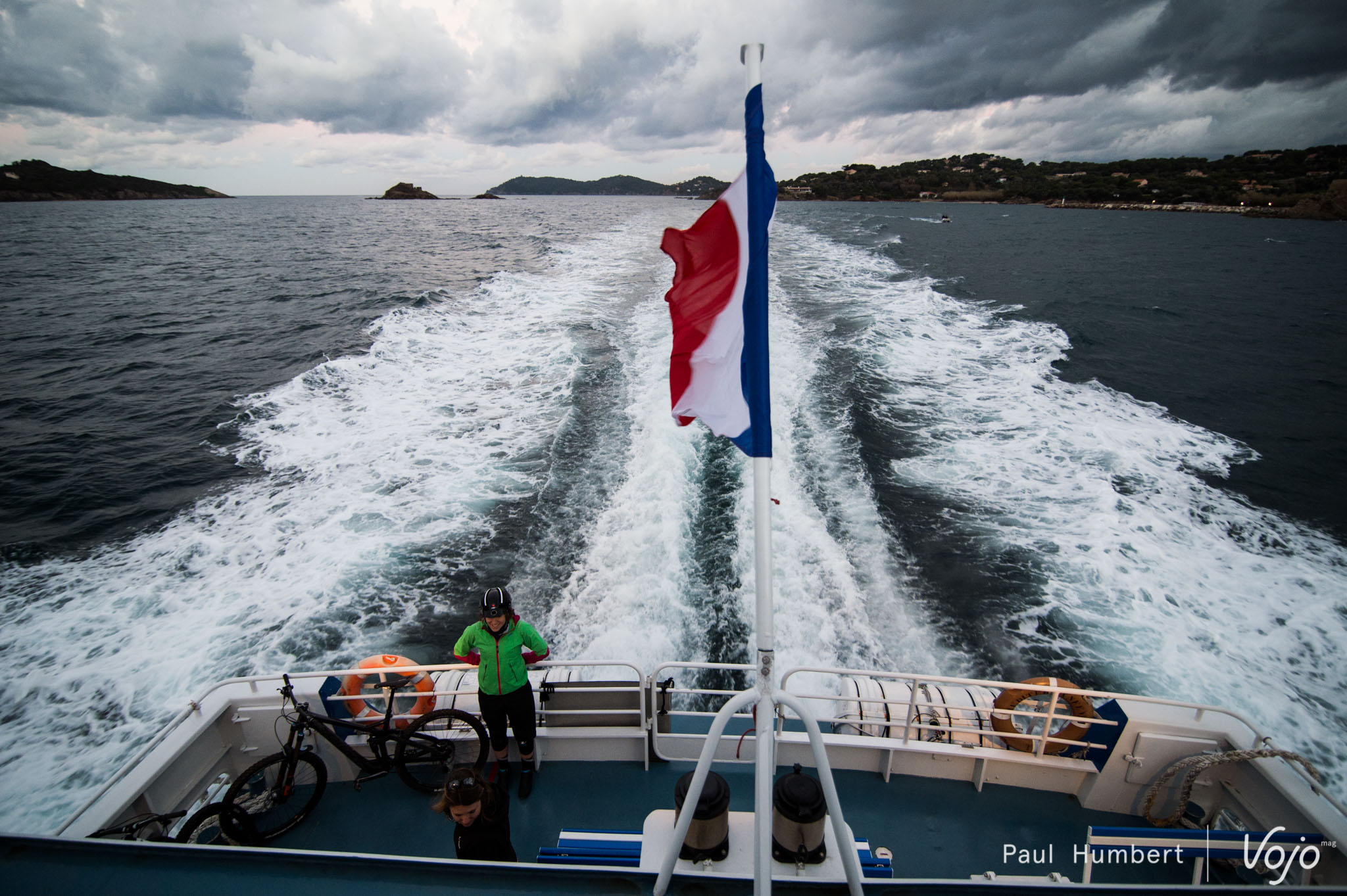Sur le retour, du bateau, nous saluons une dernière fois la belle Porquerolles. Son phare, tout juste allumé, semble nous dire au revoir. Ravis de notre journée, nous traçons un rapide bilan : une île charmante, avec des paysages à couper le souffle, quelques petits trails sympatiques pour aller y poser ses roues et une belle occasion de s’évader pour échapper à l’hiver ne serait-ce qu’une petite journée ! Seul un petit point noir est à déplorer, le prix de la traversée avec son vélo : 16,80€ par personne (hors saison) + 14,50€ par vélo… Mais que ne ferait-on pas, en cette saison, pour rouler les pieds dans l’eau ?