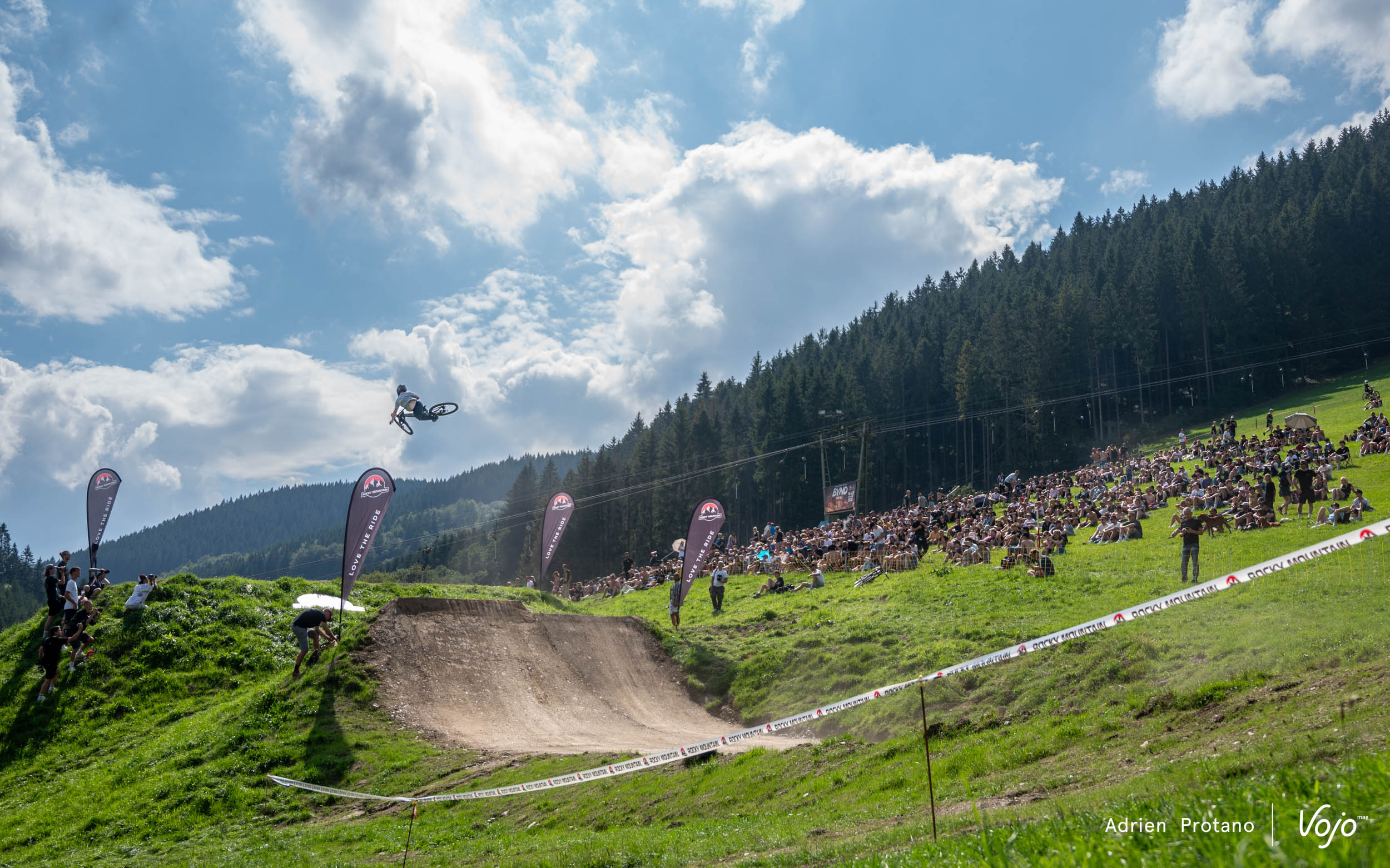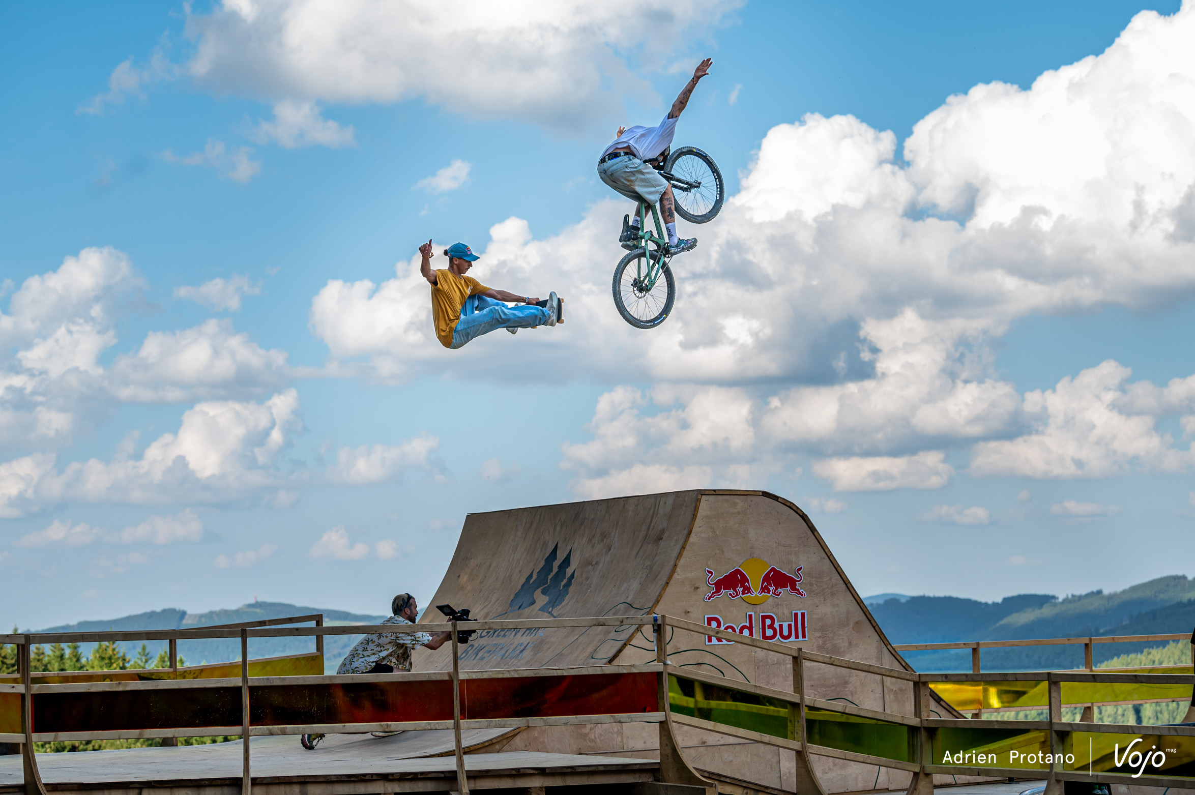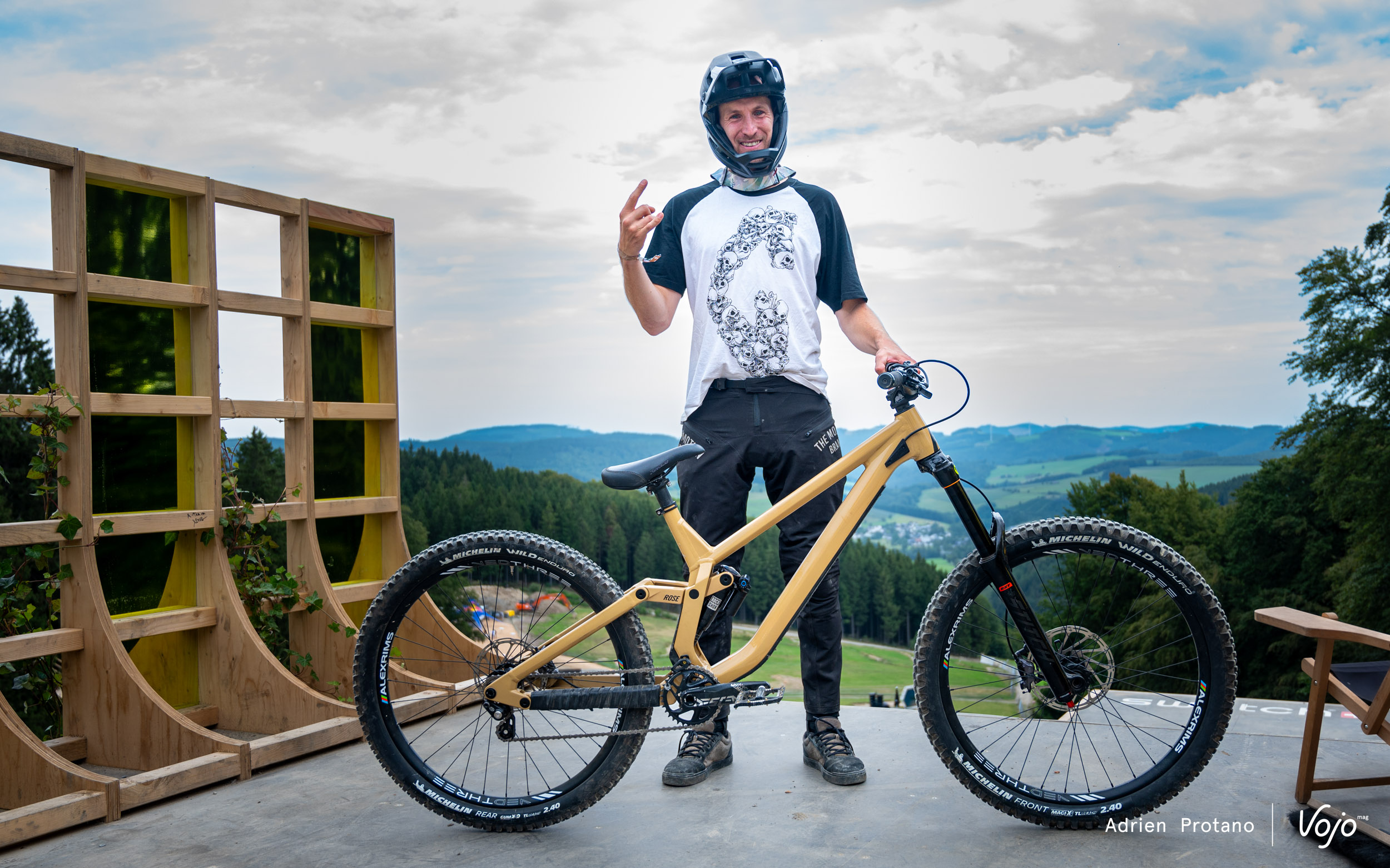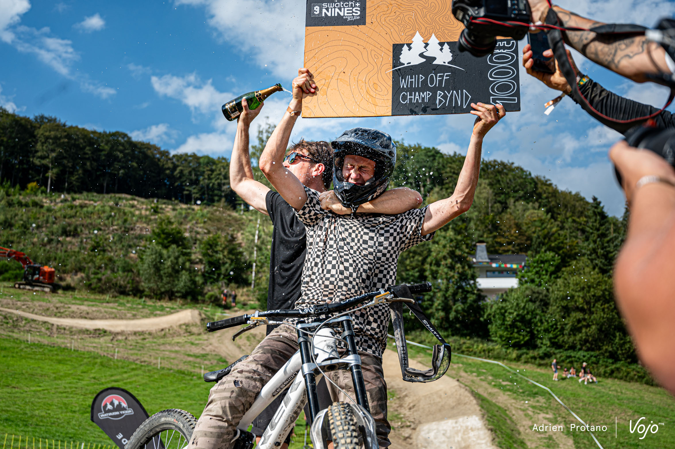 Bienvenu au Green Hill Bikepark pour le festival Beyond the Hill 2023 ! Situé à environ 3 heures de la frontière belge et à 2h de plus de Strasbourg, ce bikepark récemment ouvert à l’ouest de l’Allemagne a décidé de se lancer dans un projet fou : organiser un festival axé sur le VTT gravity tout en accueillant certains des meilleurs pilotes mondiaux de la discipline à l’occasion du Swatch Nines, une compétition de VTT slopestyle/freeride internationale. Anciennement connu sous le nom d’Audi Nines, le contest de VTT freeride/slopestyle revenait après une année de pause sous une nouvelle forme et dans un nouveau lieu : les « Swatch Nines » au sein du Greenhill bikepark. L’inspiration derrière cette compétition demeure toujours la même : « Nous avons fondé les Nines en opposition aux compétitions traditionnelles, comme un terrain de jeu où les athlètes peuvent se dépasser de la manière la plus sécurisée et la plus bienveillante possible. Ici, on ne met pas la pression pour faire de l’audience, mais on accompagne les riders dans le dépassement de leurs limites », explique Nico Zacek, fondateur des Swatch Nines. Afin d’exprimer leur talent et repousser les limites de leur discipline, les pilotes invités ont pu compter sur un parcours de qualité, tant visuellement que dans sa conception et sa construction. Mais à qui peut bien appartenir ce casque RedBull ? Difficile à deviner étant donné le nombre important de pilotes faisant partie de l’écurie de la marque présents ce week-end… On vous donne la réponse : celui-ci appartient à Harriet Burbidge-Smith. La pilote australienne était solidement entourée pour cette édition 2023 des Swatch Nines puisque 12 pilotes féminines ont répondu présent au total, dont notamment Casey Brown, Caroline Buchanan, Robin Goomes, Vinny Armstrong… Chez les hommes, la liste était d’autant plus longue, mais pas moins exclusive pour autant avec des pilotes de renom tels que Nicholi Rogatkin, Sam Pilgrim, Kaos Seagrave, Erik Fedko, Szymon Godziek, Tomas Lemoine… et bien d’autres encore. Échauffement terminé pour les pilotes, public en place, le show va pouvoir commencer ! À peine 16 ans et pourtant déjà à la première place du classement Freeride MTB World Tour, Patricia Druwen n’a pas attendu longtemps avant de démontrer au public son habileté sur ce parcours. La pilote allemande s’est imposée comme une pionnière, ouvrant la voie à la prochaine étape pour le VTT féminin avec un 540 et un Backflip Triple Barspin… Première pilote féminine de l’histoire à réaliser ces deux figures, Patricia Druwen repartira avec le prix de la meilleure figure slopestyle chez les femmes. Chez les hommes, les World’s First Tricks (comprenez là une figure réalisée pour la première fois dans le monde) s’enchaînent également ! Les frères Ruso, Elias et Daniel, ont notamment réussi un double backflip Tuck-No-Hander ainsi qu’un double backflip Can-Can. Tout récemment remis d’une blessure, Nicholi Rogatkin a ravi ses nombreux fans en exécutant l’une de ses figures signature dénommée « cash roll ». Avec ses 5 titres de championne du monde de four-cross, ses deux titres en contre-la-montre BMX et son maillot irisé en BMX en 2013, on ne présente plus Caroline Buchanan ! Si la pilote australienne est multiplement sacrée, elle fut également la première pilote féminine à réussir un frontflip en 2021, et un Superman Seat Grab Indian-Air lors de cette édition ! Je n’ai jamais vraiment fait un saut aussi grand qu’ici auparavant ! « Après être passée du BMX au VTT, j’avais très envie de me lancer dans le gros vélo, qui était complètement nouveau pour moi. Je n’ai jamais vraiment fait un saut aussi grand qu’ici auparavant, et réaliser un Superman Seat Grab Indian-Air devant une foule au Nines était incroyable », nous confiait la pilote Trek. Les pilotes prennent un malin plaisir à se motiver les uns les autres afin de se dépasser et le public en prend plein les rétines ! Le spectacle est impressionnant et même la météo est au beau fixe, après avoir été plus capricieuse durant le début de semaine et les premiers jours de reconnaissance du circuit par les athlètes. Robin Goomes lance le premier backflip de sa carrière, tout le monde retient son souffle… et la pilote néo-zélandaise retombe parfaitement sur ses deux roues. Dans la foulée, le pilote espagnol Bienvenido Aguado offre au public un spectaculaire Frontflip Cliffhanger sur le plus gros saut du parcours ! « Ce nouveau spot est incroyable, le parcours est super amusant, c’est un régal ! Voir les frères Ruso faire de gros tricks m’a motivé à faire ce trick et à le réussir devant ce public en feu », nous confiait juste après le pilote YT. Le parcours permettait également de marier les disciplines puisque 5 skateboarders triés sur le volet se sont joints à la fête, donnant lieu à de jolies scènes comme celle-ci entre Tomas Lemoine et Danny Léon ! Après une semaine à tenter de repousser leurs limites (et celles de la discipline par la même occasion), les pilotes se retrouvent finalement pour la soirée de gala et la remise des prix des meilleures figures, tant en freeride qu’en slopestyle, ainsi que pour désigner les pilotes masculin et féminin les plus méritants de la semaine. 10h pile, la foule investit rapidement le salon et ses différents stands dont notamment Santa Cruz, Rocky Mountain, Rose, Niner, Muc-Off, Schwalbe… Si la foule se presse aux alentours du stand de la marque allemande Rose, c’est en raison de l’arrivée d’un tout-nouveau modèle DH/Freeride dévoilé la veille. Baptisé Scrub, il se veut accessible et en aluminium avec une fourchette de prix allant de 3299€ à 4299€. Lukas Knopf roulait ce nouveau modèle sur le parcours des Swatch Nines. « Un monde de différence par rapport à l’ancien modèle (NDLR le Rose Soul Fire), qui com