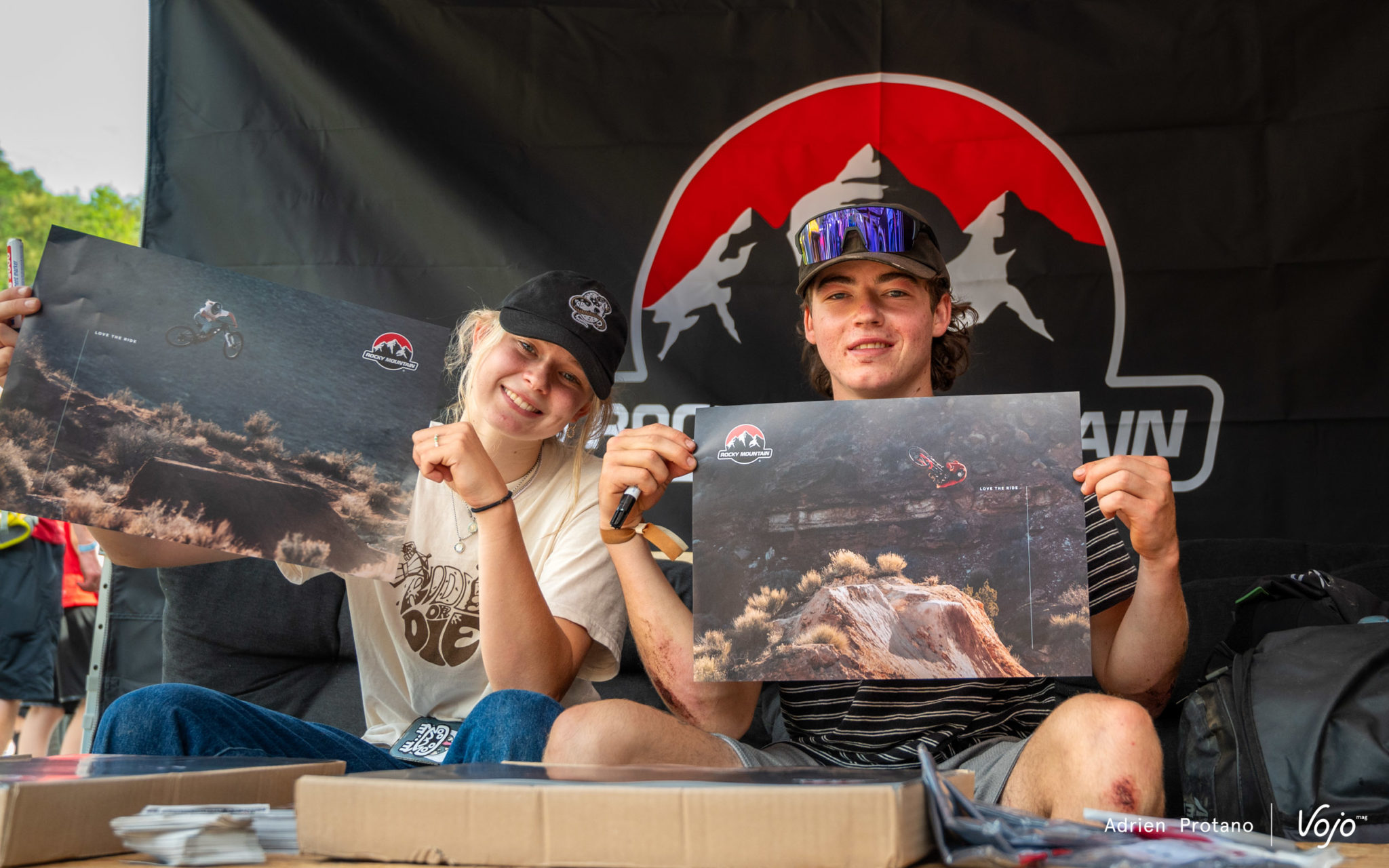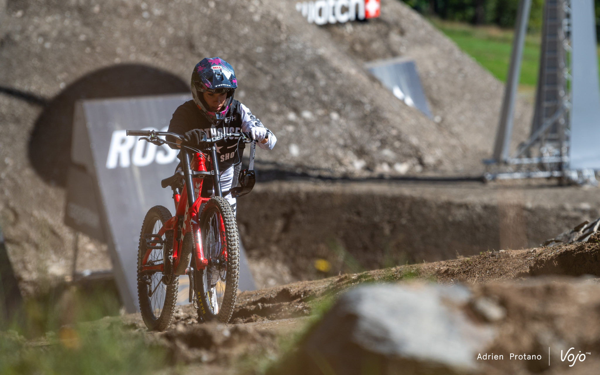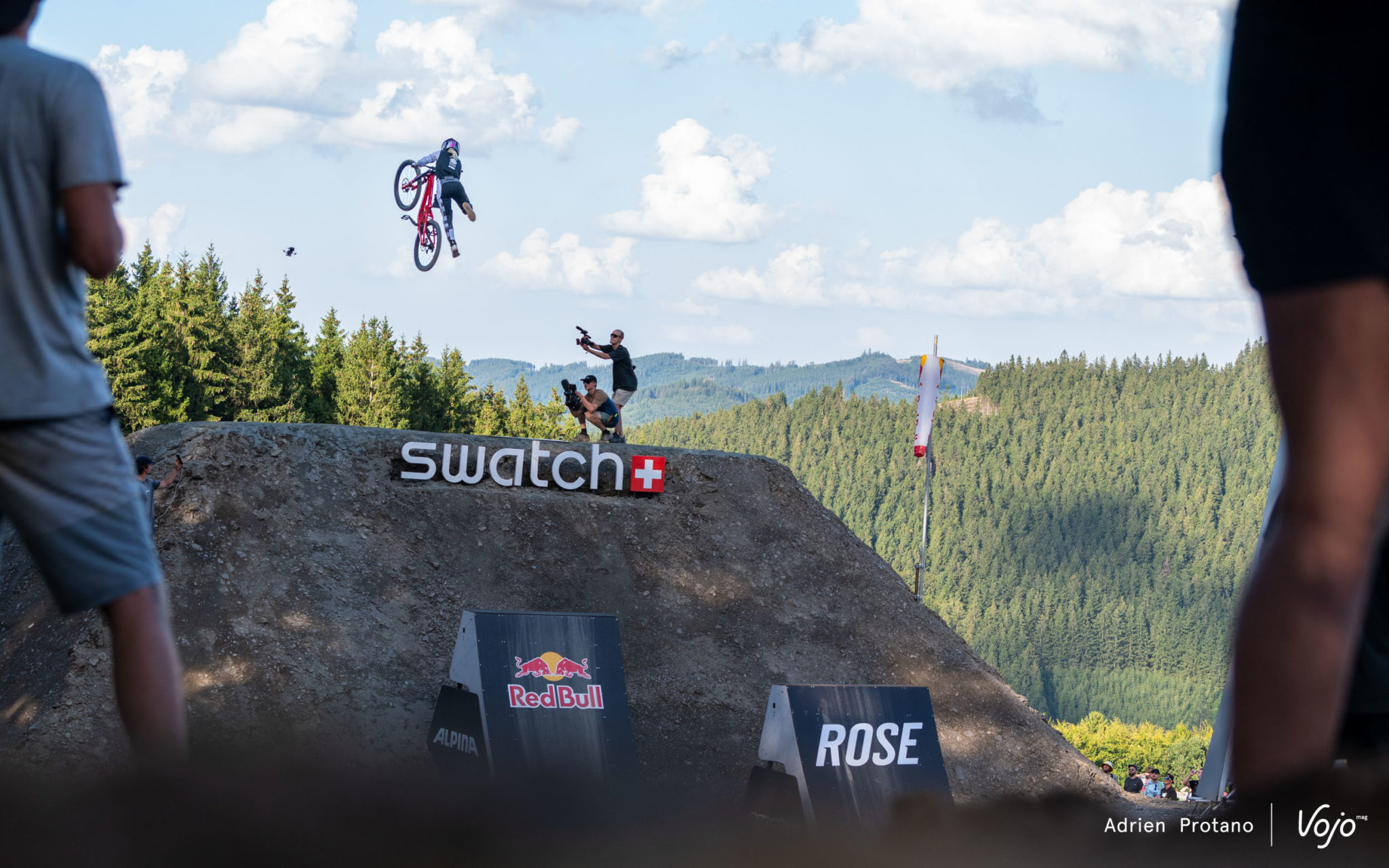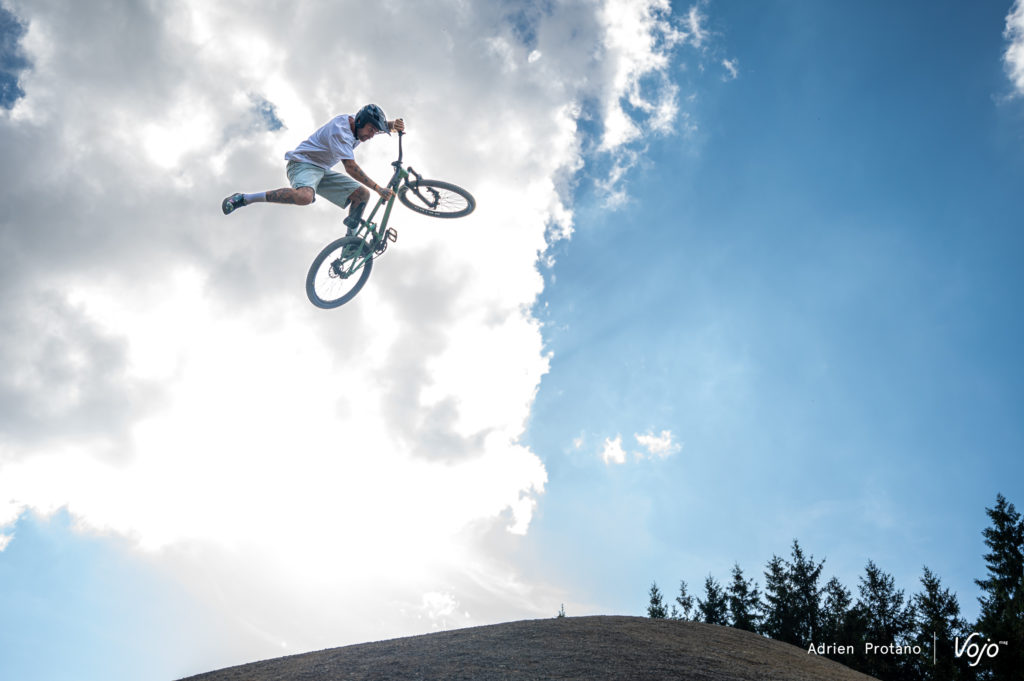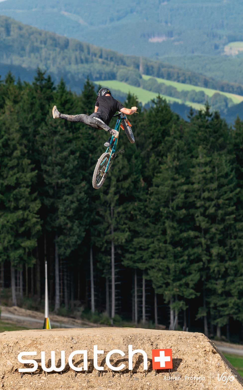 Bienvenu au Green Hill Bikepark pour le festival Beyond the Hill 2023 ! Situé à environ 3 heures de la frontière belge et à 2h de plus de Strasbourg, ce bikepark récemment ouvert à l’ouest de l’Allemagne a décidé de se lancer dans un projet fou : organiser un festival axé sur le VTT gravity tout en accueillant certains des meilleurs pilotes mondiaux de la discipline à l’occasion du Swatch Nines, une compétition de VTT slopestyle/freeride internationale. Anciennement connu sous le nom d’Audi Nines, le contest de VTT freeride/slopestyle revenait après une année de pause sous une nouvelle forme et dans un nouveau lieu : les « Swatch Nines » au sein du Greenhill bikepark. L’inspiration derrière cette compétition demeure toujours la même : « Nous avons fondé les Nines en opposition aux compétitions traditionnelles, comme un terrain de jeu où les athlètes peuvent se dépasser de la manière la plus sécurisée et la plus bienveillante possible. Ici, on ne met pas la pression pour faire de l’audience, mais on accompagne les riders dans le dépassement de leurs limites », explique Nico Zacek, fondateur des Swatch Nines. Afin d’exprimer leur talent et repousser les limites de leur discipline, les pilotes invités ont pu compter sur un parcours de qualité, tant visuellement que dans sa conception et sa construction. Mais à qui peut bien appartenir ce casque RedBull ? Difficile à deviner étant donné le nombre important de pilotes faisant partie de l’écurie de la marque présents ce week-end… On vous donne la réponse : celui-ci appartient à Harriet Burbidge-Smith. La pilote australienne était solidement entourée pour cette édition 2023 des Swatch Nines puisque 12 pilotes féminines ont répondu présent au total, dont notamment Casey Brown, Caroline Buchanan, Robin Goomes, Vinny Armstrong… Chez les hommes, la liste était d’autant plus longue, mais pas moins exclusive pour autant avec des pilotes de renom tels que Nicholi Rogatkin, Sam Pilgrim, Kaos Seagrave, Erik Fedko, Szymon Godziek, Tomas Lemoine… et bien d’autres encore. Échauffement terminé pour les pilotes, public en place, le show va pouvoir commencer ! À peine 16 ans et pourtant déjà à la première place du classement Freeride MTB World Tour, Patricia Druwen n’a pas attendu longtemps avant de démontrer au public son habileté sur ce parcours. La pilote allemande s’est imposée comme une pionnière, ouvrant la voie à la prochaine étape pour le VTT féminin avec un 540 et un Backflip Triple Barspin… Première pilote féminine de l’histoire à réaliser ces deux figures, Patricia Druwen repartira avec le prix de la meilleure figure slopestyle chez les femmes. Chez les hommes, les World’s First Tricks (comprenez là une figure réalisée pour la première fois dans le monde) s’enchaînent également ! Les frères Ruso, Elias et Daniel, ont notamment réussi un double backflip Tuck-No-Hander ainsi qu’un double backflip Can-Can. Tout récemment remis d’une blessure, Nicholi Rogatkin a ravi ses nombreux fans en exécutant l’une de ses figures signature dénommée « cash roll ». Avec ses 5 titres de championne du monde de four-cross, ses deux titres en contre-la-montre BMX et son maillot irisé en BMX en 2013, on ne présente plus Caroline Buchanan ! Si la pilote australienne est multiplement sacrée, elle fut également la première pilote féminine à réussir un frontflip en 2021, et un Superman Seat Grab Indian-Air lors de cette édition ! Je n’ai jamais vraiment fait un saut aussi grand qu’ici auparavant ! « Après être passée du BMX au VTT, j’avais très envie de me lancer dans le gros vélo, qui était complètement nouveau pour moi. Je n’ai jamais vraiment fait un saut aussi grand qu’ici auparavant, et réaliser un Superman Seat Grab Indian-Air devant une foule au Nines était incroyable », nous confiait la pilote Trek. Les pilotes prennent un malin plaisir à se motiver les uns les autres afin de se dépasser et le public en prend plein les rétines ! Le spectacle est impressionnant et même la météo est au beau fixe, après avoir été plus capricieuse durant le début de semaine et les premiers jours de reconnaissance du circuit par les athlètes. Robin Goomes lance le premier backflip de sa carrière, tout le monde retient son souffle… et la pilote néo-zélandaise retombe parfaitement sur ses deux roues. Dans la foulée, le pilote espagnol Bienvenido Aguado offre au public un spectaculaire Frontflip Cliffhanger sur le plus gros saut du parcours ! « Ce nouveau spot est incroyable, le parcours est super amusant, c’est un régal ! Voir les frères Ruso faire de gros tricks m’a motivé à faire ce trick et à le réussir devant ce public en feu », nous confiait juste après le pilote YT. Le parcours permettait également de marier les disciplines puisque 5 skateboarders triés sur le volet se sont joints à la fête, donnant lieu à de jolies scènes comme celle-ci entre Tomas Lemoine et Danny Léon ! Après une semaine à tenter de repousser leurs limites (et celles de la discipline par la même occasion), les pilotes se retrouvent finalement pour la soirée de gala et la remise des prix des meilleures figures, tant en freeride qu’en slopestyle, ainsi que pour désigner les pilotes masculin et féminin les plus méritants de la semaine. 10h pile, la foule investit rapidement le salon et ses différents stands dont notamment Santa Cruz, Rocky Mountain, Rose, Niner, Muc-Off, Schwalbe… Si la foule se presse aux alentours du stand de la marque allemande Rose, c’est en raison de l’arrivée d’un tout-nouveau modèle DH/Freeride dévoilé la veille. Baptisé Scrub, il se veut accessible et en aluminium avec une fourchette de prix allant de 3299€ à 4299€. Lukas Knopf roulait ce nouveau modèle sur le parcours des Swatch Nines. « Un monde de différence par rapport à l’ancien modèle (NDLR le Rose Soul Fire), qui com