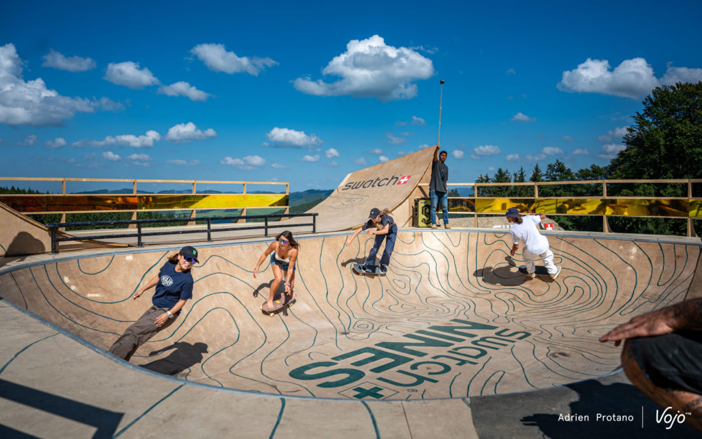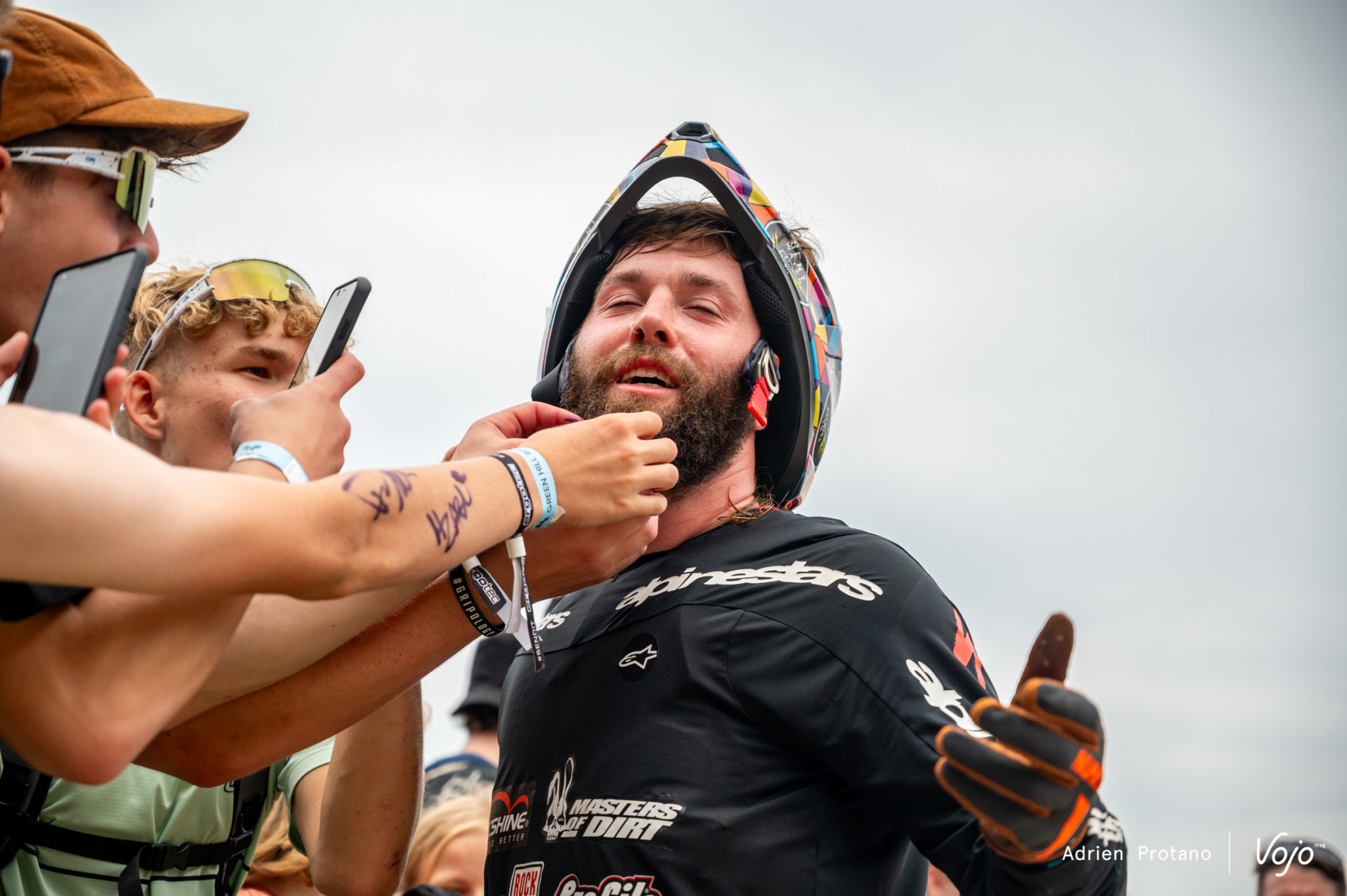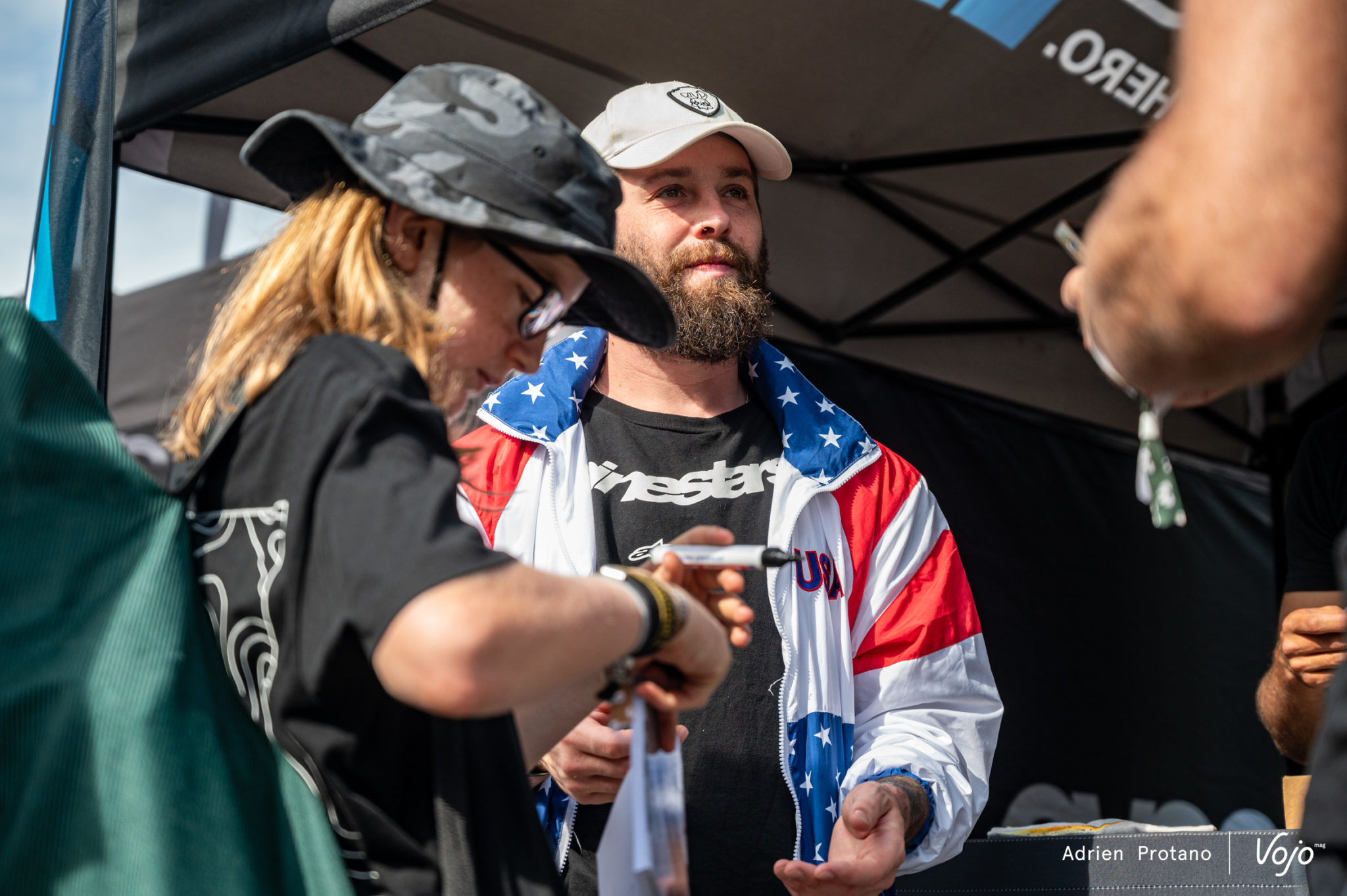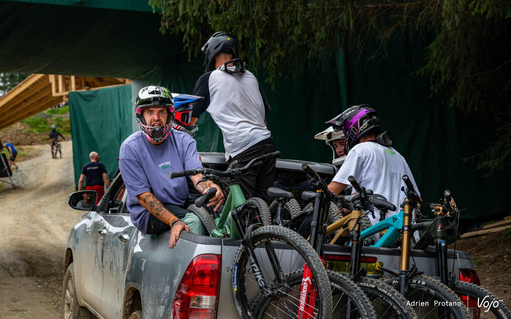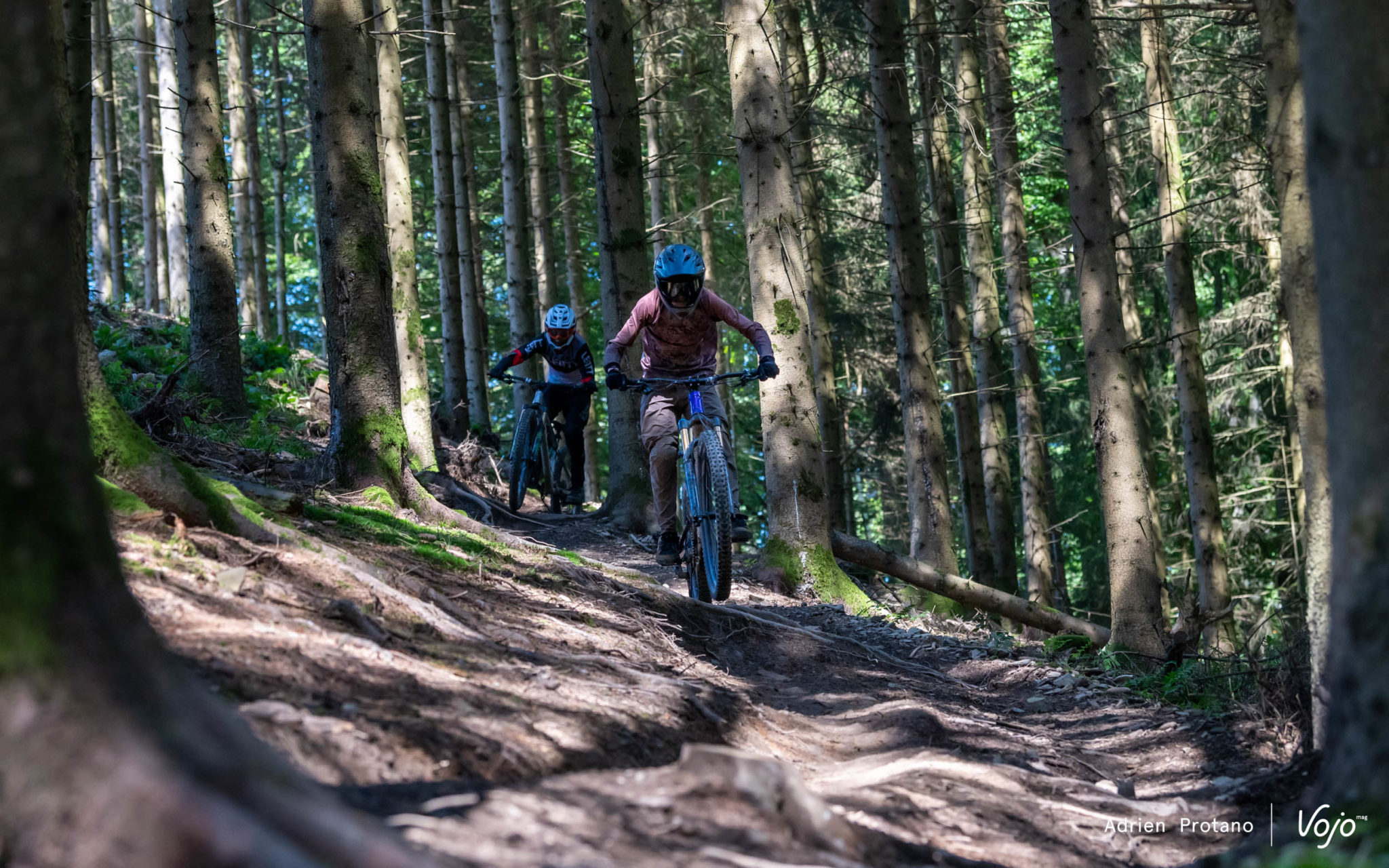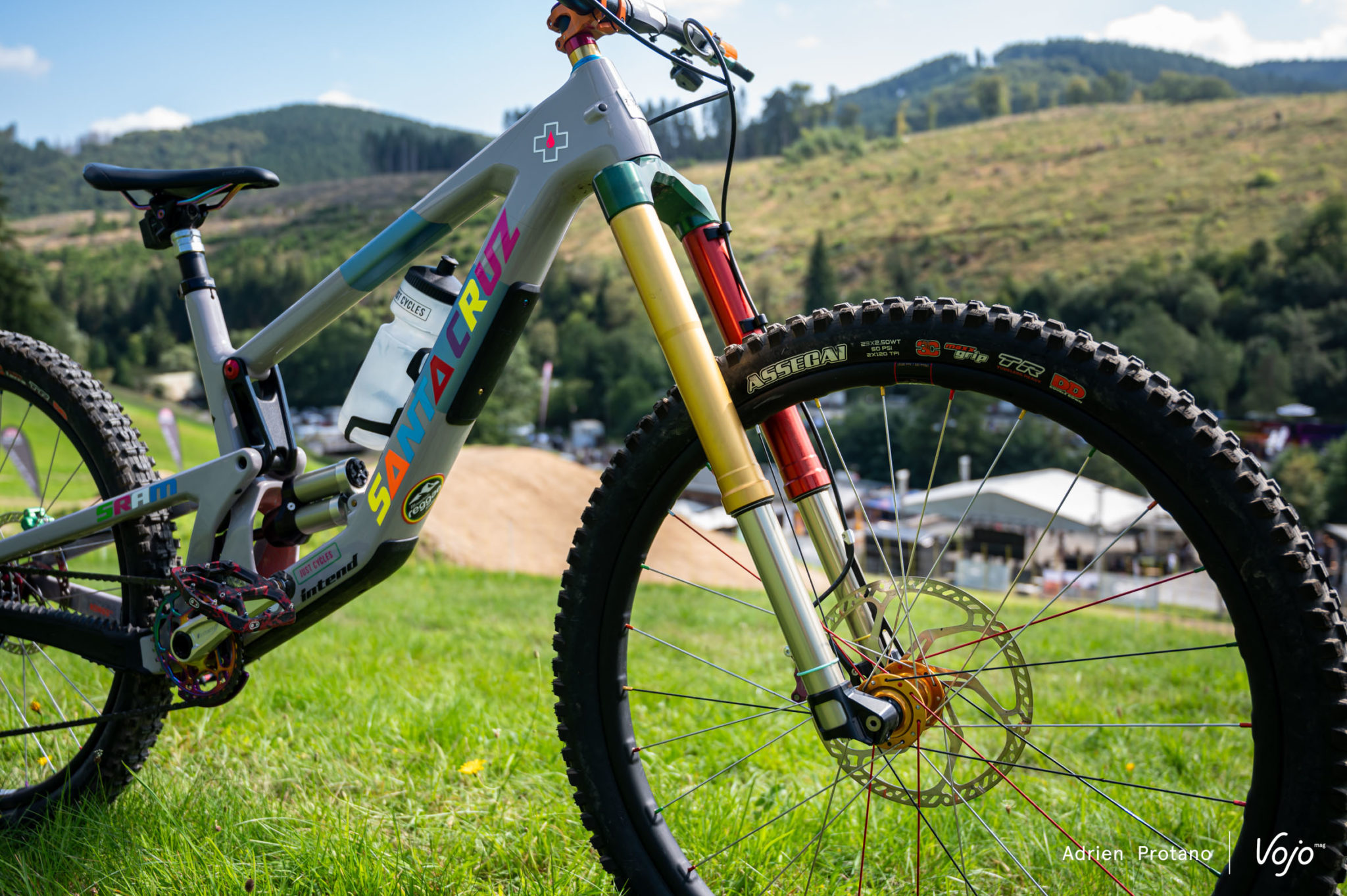 Bienvenu au Green Hill Bikepark pour le festival Beyond the Hill 2023 ! Situé à environ 3 heures de la frontière belge et à 2h de plus de Strasbourg, ce bikepark récemment ouvert à l’ouest de l’Allemagne a décidé de se lancer dans un projet fou : organiser un festival axé sur le VTT gravity tout en accueillant certains des meilleurs pilotes mondiaux de la discipline à l’occasion du Swatch Nines, une compétition de VTT slopestyle/freeride internationale. Anciennement connu sous le nom d’Audi Nines, le contest de VTT freeride/slopestyle revenait après une année de pause sous une nouvelle forme et dans un nouveau lieu : les « Swatch Nines » au sein du Greenhill bikepark. L’inspiration derrière cette compétition demeure toujours la même : « Nous avons fondé les Nines en opposition aux compétitions traditionnelles, comme un terrain de jeu où les athlètes peuvent se dépasser de la manière la plus sécurisée et la plus bienveillante possible. Ici, on ne met pas la pression pour faire de l’audience, mais on accompagne les riders dans le dépassement de leurs limites », explique Nico Zacek, fondateur des Swatch Nines. Afin d’exprimer leur talent et repousser les limites de leur discipline, les pilotes invités ont pu compter sur un parcours de qualité, tant visuellement que dans sa conception et sa construction. Mais à qui peut bien appartenir ce casque RedBull ? Difficile à deviner étant donné le nombre important de pilotes faisant partie de l’écurie de la marque présents ce week-end… On vous donne la réponse : celui-ci appartient à Harriet Burbidge-Smith. La pilote australienne était solidement entourée pour cette édition 2023 des Swatch Nines puisque 12 pilotes féminines ont répondu présent au total, dont notamment Casey Brown, Caroline Buchanan, Robin Goomes, Vinny Armstrong… Chez les hommes, la liste était d’autant plus longue, mais pas moins exclusive pour autant avec des pilotes de renom tels que Nicholi Rogatkin, Sam Pilgrim, Kaos Seagrave, Erik Fedko, Szymon Godziek, Tomas Lemoine… et bien d’autres encore. Échauffement terminé pour les pilotes, public en place, le show va pouvoir commencer ! À peine 16 ans et pourtant déjà à la première place du classement Freeride MTB World Tour, Patricia Druwen n’a pas attendu longtemps avant de démontrer au public son habileté sur ce parcours. La pilote allemande s’est imposée comme une pionnière, ouvrant la voie à la prochaine étape pour le VTT féminin avec un 540 et un Backflip Triple Barspin… Première pilote féminine de l’histoire à réaliser ces deux figures, Patricia Druwen repartira avec le prix de la meilleure figure slopestyle chez les femmes. Chez les hommes, les World’s First Tricks (comprenez là une figure réalisée pour la première fois dans le monde) s’enchaînent également ! Les frères Ruso, Elias et Daniel, ont notamment réussi un double backflip Tuck-No-Hander ainsi qu’un double backflip Can-Can. Tout récemment remis d’une blessure, Nicholi Rogatkin a ravi ses nombreux fans en exécutant l’une de ses figures signature dénommée « cash roll ». Avec ses 5 titres de championne du monde de four-cross, ses deux titres en contre-la-montre BMX et son maillot irisé en BMX en 2013, on ne présente plus Caroline Buchanan ! Si la pilote australienne est multiplement sacrée, elle fut également la première pilote féminine à réussir un frontflip en 2021, et un Superman Seat Grab Indian-Air lors de cette édition ! Je n’ai jamais vraiment fait un saut aussi grand qu’ici auparavant ! « Après être passée du BMX au VTT, j’avais très envie de me lancer dans le gros vélo, qui était complètement nouveau pour moi. Je n’ai jamais vraiment fait un saut aussi grand qu’ici auparavant, et réaliser un Superman Seat Grab Indian-Air devant une foule au Nines était incroyable », nous confiait la pilote Trek. Les pilotes prennent un malin plaisir à se motiver les uns les autres afin de se dépasser et le public en prend plein les rétines ! Le spectacle est impressionnant et même la météo est au beau fixe, après avoir été plus capricieuse durant le début de semaine et les premiers jours de reconnaissance du circuit par les athlètes. Robin Goomes lance le premier backflip de sa carrière, tout le monde retient son souffle… et la pilote néo-zélandaise retombe parfaitement sur ses deux roues. Dans la foulée, le pilote espagnol Bienvenido Aguado offre au public un spectaculaire Frontflip Cliffhanger sur le plus gros saut du parcours ! « Ce nouveau spot est incroyable, le parcours est super amusant, c’est un régal ! Voir les frères Ruso faire de gros tricks m’a motivé à faire ce trick et à le réussir devant ce public en feu », nous confiait juste après le pilote YT. Le parcours permettait également de marier les disciplines puisque 5 skateboarders triés sur le volet se sont joints à la fête, donnant lieu à de jolies scènes comme celle-ci entre Tomas Lemoine et Danny Léon ! Après une semaine à tenter de repousser leurs limites (et celles de la discipline par la même occasion), les pilotes se retrouvent finalement pour la soirée de gala et la remise des prix des meilleures figures, tant en freeride qu’en slopestyle, ainsi que pour désigner les pilotes masculin et féminin les plus méritants de la semaine. 10h pile, la foule investit rapidement le salon et ses différents stands dont notamment Santa Cruz, Rocky Mountain, Rose, Niner, Muc-Off, Schwalbe… Si la foule se presse aux alentours du stand de la marque allemande Rose, c’est en raison de l’arrivée d’un tout-nouveau modèle DH/Freeride dévoilé la veille. Baptisé Scrub, il se veut accessible et en aluminium avec une fourchette de prix allant de 3299€ à 4299€. Lukas Knopf roulait ce nouveau modèle sur le parcours des Swatch Nines. « Un monde de différence par rapport à l’ancien modèle (NDLR le Rose Soul Fire), qui com
