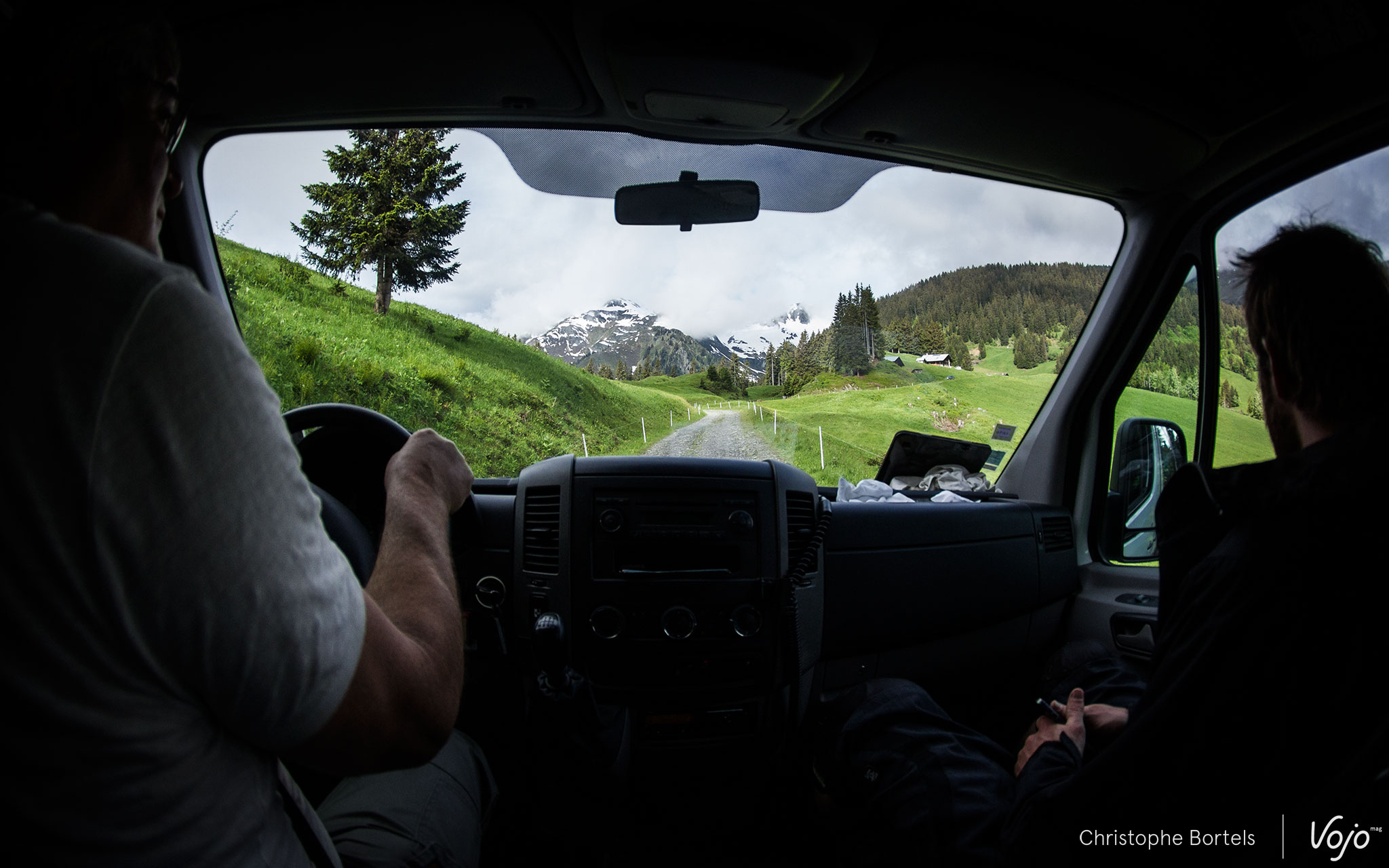 Les navettes du secteur d’Arêches emmenaient les pilotes très haut dans la montagne, et les derniers kilomètres se faisaient même sur des routes non goudronnées.