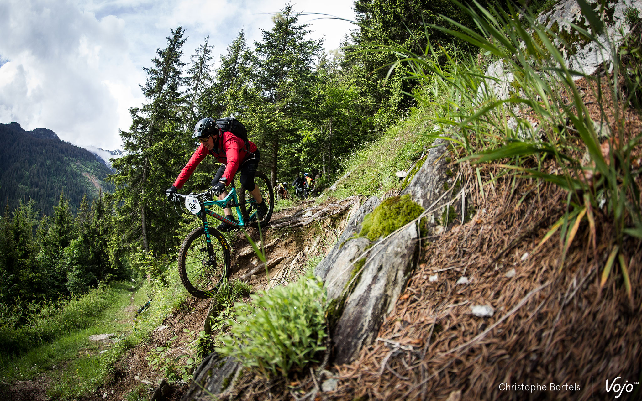 Autre précaution d’usage : si vous n’aimez pas les traces étroites agrémentées de petits passages délicats faits de roches et racines, le tout avec parfois, voire souvent, du vide à côté de vous, l’Enduro du Beaufortain n’est probablement pas fait pour vous…