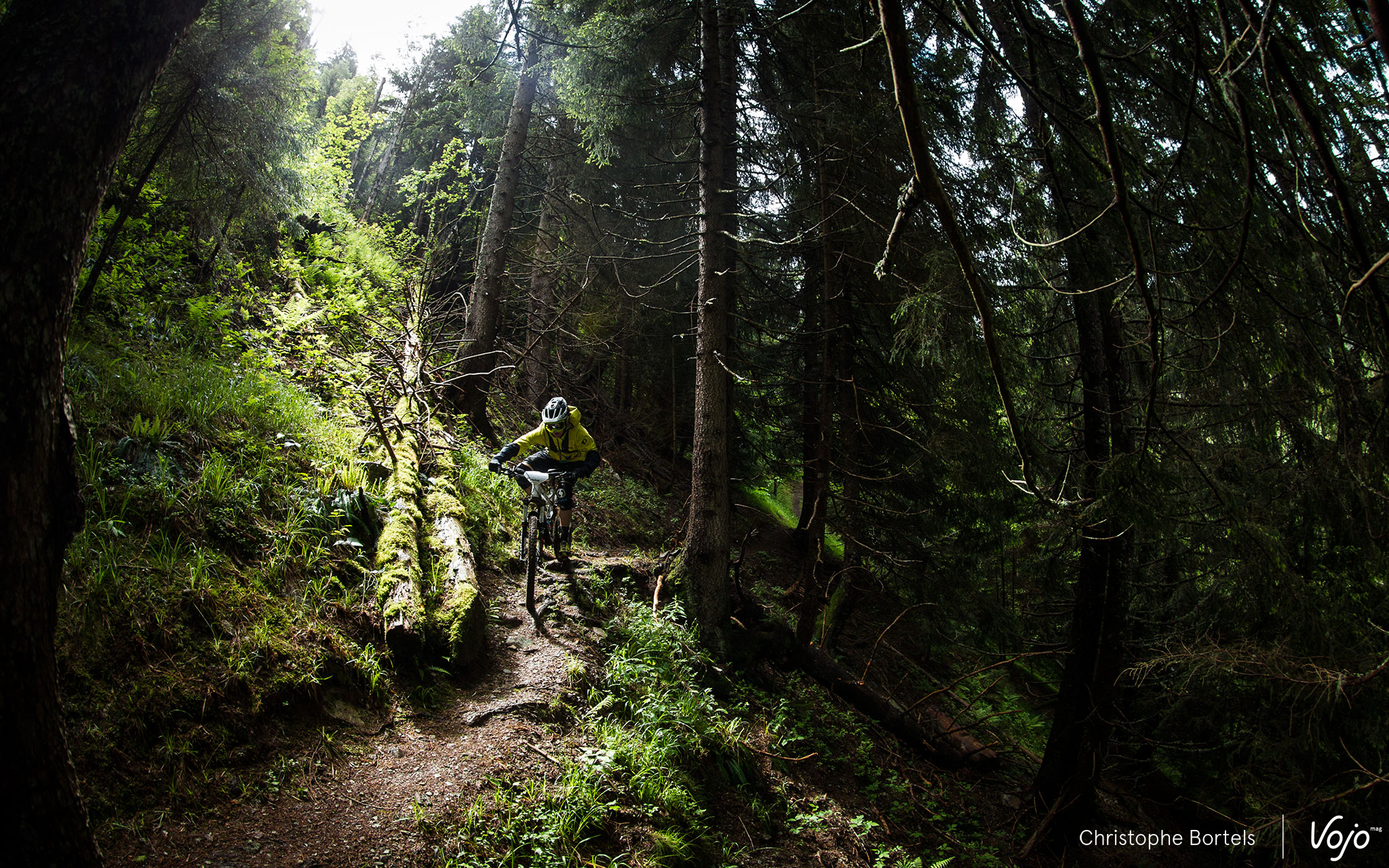 Mais nous avions gardé pour la fin notre trace préférée de l’année dernière. Quiconque a déjà roulé dans le Beaufortain vous parlera de l’Adret’Naline – la véritable pépite du coin – , de son début flowy à souhait et bourré de petites racines ainsi que de petites compressions, avant de plonger davantage dans la pente tout en restant ultra-ludique. Interminable et inoubliable !