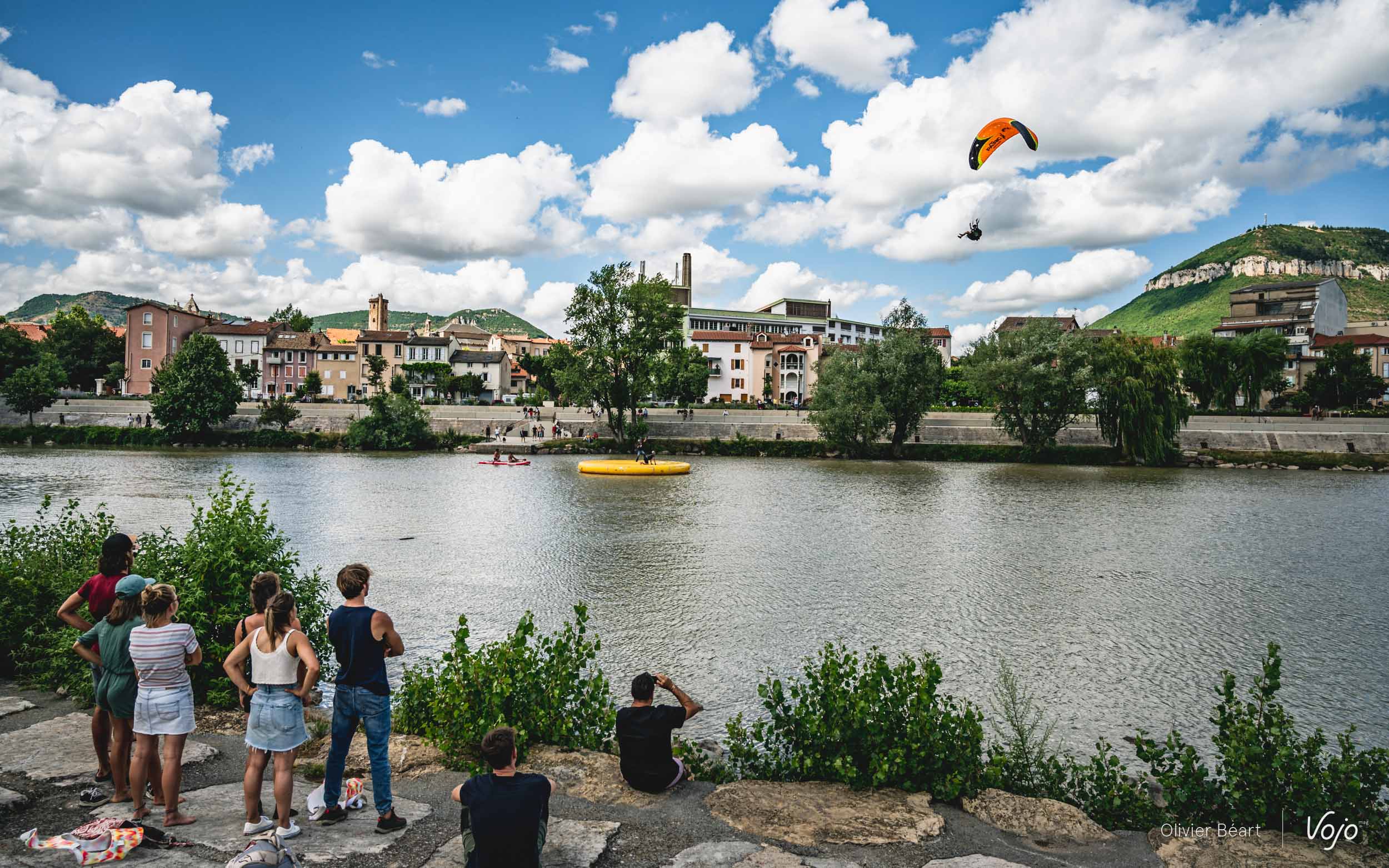 Les sports aériens comme le parapente et le wingsuit sont aussi bien représentés et font le spectacle dans le ciel… comme au sol, avec une zone d’atterrissage aménagée sur le Tarn !