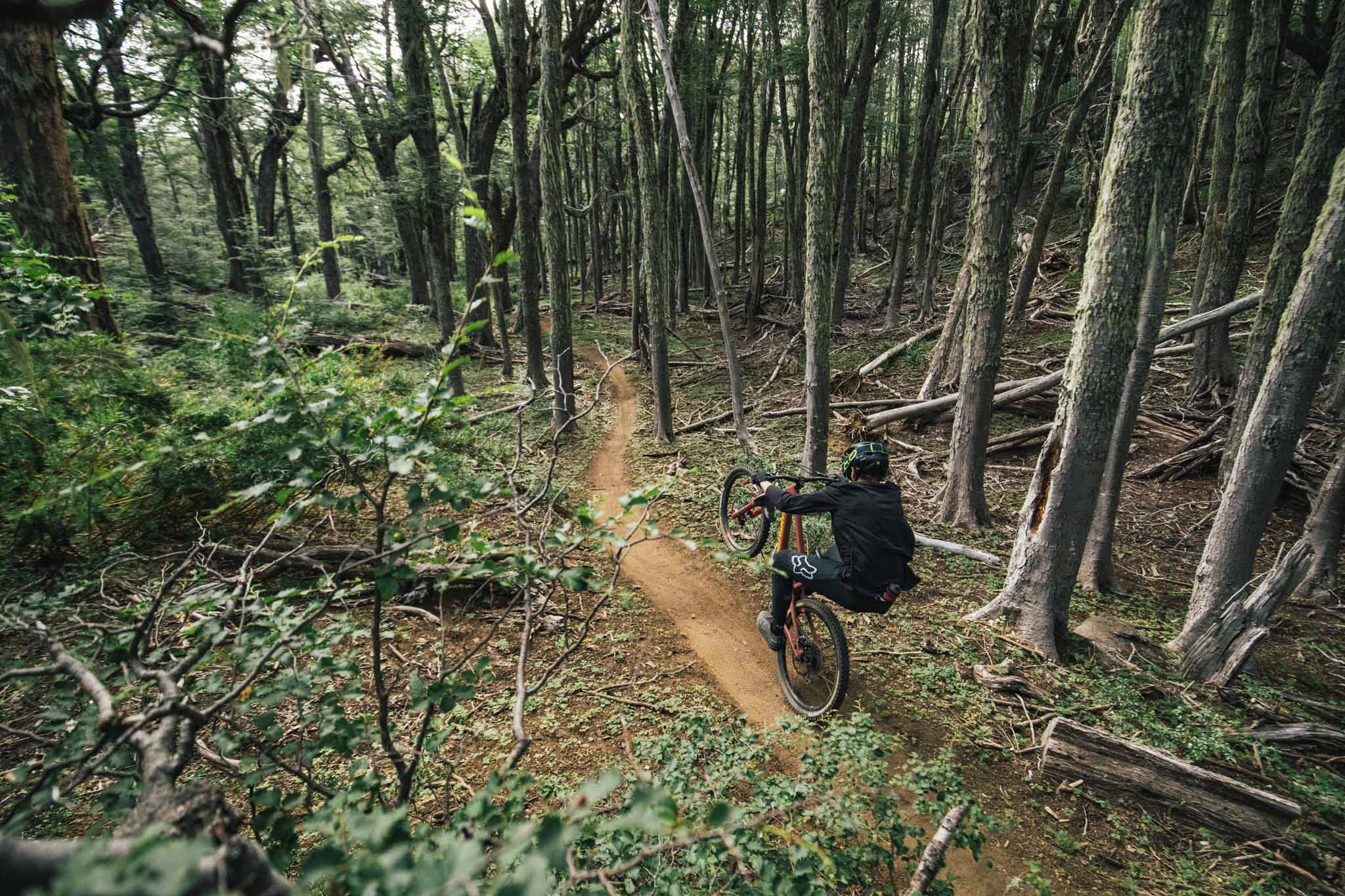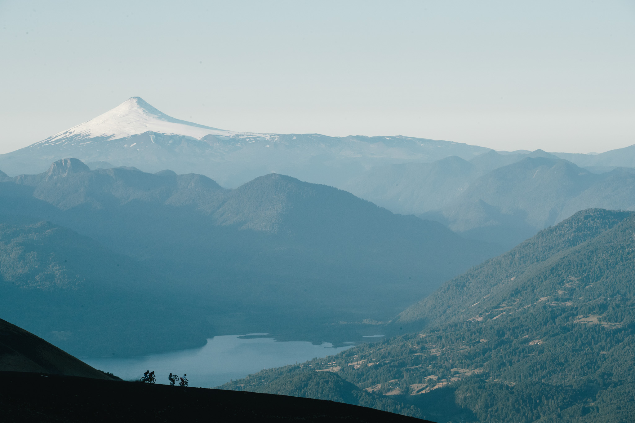 « Huilo Huilo était notre premier stop et j’ai l’impression qu’on a mis une éternité à y arriver. Il nous a tous fallu environ 24h pour arriver jusqu’à Santiago depuis les endroits où nous habitons, puis, après une nuit en ville, on a repris un vol vers le Sud le lendemain matin. La journée a commencé à 5h du matin avec son lot d’énormes sacs et de cartons de vélos, de vols retardés et trop de matériel pour rentrer dans nos véhicules de location. Quelques heures de transit, un ragoût de haricots et on arrivait finalement à destination. Heureusement, le Chili est « chill » et relax et tout semble fonctionner naturellement. Après notre voyage, l’excitation de retrouver nos vélos et de commencer à faire des images était au maximum et Huilo Huilo a certains de ses meilleurs trails directement à la sortie de la ville. Et si les sentiers poussiéreux pour rouler à fond et avec un flow de dingue ce n’était pas assez, il y avait aussi le volcan et ses possibilités infinies pour du « freeride » comme nous le présentaient les locaux. Ces premiers jours passés dans l’ombre du volcan Mocho Choshuenco sont d’excellents souvenirs pour moi. »