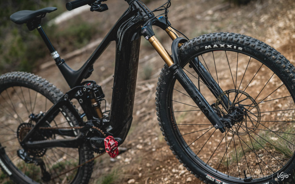 Au programme, tout ce qui se fait de mieux, ou presque : moteur Giant Sync Drive Pro 2 by Yamaha, batterie de 800Wh, montage en Sram XX1 Eagle AXS, suspensions Fox Factory Live Valve et roues Zipp 3Zero Moto.