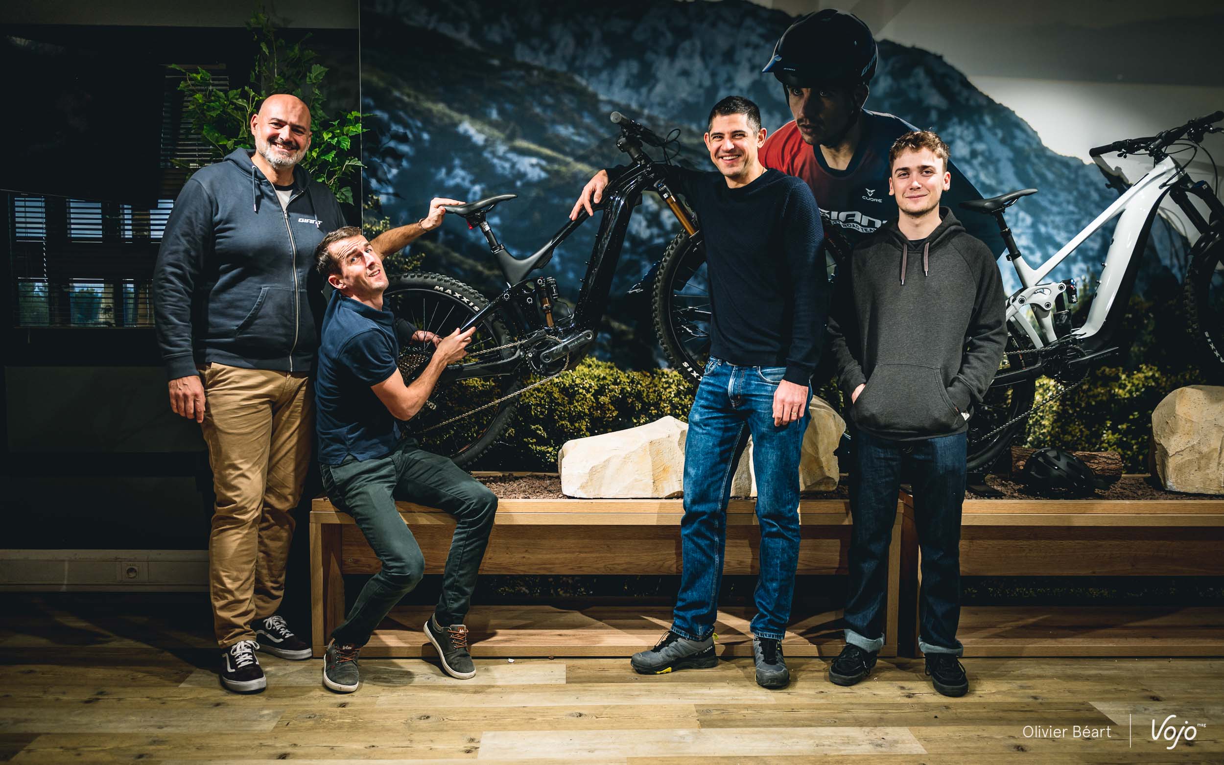 De gauche à droite, on retrouve Lionel Macaluso de chez Giant France, Nico Quéré, notre guide du week-end et ambassadeur de la marque, puis nos deux gagnants, dont les candidatures s’étaient détachées parmi plus de 200 propositions reçues !