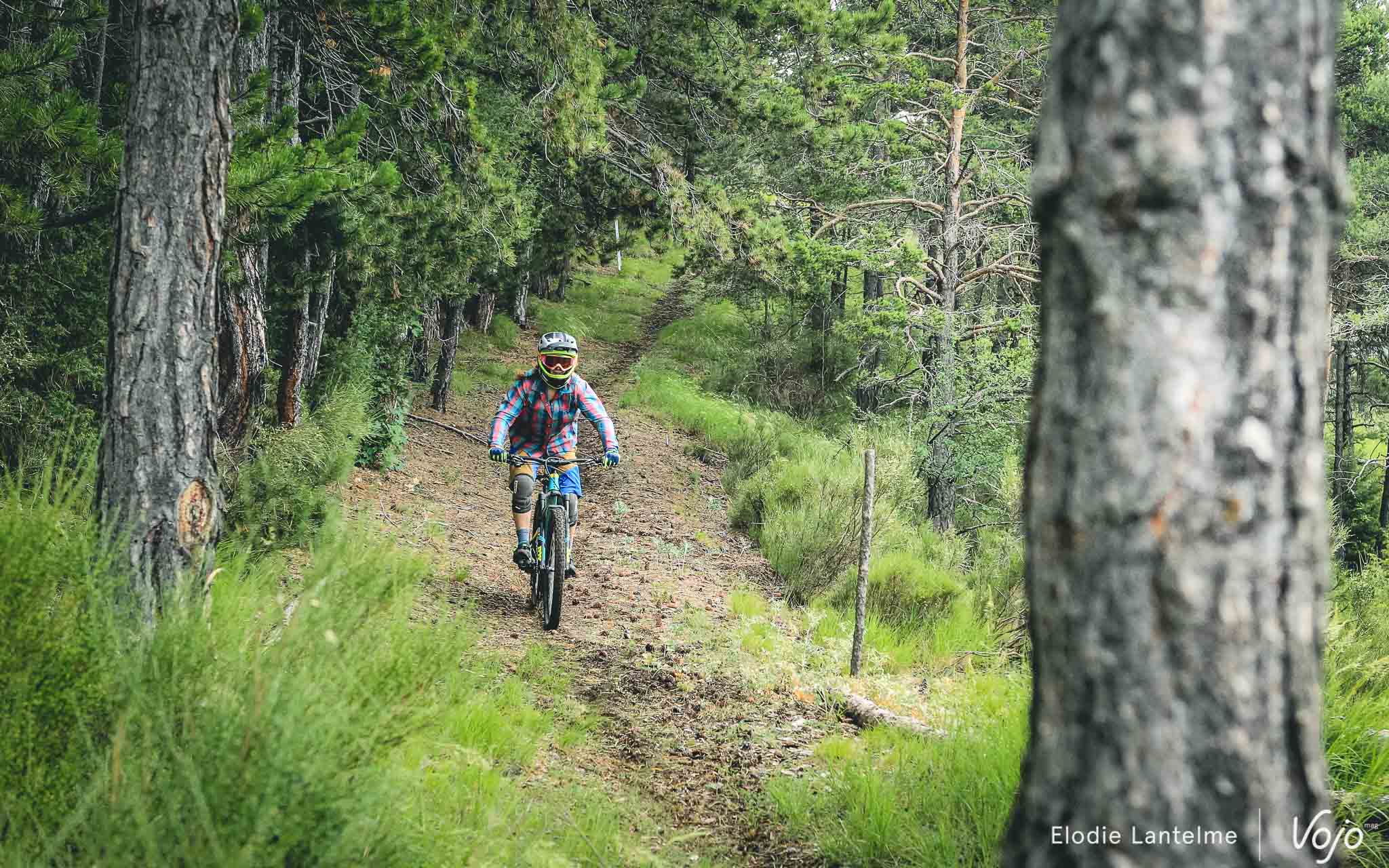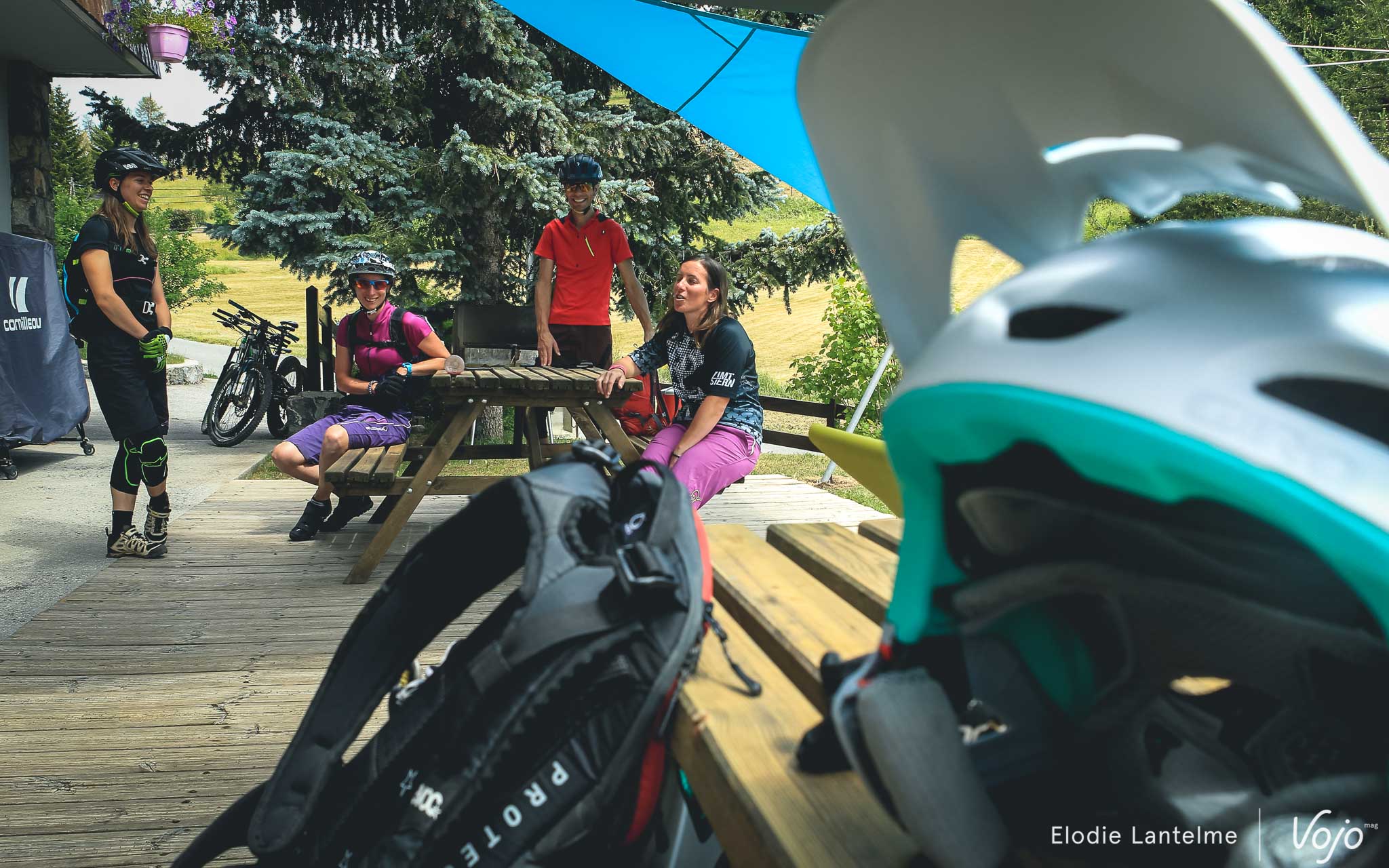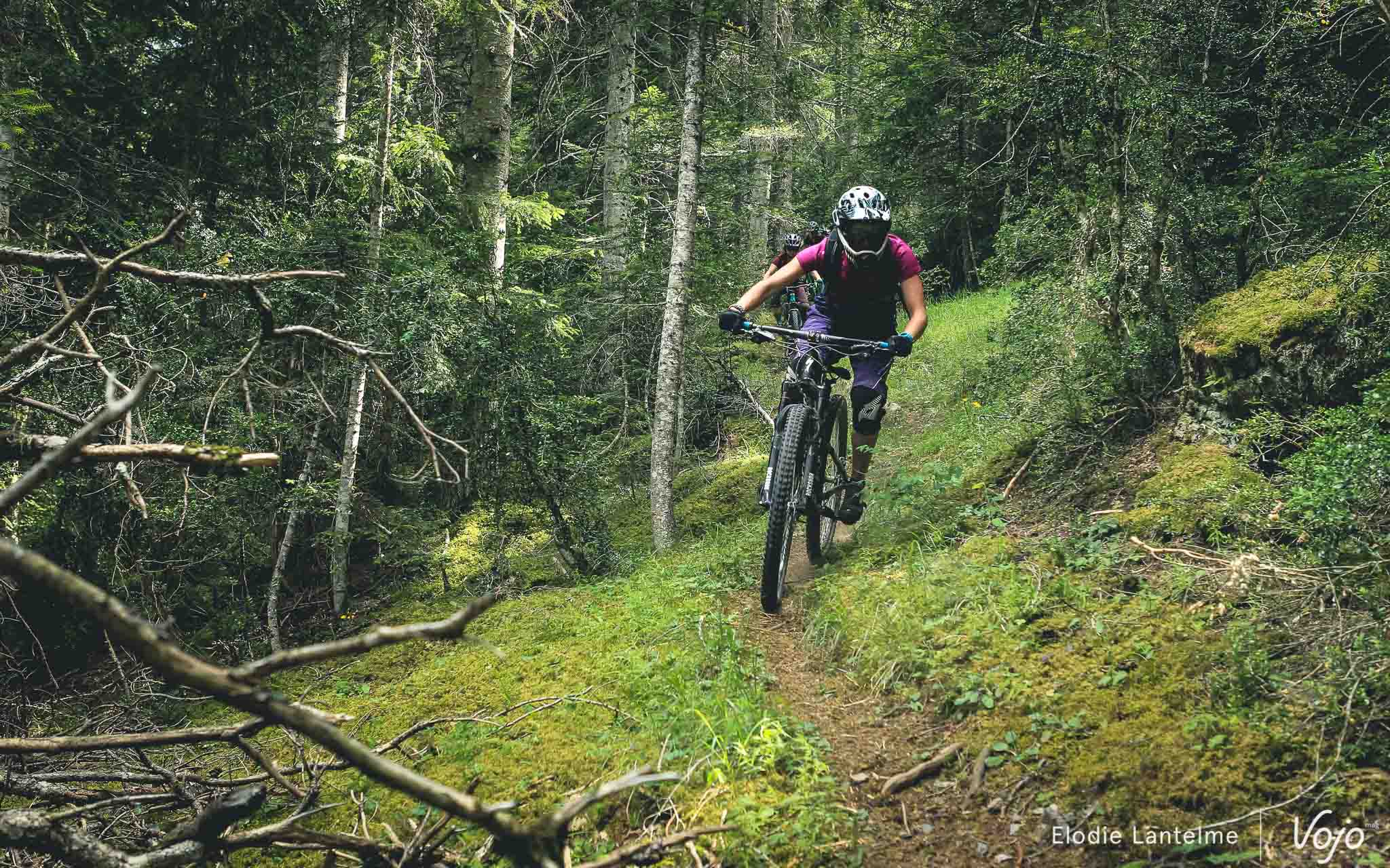 Le 29 juillet se tiendra la deuxième édition de l’Enduro Girls, une course d’enduro réservée aux filles. Partenaires de cet événement unique en Europe, nous sommes allées sur ses traces en compagnie de Solenne et Cécile, nos deux lectrices victorieuses du concours Pré-Enduro Girls. Préparez vos vélos, ladies ! « Girls only », allez hop ! Circulez, Messieurs, Porsche et patate vous attendent !… C’est rude, hein ? caricatural, hein ? Oui, pas faux. Ça tombe bien, l’Enduro Girls, ça n’est pas du tout ça. D’abord parce que le week-end des 29 et 30 juillet, à Valberg (06), il y en aura pour tout le monde : les filles, les garçons, les petits, les grands. Dans le cadre du Lapierre Bike Festival, qui englobe cette année l’Enduro Girls, seront aussi organisées des randonnées électriques Expert et Découverte pour plonger dans l’arrière-pays niçois et son Mercantour, et une épreuve de l’Enduro Kids pour les 7-14 ans. Pas d’ostracisme, donc, les chromosomes Y sont bienvenus ! Ils l’étaient également lors de notre week-end Vojo Pré-Enduro Girls. Vrai, on n’est pas des sauvages, on n’allait quand même pas exclure Guillaume, le compagnon de Cécile, l’une de nos deux gagnantes, qui avait fait avec elle le déplacement de Grenoble à Valberg pour l’accompagner ! Et puis, c’était aussi l’occasion de tordre le coup à quelques idées reçues sur les roulages entre filles. Non, les filles ne sont pas toujours en retard ! Solenne et Cécile nous attendaient de pied ferme au gîte Nature & Montagne tenu par Zoë Maunier, créatrice et organisatrice de l’Enduro Girls, et camp de base de ces deux jours. Oui, bon, évidemment, nous, on a croisé une manifestation anti-loup et le 12h32 du GPS s’est transformé en… 14h45 (parce qu’on a fait un arrêt pipi aussi, mais non, les vessies féminines n’ont pas de problème !). Mais vous avouerez que ça relève du cas de force agricole majeure ! Pour ce week-end, le programme était simple : profiter du Mercantour et de ses beautés, encadrées (enfin, encadrÉs) par Zoë : « L’idée avec l’Enduro Girls, c’est de permettre aux filles de se retrouver. Il faut que ça reste accessible. » L’année dernière, plus de 60 participantes avaient pris le départ, qui comptait quantité de top pilotes (Cécile Ravanel, Isabeau Courdurier, les sœurs Gehrig, Pauline Dieffenthaler). Cette année, date déplacée fin juillet oblige, celles-ci sont en tournée nord-américaine pour les épreuves des EWS. Mais, comme en 2016, l’épreuve totalisera un peu plus de 30 km, essentiellement à la pédale (1 seule remontée en télésiège), avec 5 spéciales techniques mais pas effrayantes, bien tracées, à l’instar de ce que nous avions pu rouler lors de la première édition. Pour en avoir le cœur net, nous voulions donc partir sur les traces de cet enduro unique en Europe avec Cécile et Solenne (notre autre gagnante, venue de… Rennes !). Deux têtes bien faites, ingénieur en génie mécanique à Grenoble pour la première (ça me rappelle une blague poussiéreuse de mon grand-père, le coup de « l’ingénieur à Grenoble », mais je vais vous l’économiser…) et chercheuse en génétique canine pour la seconde, au coup de guidon adroit, secondées par Julie et Laurence, histoire de renforcer l’escouade. Alors, alors, alors ? Alors, ça s’annonce bien, cette deuxième édition ! À peine arrivés, nous voilà déjà en selle (ou presque, il y a toujours un petit temps de latence – « mais où sont mes chaussures ? », « tu n’aurais pas une pompe à amortisseur ? », la routine, quoi… mais non, les filles ne se font pas toujours attendre ! C’est juste qu’elles s’attachent aux détails…). Au fait, non, les filles ne sont pas shopping addict! Mais il faut bien avouer que la tenue Lapierre gagnée par Solenne pour notre concours a fait son petit effet. Reste la question de l’assortir avec son Transition… En quelques coups de pédale et après une bonne montée qui tape le souffle, Zoë nous emmène sur un petit spot secret juste derrière le gîte. Ce tour de mise en jambes ouvre les portes du « Petit Whistler », le paradis du single. Mousse, aiguilles de pin régalent la compagnie, parce que non, les filles ne râlent pas tout le temps (en fait, on ne râle jamais entre filles, je crois hélas, Messieurs, il faut bien le dire, qu’on réserve ça aux sorties mixtes…). Après ce petit apéritif de sentiers, place au vrai ! Bière locale et bonne humeur, vous trouverez ça aussi sur l’Enduro Girls fin juillet. Le lendemain, allez savoir pourquoi, le temps s’est un peu gâté pour la journée navette. Mais non, les filles ne craignent pas la boue (on n’est pas du café soluble…). Un petit coupe-vent (seyant, quand même, on n’est pas des sacs non plus…), et roulez biquettes ! Pour l’occasion, Basile, l’aîné de Zoë, 9 ans, nous accompagne. Deux présences masculines, c’est dire si on est open pour faire « bons genres » ! Première rotation et première découverte d’une jolie trace sur Bergians-Le Cians, terre d’une future spéciale de l’Enduro Girls. Du sentier, du sentier… voilà ce qu’a privilégié Zoë, et c’est une bonne idée ! Pour la deuxième, nous choisissons un gros morceau, qui ne sera pas au programme de l’épreuve : la spéciale des crêtes de l’Enduro World Series 2016, une leçon d’humilité. Petite pause déjeuner mais énoooorme pan bagnat concocté par la boulangerie de Guillaumes!