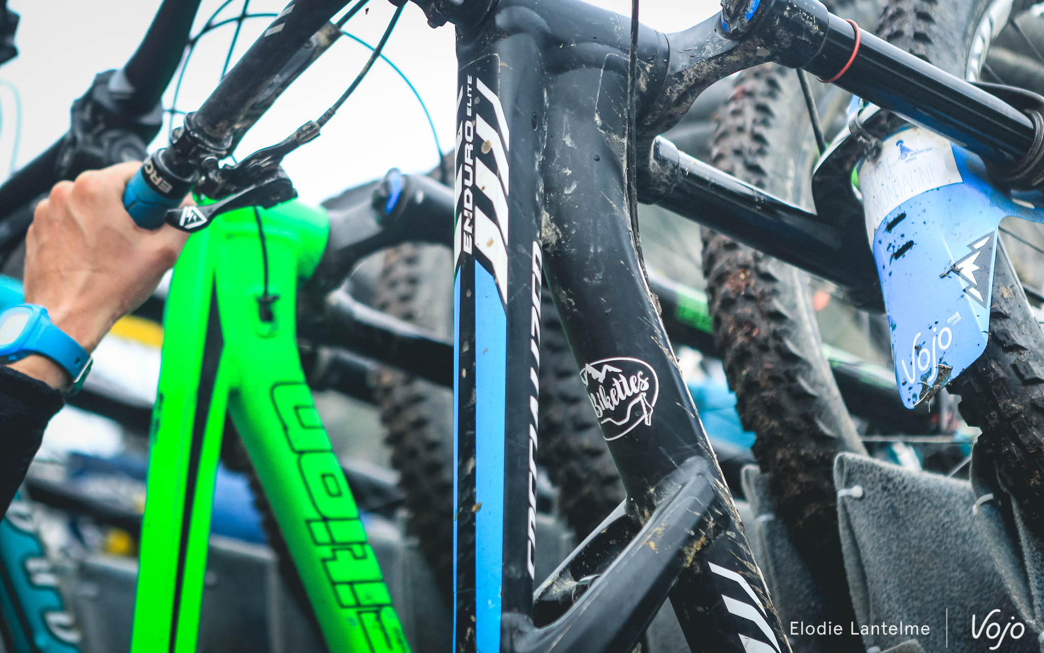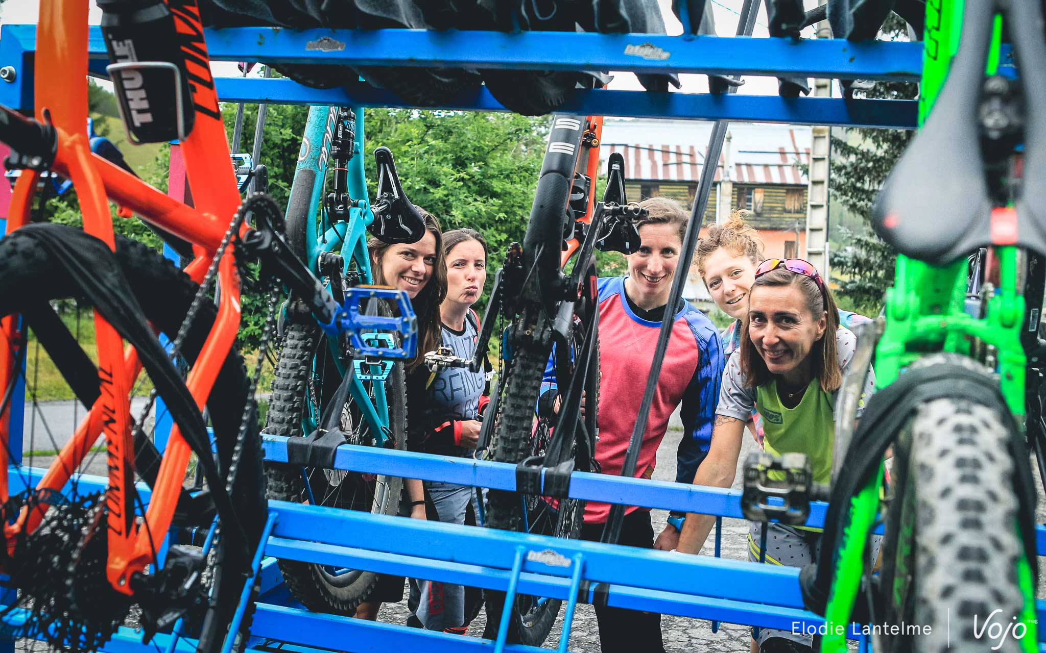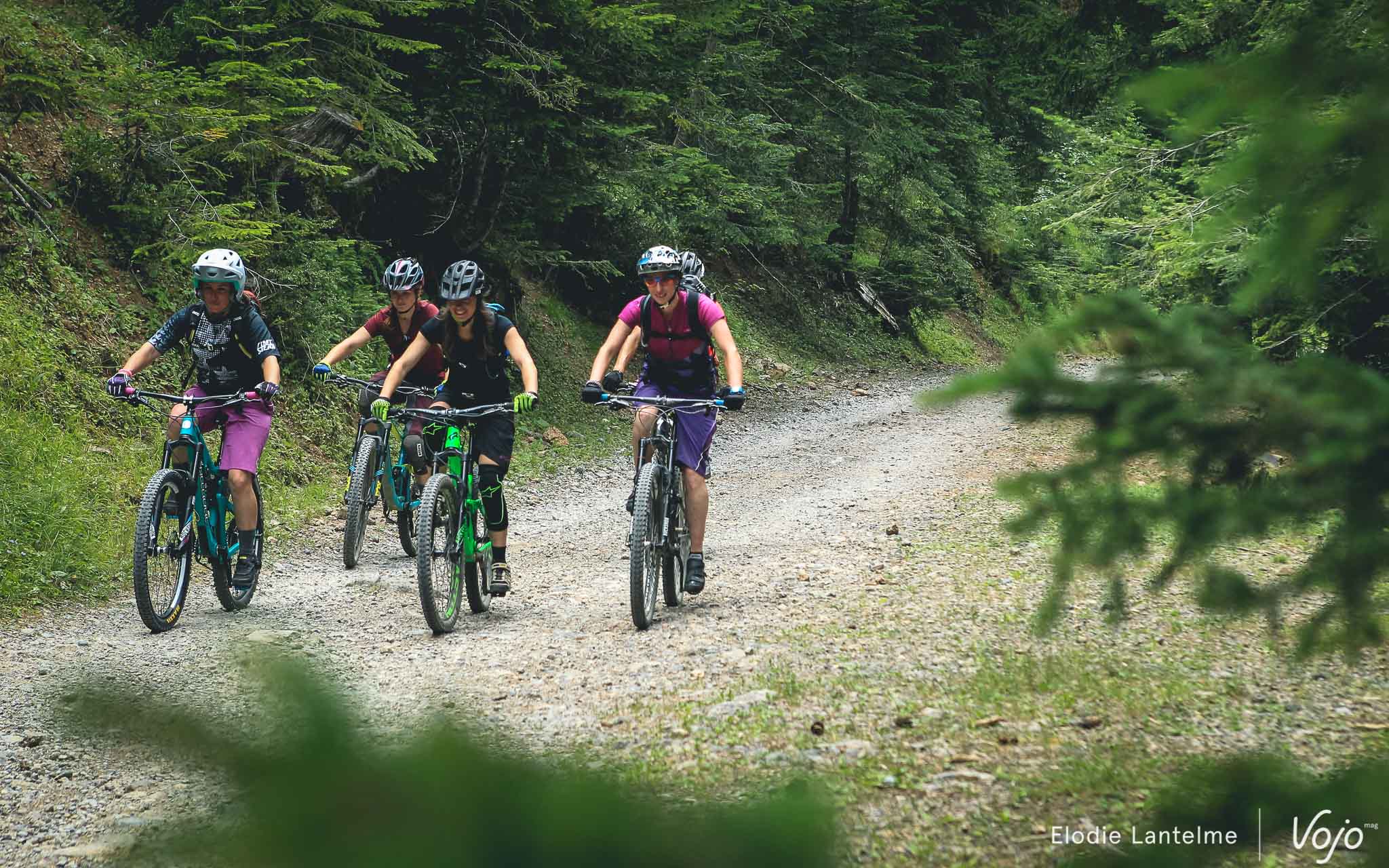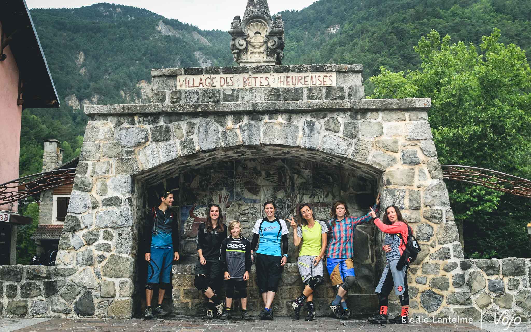 Le 29 juillet se tiendra la deuxième édition de l’Enduro Girls, une course d’enduro réservée aux filles. Partenaires de cet événement unique en Europe, nous sommes allées sur ses traces en compagnie de Solenne et Cécile, nos deux lectrices victorieuses du concours Pré-Enduro Girls. Préparez vos vélos, ladies ! « Girls only », allez hop ! Circulez, Messieurs, Porsche et patate vous attendent !… C’est rude, hein ? caricatural, hein ? Oui, pas faux. Ça tombe bien, l’Enduro Girls, ça n’est pas du tout ça. D’abord parce que le week-end des 29 et 30 juillet, à Valberg (06), il y en aura pour tout le monde : les filles, les garçons, les petits, les grands. Dans le cadre du Lapierre Bike Festival, qui englobe cette année l’Enduro Girls, seront aussi organisées des randonnées électriques Expert et Découverte pour plonger dans l’arrière-pays niçois et son Mercantour, et une épreuve de l’Enduro Kids pour les 7-14 ans. Pas d’ostracisme, donc, les chromosomes Y sont bienvenus ! Ils l’étaient également lors de notre week-end Vojo Pré-Enduro Girls. Vrai, on n’est pas des sauvages, on n’allait quand même pas exclure Guillaume, le compagnon de Cécile, l’une de nos deux gagnantes, qui avait fait avec elle le déplacement de Grenoble à Valberg pour l’accompagner ! Et puis, c’était aussi l’occasion de tordre le coup à quelques idées reçues sur les roulages entre filles. Non, les filles ne sont pas toujours en retard ! Solenne et Cécile nous attendaient de pied ferme au gîte Nature & Montagne tenu par Zoë Maunier, créatrice et organisatrice de l’Enduro Girls, et camp de base de ces deux jours. Oui, bon, évidemment, nous, on a croisé une manifestation anti-loup et le 12h32 du GPS s’est transformé en… 14h45 (parce qu’on a fait un arrêt pipi aussi, mais non, les vessies féminines n’ont pas de problème !). Mais vous avouerez que ça relève du cas de force agricole majeure ! Pour ce week-end, le programme était simple : profiter du Mercantour et de ses beautés, encadrées (enfin, encadrÉs) par Zoë : « L’idée avec l’Enduro Girls, c’est de permettre aux filles de se retrouver. Il faut que ça reste accessible. » L’année dernière, plus de 60 participantes avaient pris le départ, qui comptait quantité de top pilotes (Cécile Ravanel, Isabeau Courdurier, les sœurs Gehrig, Pauline Dieffenthaler). Cette année, date déplacée fin juillet oblige, celles-ci sont en tournée nord-américaine pour les épreuves des EWS. Mais, comme en 2016, l’épreuve totalisera un peu plus de 30 km, essentiellement à la pédale (1 seule remontée en télésiège), avec 5 spéciales techniques mais pas effrayantes, bien tracées, à l’instar de ce que nous avions pu rouler lors de la première édition. Pour en avoir le cœur net, nous voulions donc partir sur les traces de cet enduro unique en Europe avec Cécile et Solenne (notre autre gagnante, venue de… Rennes !). Deux têtes bien faites, ingénieur en génie mécanique à Grenoble pour la première (ça me rappelle une blague poussiéreuse de mon grand-père, le coup de « l’ingénieur à Grenoble », mais je vais vous l’économiser…) et chercheuse en génétique canine pour la seconde, au coup de guidon adroit, secondées par Julie et Laurence, histoire de renforcer l’escouade. Alors, alors, alors ? Alors, ça s’annonce bien, cette deuxième édition ! À peine arrivés, nous voilà déjà en selle (ou presque, il y a toujours un petit temps de latence – « mais où sont mes chaussures ? », « tu n’aurais pas une pompe à amortisseur ? », la routine, quoi… mais non, les filles ne se font pas toujours attendre ! C’est juste qu’elles s’attachent aux détails…). Au fait, non, les filles ne sont pas shopping addict! Mais il faut bien avouer que la tenue Lapierre gagnée par Solenne pour notre concours a fait son petit effet. Reste la question de l’assortir avec son Transition… En quelques coups de pédale et après une bonne montée qui tape le souffle, Zoë nous emmène sur un petit spot secret juste derrière le gîte. Ce tour de mise en jambes ouvre les portes du « Petit Whistler », le paradis du single. Mousse, aiguilles de pin régalent la compagnie, parce que non, les filles ne râlent pas tout le temps (en fait, on ne râle jamais entre filles, je crois hélas, Messieurs, il faut bien le dire, qu’on réserve ça aux sorties mixtes…). Après ce petit apéritif de sentiers, place au vrai ! Bière locale et bonne humeur, vous trouverez ça aussi sur l’Enduro Girls fin juillet. Le lendemain, allez savoir pourquoi, le temps s’est un peu gâté pour la journée navette. Mais non, les filles ne craignent pas la boue (on n’est pas du café soluble…). Un petit coupe-vent (seyant, quand même, on n’est pas des sacs non plus…), et roulez biquettes ! Pour l’occasion, Basile, l’aîné de Zoë, 9 ans, nous accompagne. Deux présences masculines, c’est dire si on est open pour faire « bons genres » ! Première rotation et première découverte d’une jolie trace sur Bergians-Le Cians, terre d’une future spéciale de l’Enduro Girls. Du sentier, du sentier… voilà ce qu’a privilégié Zoë, et c’est une bonne idée ! Pour la deuxième, nous choisissons un gros morceau, qui ne sera pas au programme de l’épreuve : la spéciale des crêtes de l’Enduro World Series 2016, une leçon d’humilité. Petite pause déjeuner mais énoooorme pan bagnat concocté par la boulangerie de Guillaumes!