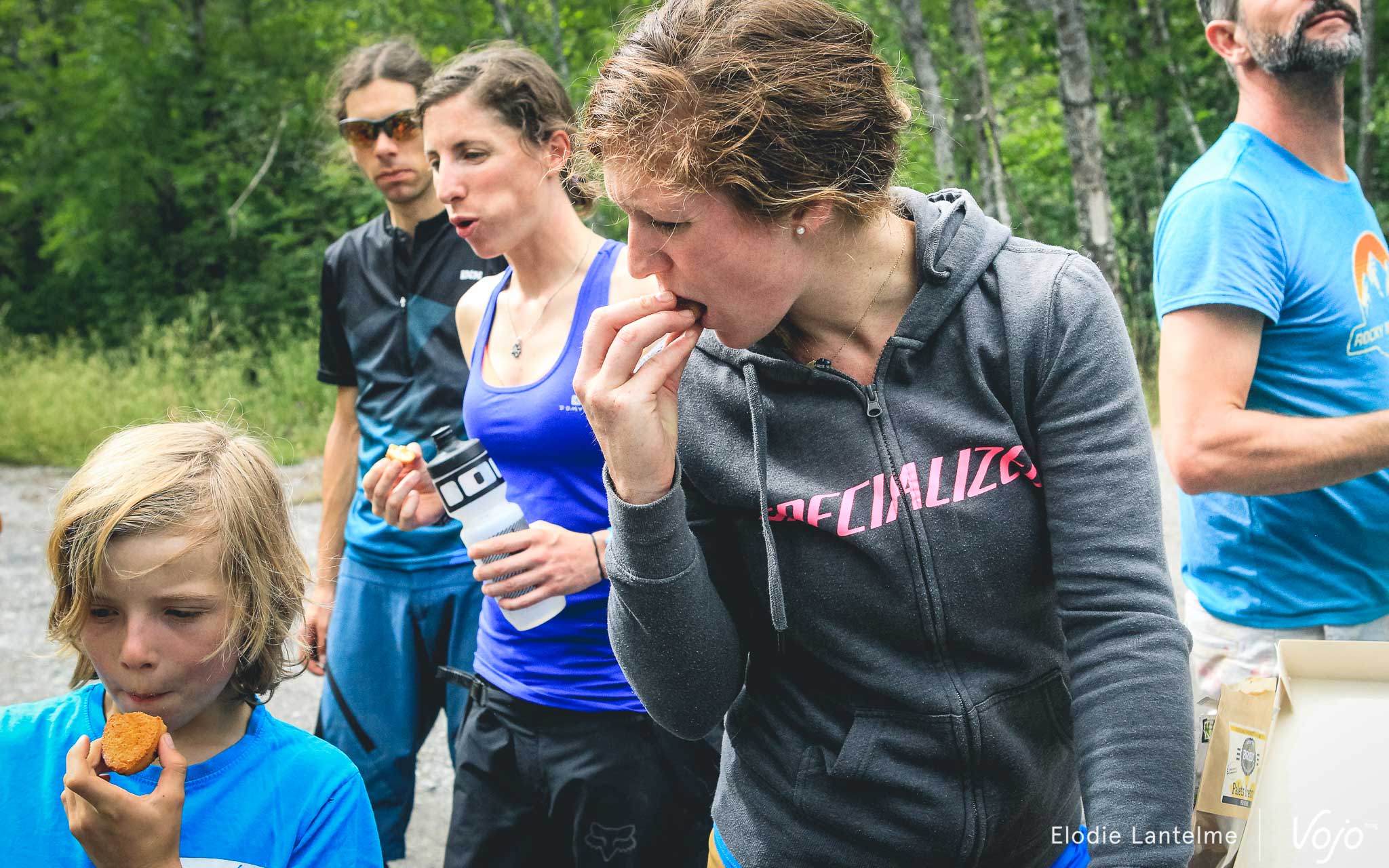 Après plus de 2000 mètres de dénivelé négatif, forcément, la journée finit par un goûter… Non, mais c’est pour Basile… Chez les enfants, le goûter, c’est sacré… comprenez… Et il a fallu l’accompagner, pouvait pas le laisser seul, car oui, les filles ont le sens du sacrifice. D’ailleurs, elles sacrifient volontiers à l’idée qu’aucune idée reçue sur les roulages entre filles n’a de validité. Et s’il est vrai que « où il y a de la gêne, il n’y a pas de plaisir », disons que, à vélo, X ou Y, quel que soit le gène, il y a du plaisir.