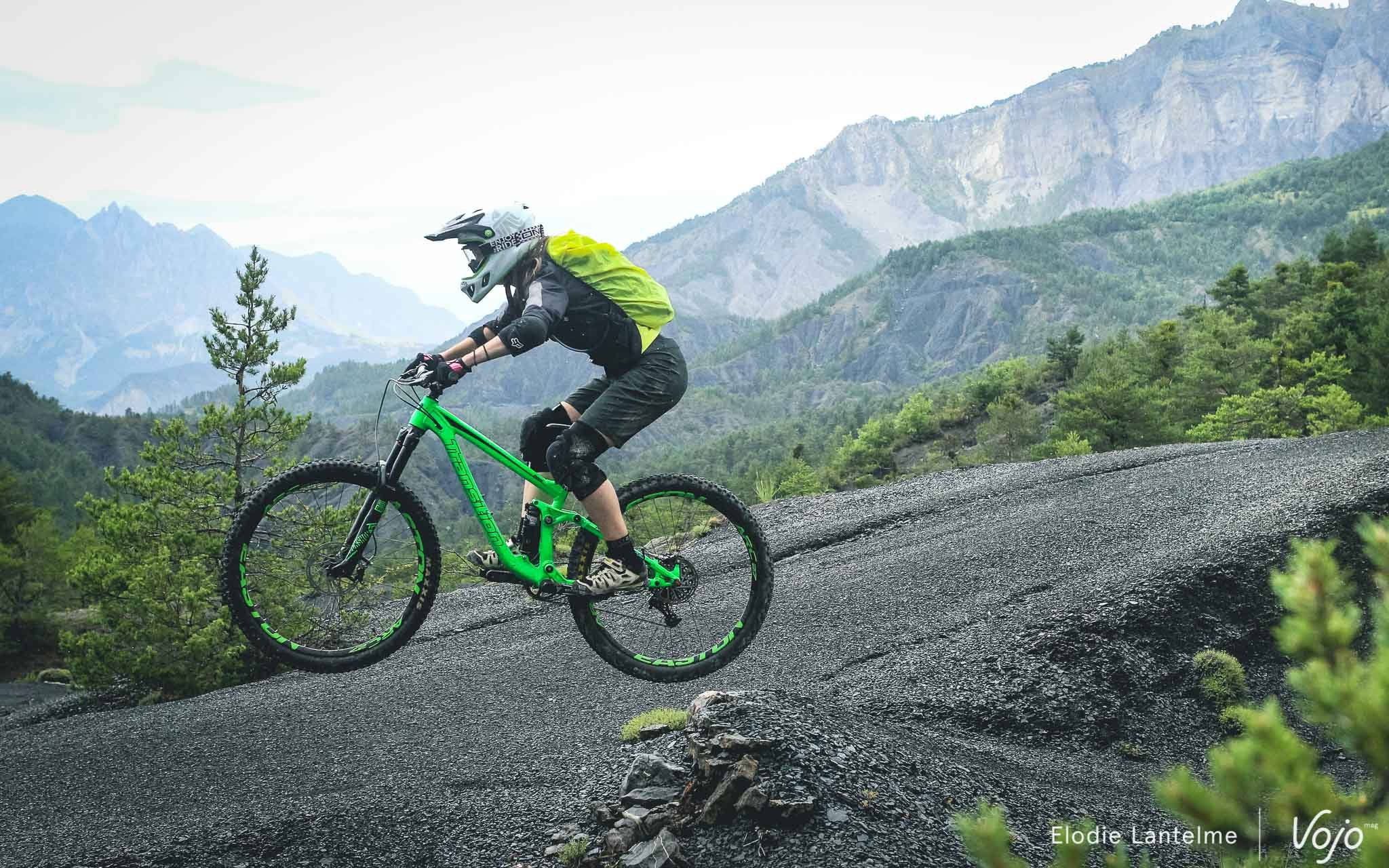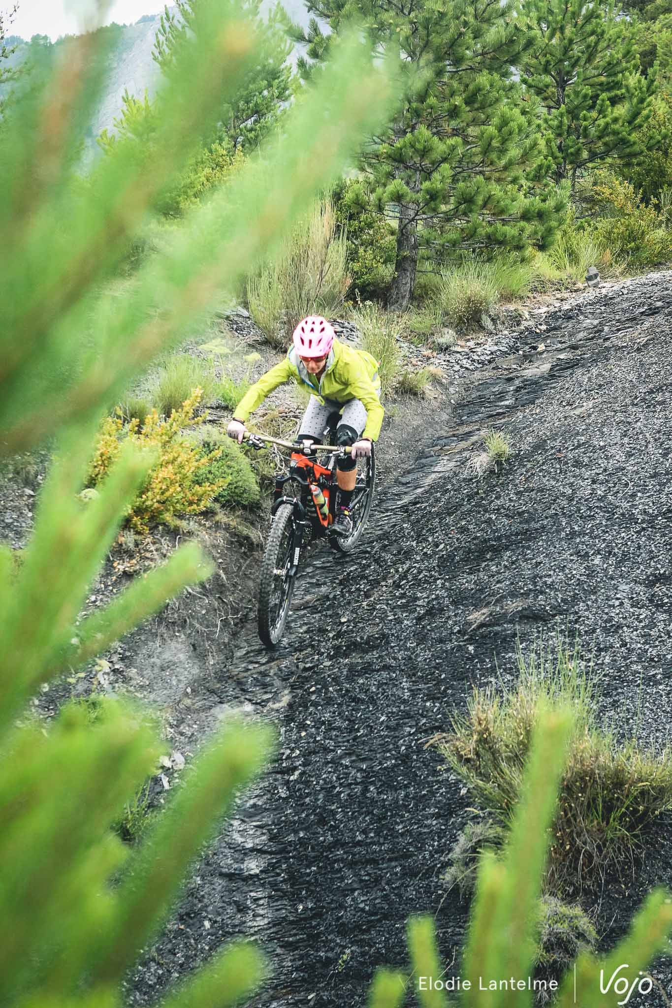 Le 29 juillet se tiendra la deuxième édition de l’Enduro Girls, une course d’enduro réservée aux filles. Partenaires de cet événement unique en Europe, nous sommes allées sur ses traces en compagnie de Solenne et Cécile, nos deux lectrices victorieuses du concours Pré-Enduro Girls. Préparez vos vélos, ladies ! « Girls only », allez hop ! Circulez, Messieurs, Porsche et patate vous attendent !… C’est rude, hein ? caricatural, hein ? Oui, pas faux. Ça tombe bien, l’Enduro Girls, ça n’est pas du tout ça. D’abord parce que le week-end des 29 et 30 juillet, à Valberg (06), il y en aura pour tout le monde : les filles, les garçons, les petits, les grands. Dans le cadre du Lapierre Bike Festival, qui englobe cette année l’Enduro Girls, seront aussi organisées des randonnées électriques Expert et Découverte pour plonger dans l’arrière-pays niçois et son Mercantour, et une épreuve de l’Enduro Kids pour les 7-14 ans. Pas d’ostracisme, donc, les chromosomes Y sont bienvenus ! Ils l’étaient également lors de notre week-end Vojo Pré-Enduro Girls. Vrai, on n’est pas des sauvages, on n’allait quand même pas exclure Guillaume, le compagnon de Cécile, l’une de nos deux gagnantes, qui avait fait avec elle le déplacement de Grenoble à Valberg pour l’accompagner ! Et puis, c’était aussi l’occasion de tordre le coup à quelques idées reçues sur les roulages entre filles. Non, les filles ne sont pas toujours en retard ! Solenne et Cécile nous attendaient de pied ferme au gîte Nature & Montagne tenu par Zoë Maunier, créatrice et organisatrice de l’Enduro Girls, et camp de base de ces deux jours. Oui, bon, évidemment, nous, on a croisé une manifestation anti-loup et le 12h32 du GPS s’est transformé en… 14h45 (parce qu’on a fait un arrêt pipi aussi, mais non, les vessies féminines n’ont pas de problème !). Mais vous avouerez que ça relève du cas de force agricole majeure ! Pour ce week-end, le programme était simple : profiter du Mercantour et de ses beautés, encadrées (enfin, encadrÉs) par Zoë : « L’idée avec l’Enduro Girls, c’est de permettre aux filles de se retrouver. Il faut que ça reste accessible. » L’année dernière, plus de 60 participantes avaient pris le départ, qui comptait quantité de top pilotes (Cécile Ravanel, Isabeau Courdurier, les sœurs Gehrig, Pauline Dieffenthaler). Cette année, date déplacée fin juillet oblige, celles-ci sont en tournée nord-américaine pour les épreuves des EWS. Mais, comme en 2016, l’épreuve totalisera un peu plus de 30 km, essentiellement à la pédale (1 seule remontée en télésiège), avec 5 spéciales techniques mais pas effrayantes, bien tracées, à l’instar de ce que nous avions pu rouler lors de la première édition. Pour en avoir le cœur net, nous voulions donc partir sur les traces de cet enduro unique en Europe avec Cécile et Solenne (notre autre gagnante, venue de… Rennes !). Deux têtes bien faites, ingénieur en génie mécanique à Grenoble pour la première (ça me rappelle une blague poussiéreuse de mon grand-père, le coup de « l’ingénieur à Grenoble », mais je vais vous l’économiser…) et chercheuse en génétique canine pour la seconde, au coup de guidon adroit, secondées par Julie et Laurence, histoire de renforcer l’escouade. Alors, alors, alors ? Alors, ça s’annonce bien, cette deuxième édition ! À peine arrivés, nous voilà déjà en selle (ou presque, il y a toujours un petit temps de latence – « mais où sont mes chaussures ? », « tu n’aurais pas une pompe à amortisseur ? », la routine, quoi… mais non, les filles ne se font pas toujours attendre ! C’est juste qu’elles s’attachent aux détails…). Au fait, non, les filles ne sont pas shopping addict! Mais il faut bien avouer que la tenue Lapierre gagnée par Solenne pour notre concours a fait son petit effet. Reste la question de l’assortir avec son Transition… En quelques coups de pédale et après une bonne montée qui tape le souffle, Zoë nous emmène sur un petit spot secret juste derrière le gîte. Ce tour de mise en jambes ouvre les portes du « Petit Whistler », le paradis du single. Mousse, aiguilles de pin régalent la compagnie, parce que non, les filles ne râlent pas tout le temps (en fait, on ne râle jamais entre filles, je crois hélas, Messieurs, il faut bien le dire, qu’on réserve ça aux sorties mixtes…). Après ce petit apéritif de sentiers, place au vrai ! Bière locale et bonne humeur, vous trouverez ça aussi sur l’Enduro Girls fin juillet. Le lendemain, allez savoir pourquoi, le temps s’est un peu gâté pour la journée navette. Mais non, les filles ne craignent pas la boue (on n’est pas du café soluble…). Un petit coupe-vent (seyant, quand même, on n’est pas des sacs non plus…), et roulez biquettes ! Pour l’occasion, Basile, l’aîné de Zoë, 9 ans, nous accompagne. Deux présences masculines, c’est dire si on est open pour faire « bons genres » ! Première rotation et première découverte d’une jolie trace sur Bergians-Le Cians, terre d’une future spéciale de l’Enduro Girls. Du sentier, du sentier… voilà ce qu’a privilégié Zoë, et c’est une bonne idée ! Pour la deuxième, nous choisissons un gros morceau, qui ne sera pas au programme de l’épreuve : la spéciale des crêtes de l’Enduro World Series 2016, une leçon d’humilité. Petite pause déjeuner mais énoooorme pan bagnat concocté par la boulangerie de Guillaumes!