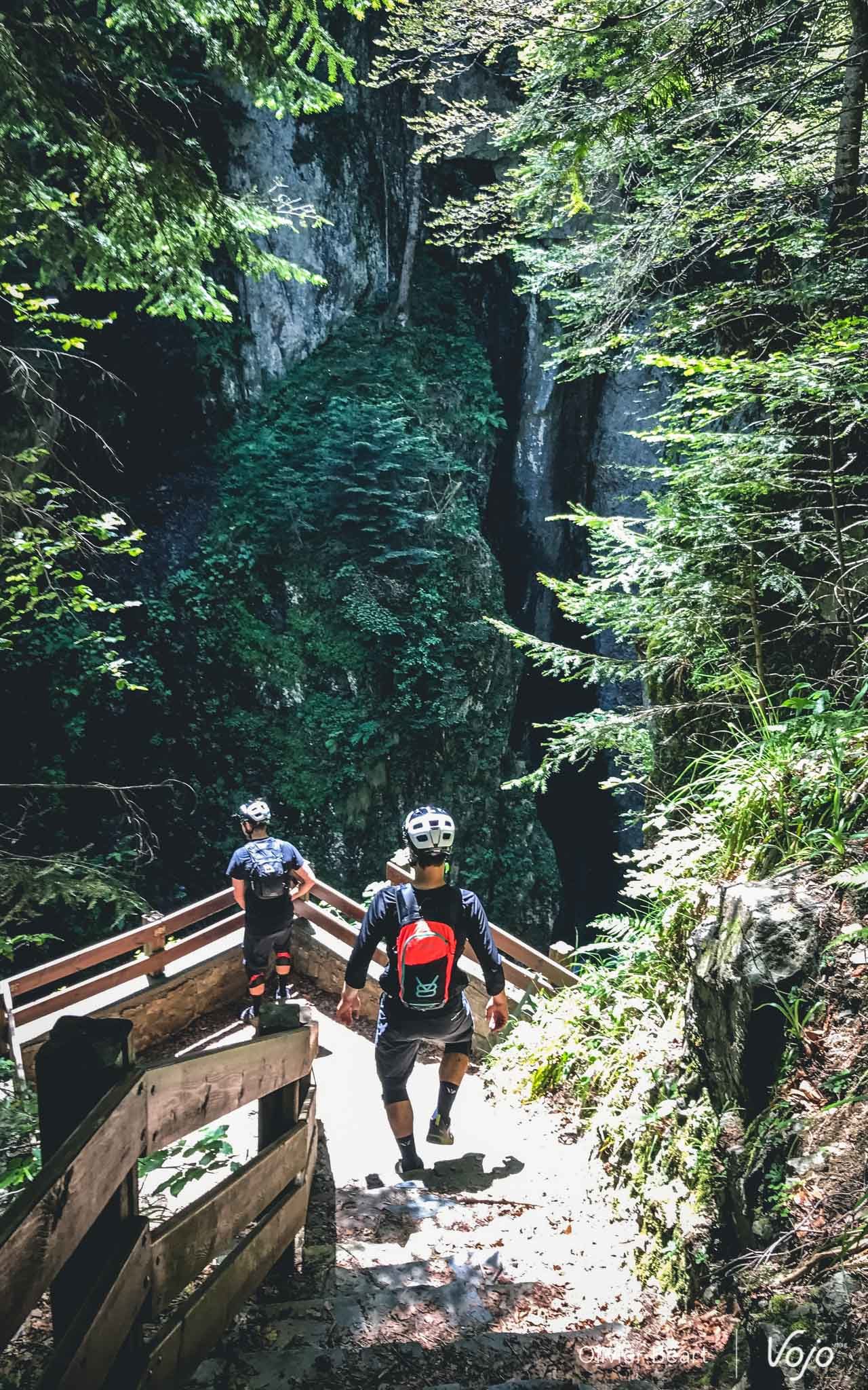 Je ne suis pas en train de vous dire que le 26 ou le 27,5 c’est nul et que vous êtes has been avec vos petites roues, mais si vous avez en tête des clichés sur le 29 » du genre « ça ne tourne pas », « c’est pour les terrains roulants », « c’est pas fun », « c’est juste pour aller vite » : c’est le moment de les jeter aux oubliettes ! Mis en confiance par mes péripéties de la veille, je m’engage sur cette trace périlleuse sans trop d’appréhension. Comme si je savais que je n’y allais pas seul mais avec un ami bienveillant qui est là pour me rattraper en cas de bévue (qui pourrait d’ailleurs avoir de grosses conséquences vu le vide à côté).