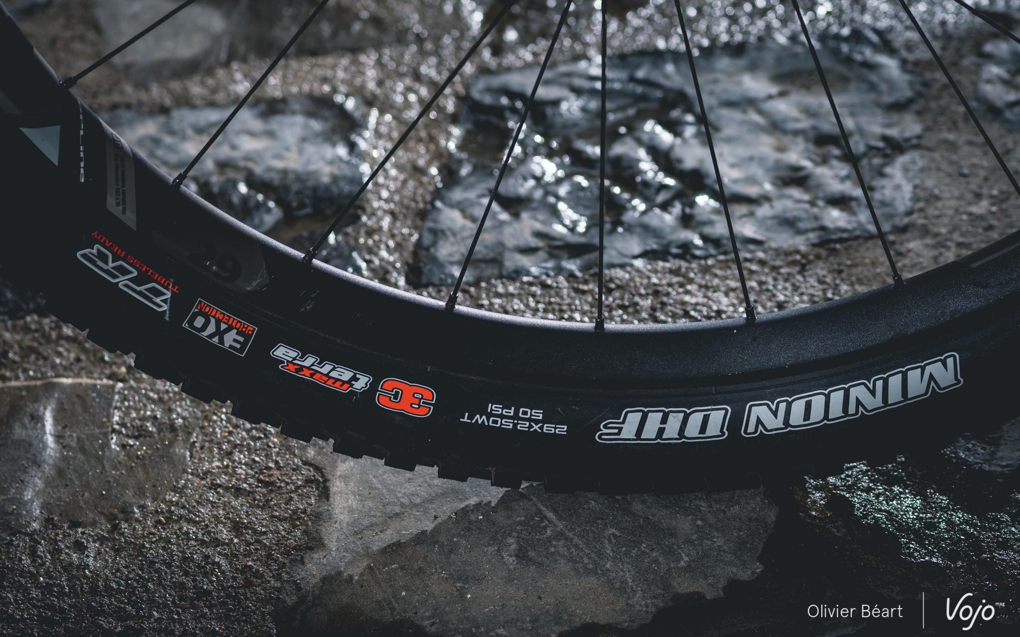 Tiens, c’est vrai, nous n’avons pas encore crevé ! On dirait que les pneus 29 sont aujourd’hui bien au point de ce côté, surtout chez Maxxis, et la carcasse Wide Trail fait des merveilles en évitant à la fois au profil d’être trop carré et aux flancs d’être trop exposés en cas de montage sur une jante de 30mm ou plus.