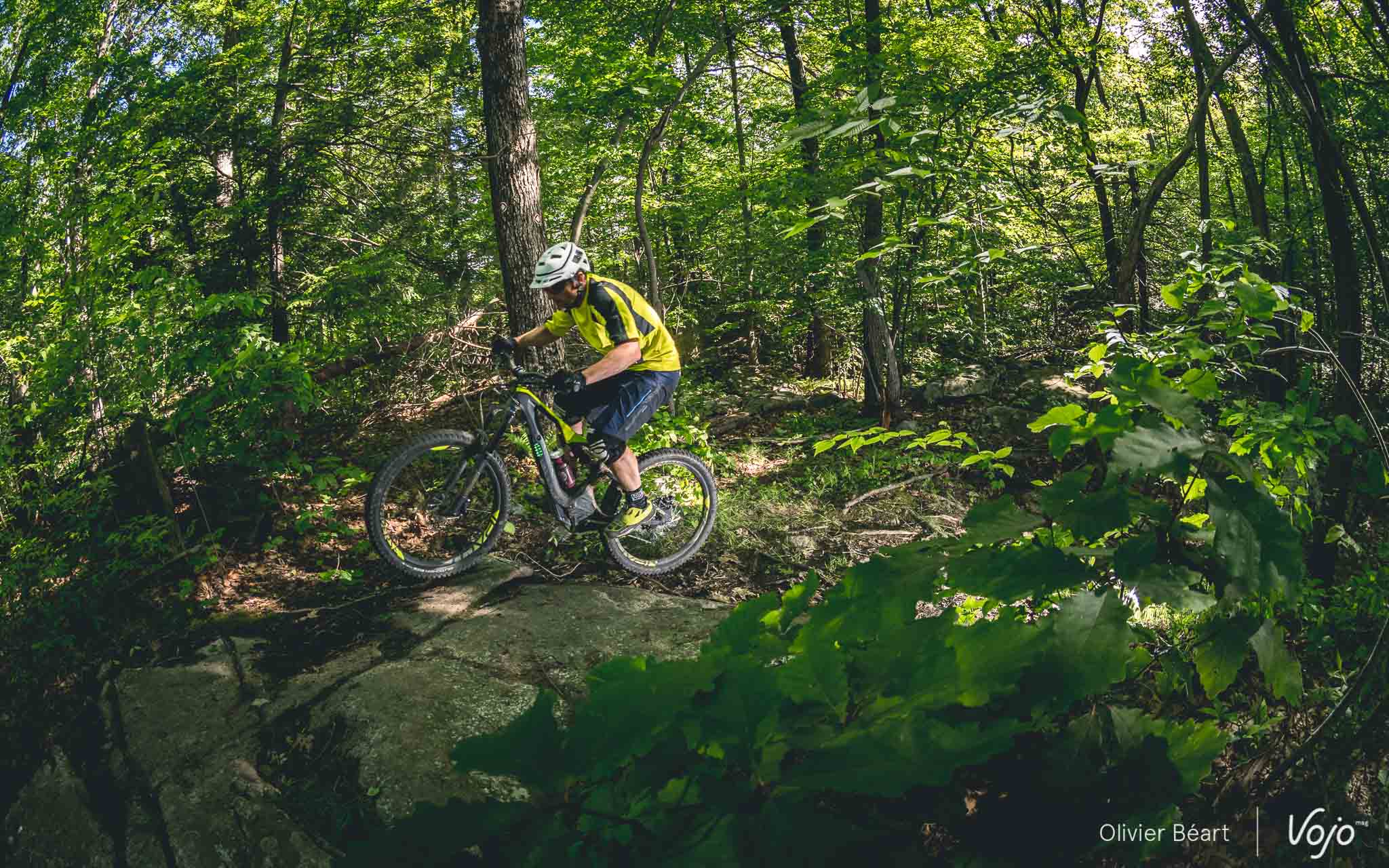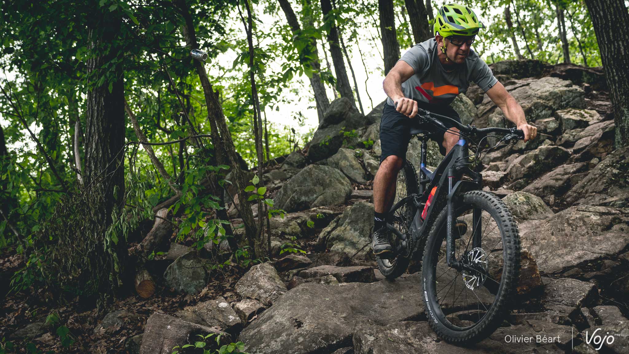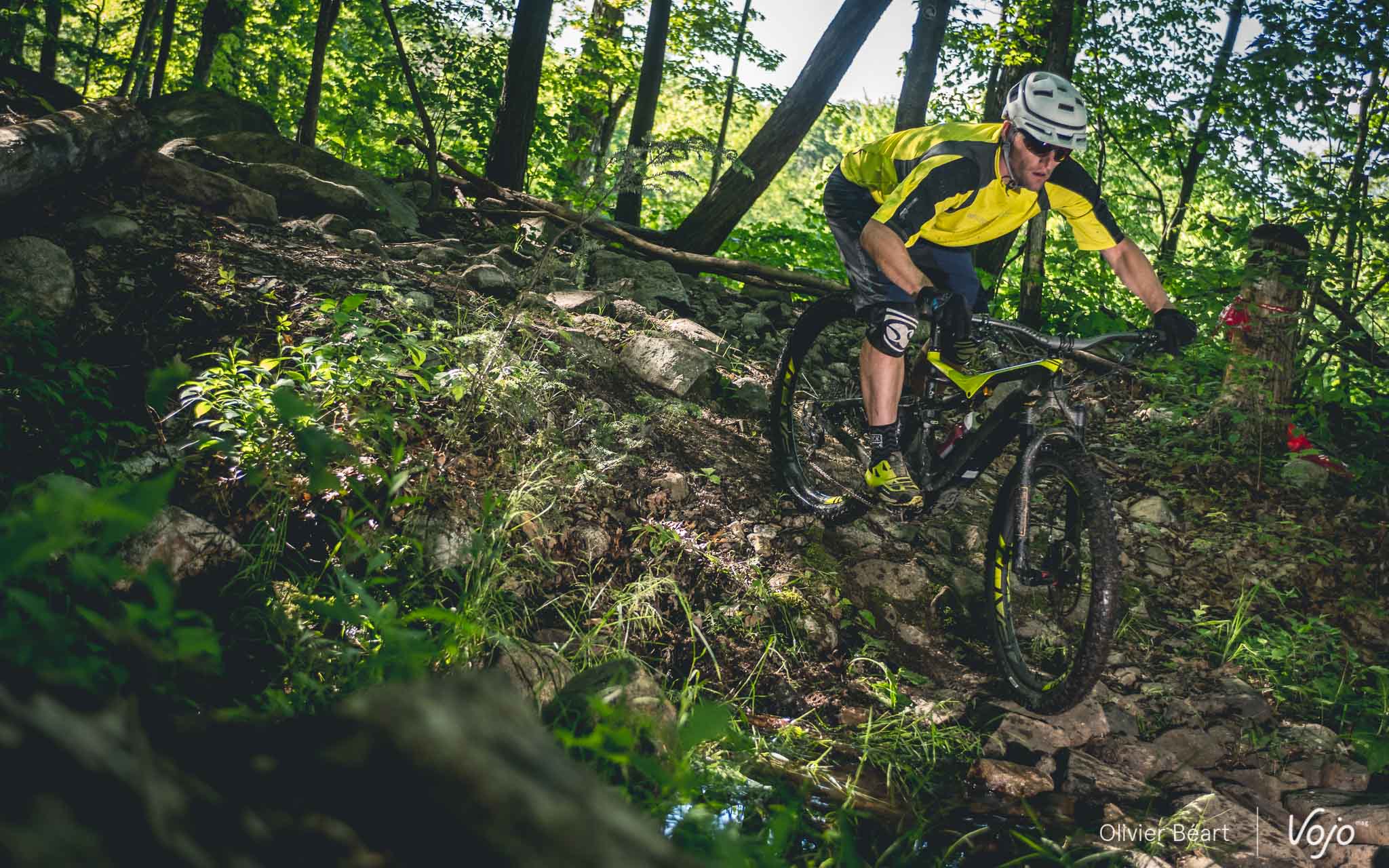 Pour cette première sortie, la découverte se fait en groupe. On se met en route et on grimpe jusqu’au sommet des pistes de la petite station de Mountain View, bien entendu sans prendre les remontées mécaniques. Je retrouve avec plaisir la discrétion et la souplesse caractéristiques du Levo. C’est toujours plus subtil qu’un Bosch, même avec la mise à jour e-MTB qui améliore pourtant les choses. Et le Shimano n’arrive pas non plus au même raffinement selon moi, d’autant que la coupure moteur du Levo est plus progressive encore avec ce nouveau moteur et la dernière gestion.