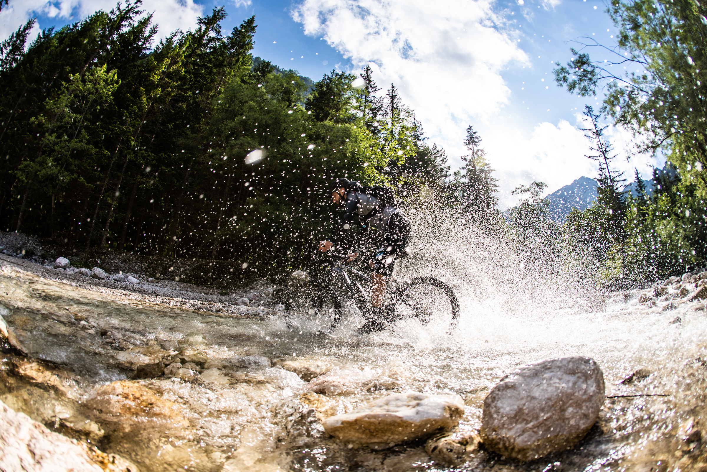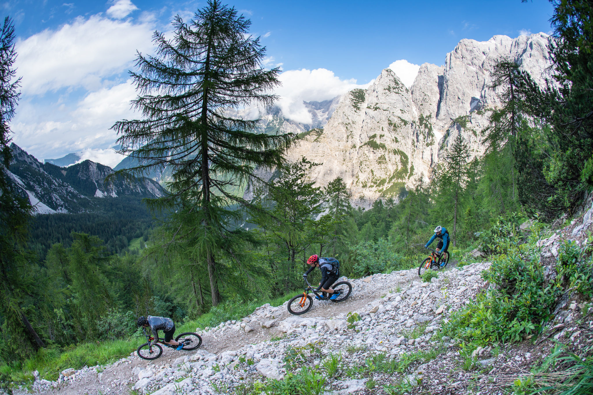 Au menu aujourd’hui, une longue montée vers les trois frontières, une zone où Slovénie, Autriche et Italie se touchent. Ensuite, nous auront droit à une très longue descente. Tout comme la veille, nous sommes à nouveau impressionnés d’emblée par la rapidité et la précision avec lesquelles le groupe Shimano XTR M9100 Race fonctionne. Les précédentes versions fonctionnaient toutes déjà de manière exemplaire, mais on constate que Shimano parvient à chaque fois à raffiner encore un peu plus les choses. C’est de l’ordre du détail, mais on imagine le travail qu’il y a derrière.