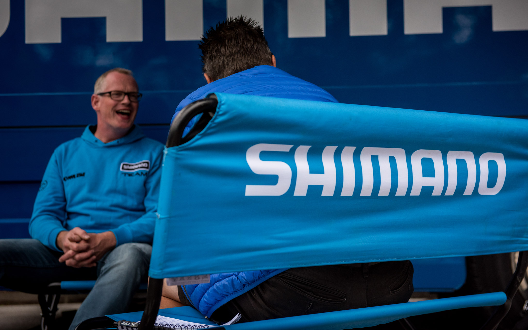 Outre l’essai des produits, nous avons profité de cette présentation du nouveau groupe Shimano XTR M9100 et de ses déclinaisons pour nous entretenir avec Takao Harada et Henry Bosch (ça ne s’invente pas), qui ne sont autres que les « pères » de ce nouvel XTR. Face au bus bleu Shimano, nous avons parlé vis, boulons, dents, choix de matériaux, concurrence avec Sram ou encore comment un Néerlandais et un Japonais travaillent ensemble sur un tel projet. Interview croisée :