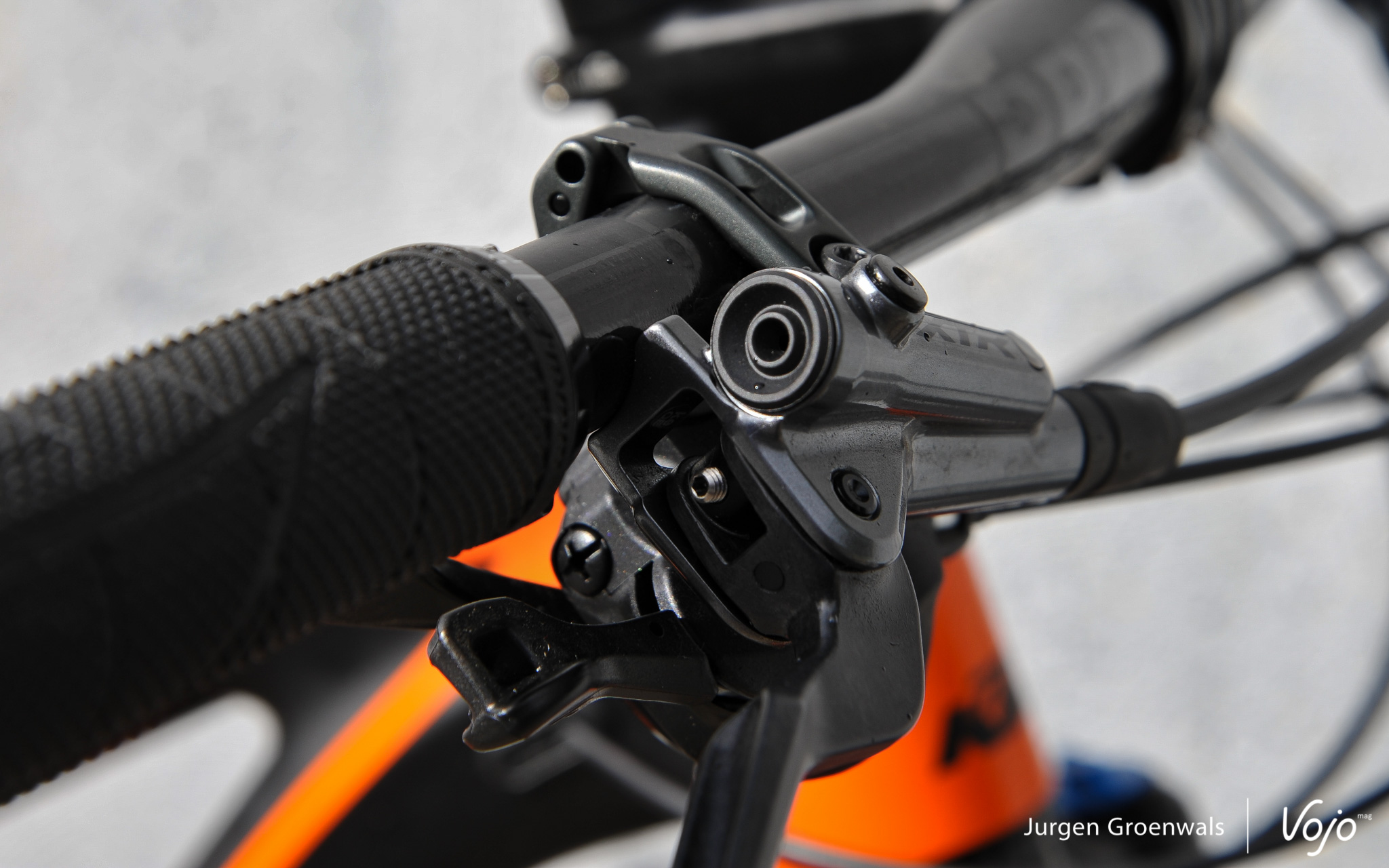Ce qui est clair dès le départ lors de cette phase de réglages, c’est que le nouveau collier i-Spec EV rend encore plus facile l’ajustement de la position du shifter. 14mm en latéral et 60 degrés pour l’angle : dur de ne pas trouver la position qui colle aux goûts de chacun. Et cela pour le shiter lui-même, mais aussi pour les leviers de freins. Vous noterez aussi au passage le petit insert en caoutchouc qui évite tout glissement des doigts, et qui se révèle bien agréable à l’usage.