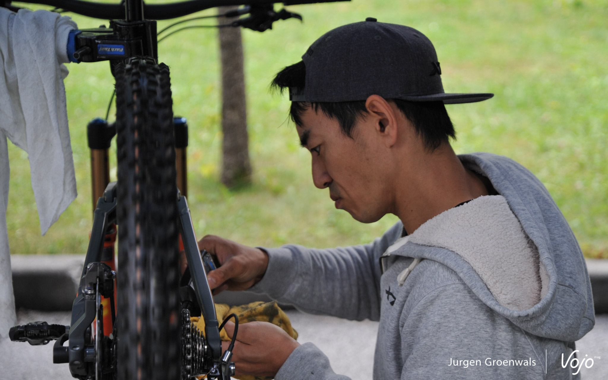 Takao Harada: “Question difficile ! Les deux sont intéressants, mais je dois dire que mon cœur me porte plus vers le vélo de montagne. J’ai toujours roulé en VTT. Ce que j’aime, c’est monter au sommet d’une montagne, puis la descendre. Typiquement, au Japon, cela signifie grimper jusqu’à environ 2000m de haut – et il me faut parfois 6 à 7h pour le faire – puis s’offrir 30 minutes de belle descente. C’est typique du VTT old-school à la japonaise ! (rires)