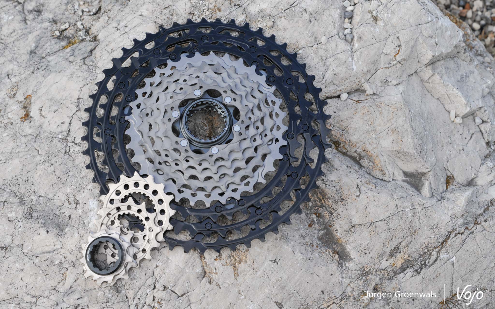 Contrairement à Sram, où la cassette est usinée dans un bloc d’acier avec simplement un dernier grand pignon de 50 dents en aluminium, Shimano opte pour une construction en plusieurs parties avec de l’acier pour les premiers pignons, puis du titane et enfin de l’aluminium. L’objectif est de trouver à chaque fois le meilleur compromis poids/longévité. Au final, on arrive à un poids de 375g, soit quasiment équivalent à la Sram XX1 Eagle.