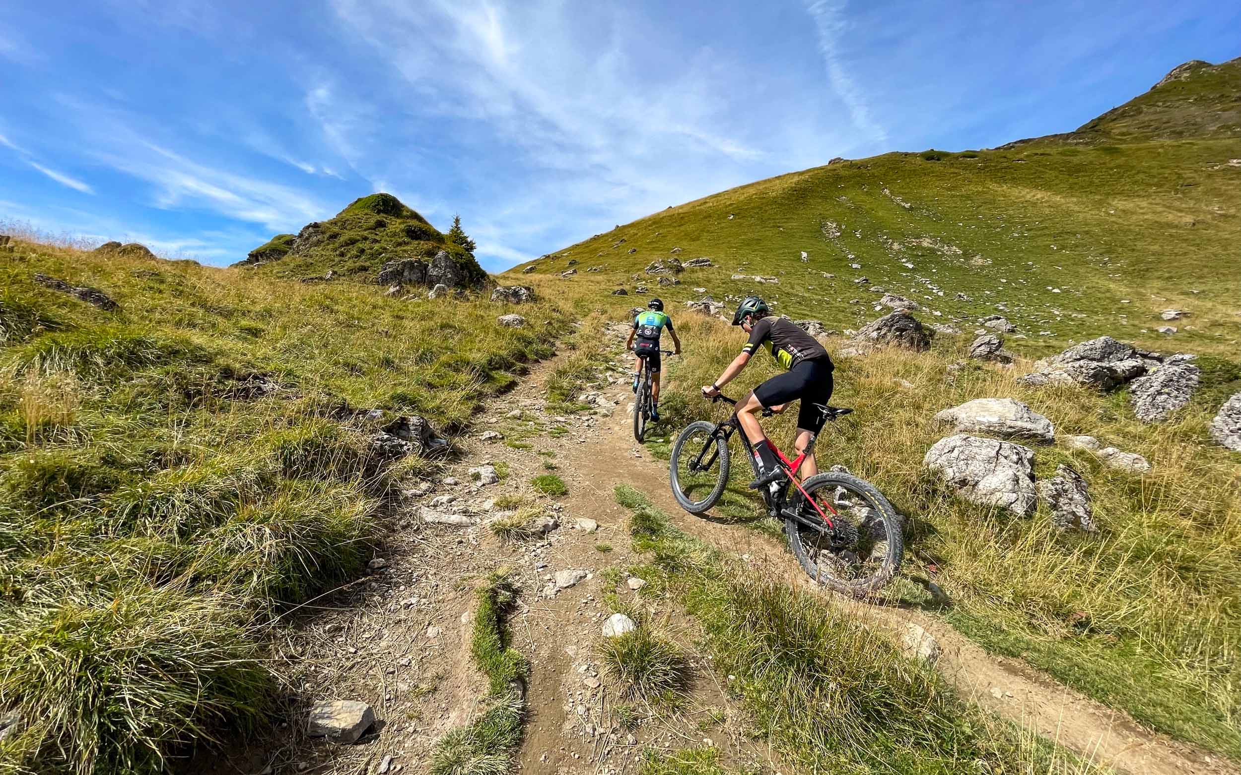 6h30 de vélo, 92 kilomètres et 3600m de dénivelé positif, une sacrée journée de bouclée ! L’objectif est rempli, nous avons pris nos repères : c’est personnellement vers le semi-rigide que mon coeur balance étant donné le peu de portions techniques et le dénivelé important. Plateau de 32 dents, pneus renforcés et inserts anti-pincement seront de mise. J’ai aussi pu affiner mon plan de nutrition et de gestion de l’effort, mais ça je ne le partage pas, c’est secret !