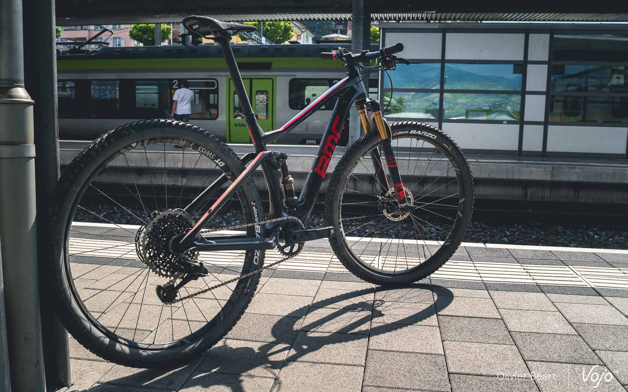Jouant la carte de l’originalité et profitant des portes ouvertes par son partenariat avec Swiss Tourism, c’est dans un… train en gare de Zurich que BMC nous a donné rendez-vous pour la présentation de ce modèle. Vu qu’on sait que ce n’est pas un pur XC mais plutôt un vélo dédié à l’évasion même s’il entend rester performant, c’est plutôt cohérent.