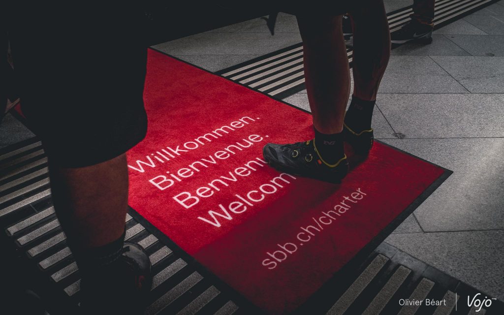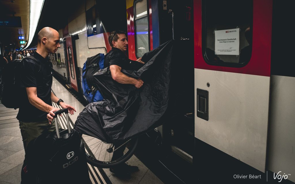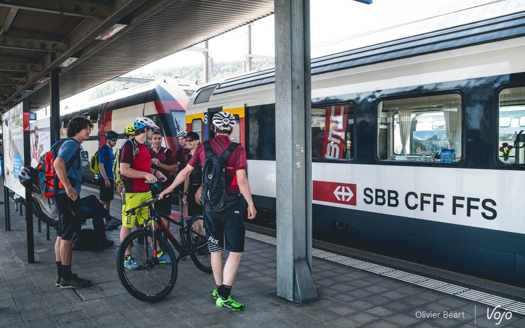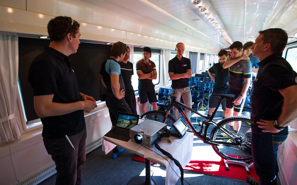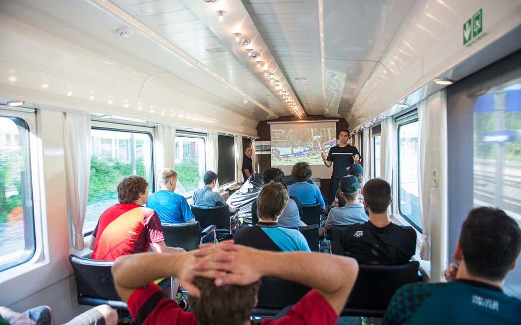 Jouant la carte de l’originalité et profitant des portes ouvertes par son partenariat avec Swiss Tourism, c’est dans un… train en gare de Zurich que BMC nous a donné rendez-vous pour la présentation de ce modèle. Vu qu’on sait que ce n’est pas un pur XC mais plutôt un vélo dédié à l’évasion même s’il entend rester performant, c’est plutôt cohérent.