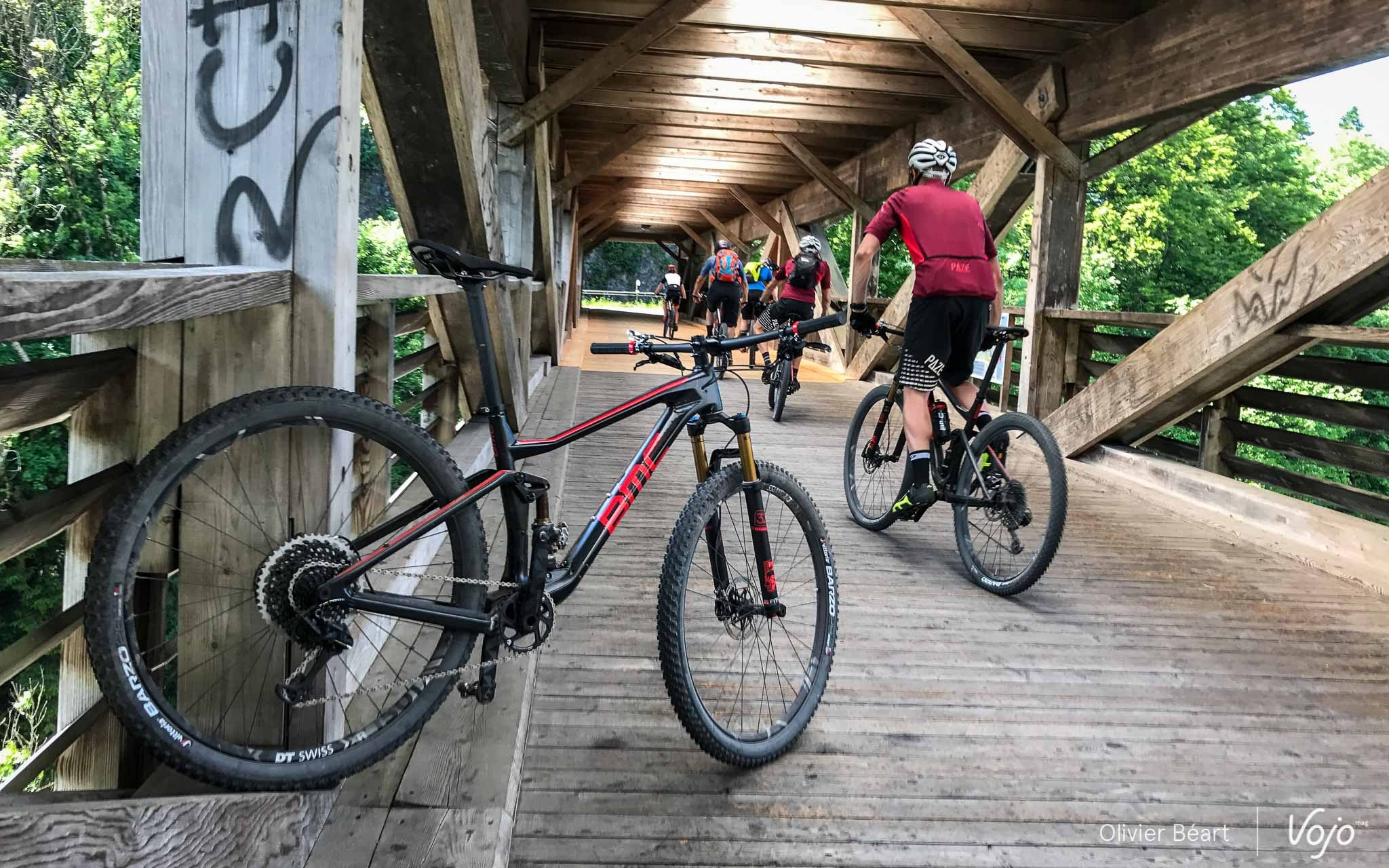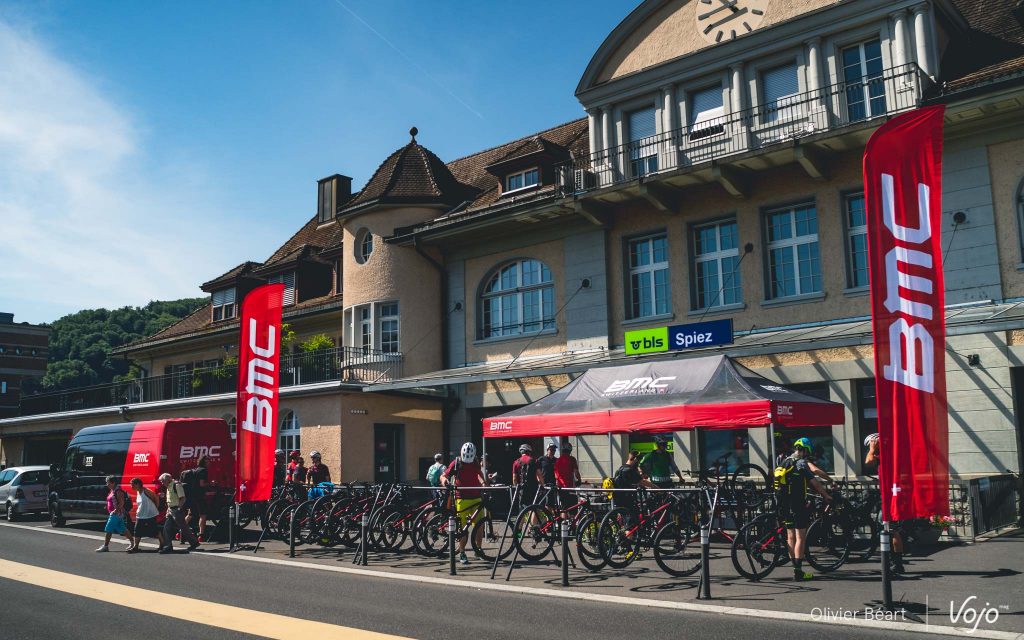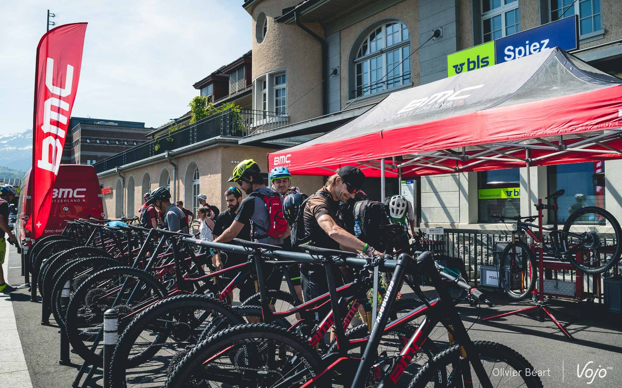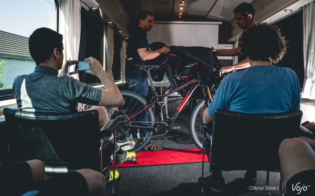 Peu après le départ du convoi, le nouveau BMC Agonist est dévoilé et Antoine Lyard, chef produit MTB de la marque, nous explique sa genèse : « Nous avons démarré ce projet il y a plusieurs années déjà, lorsque je suis arrivé en Suisse. A l’époque, Julien Absalon et les autres membres du team ne juraient que par le semi-rigide, même s’ils voulaient un « petit plus ». Pour eux, nous avons donc développé le nouveau Team Elite 01 et son arrière MTT softail (voir notre essai complet ici, NDLR) et, en parallèle, nous avons commencé à plancher sur un vélo léger et au bon rendement mais moins typé XC. Le résultat, vous l’avez sous les yeux. »