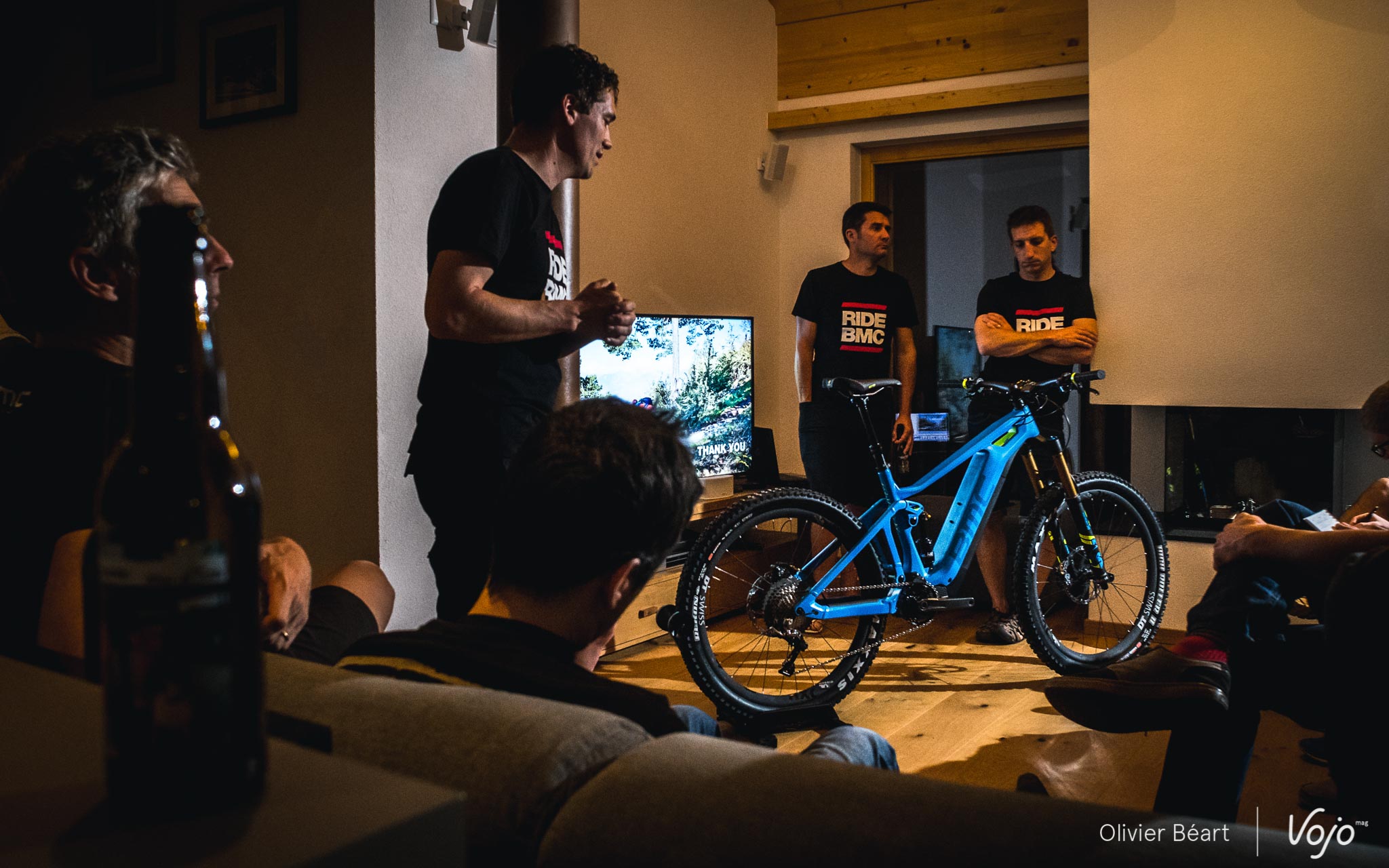Pour la petite histoire, ce vélo roule toujours aujourd’hui et il a été utilisé pendant tout notre trip suisse par notre photographe, preuve de la qualité du travail effectué déjà à ce niveau. « Cette « mule » nous a permis de valider pas mal d’options techniques, comme par exemple au niveau de la suspension APS, que nous avons décidé de conserver. A priori, on pensait qu’un système anti-pompage n’était pas vraiment utile sur un ebike, mais en fait si ! »