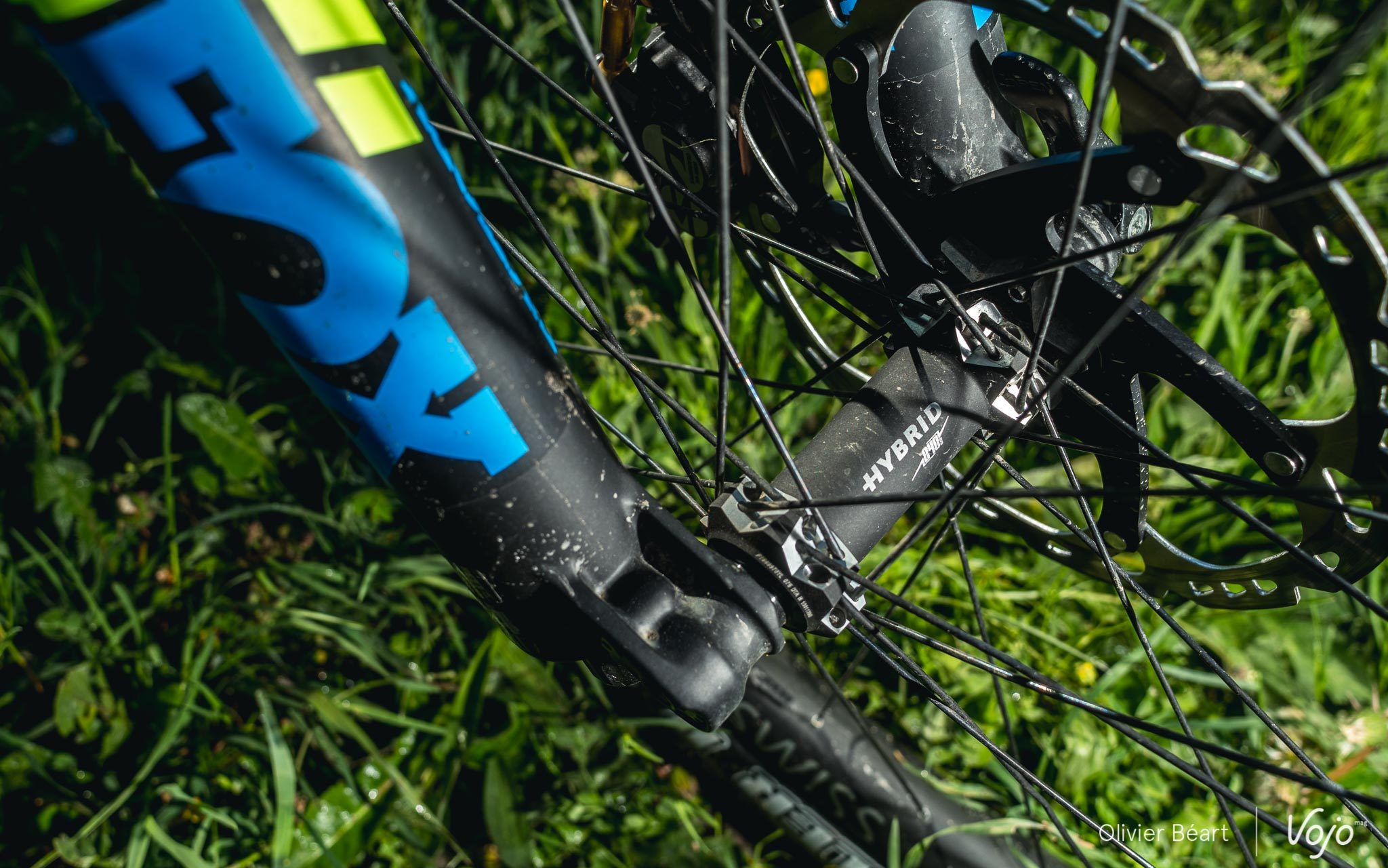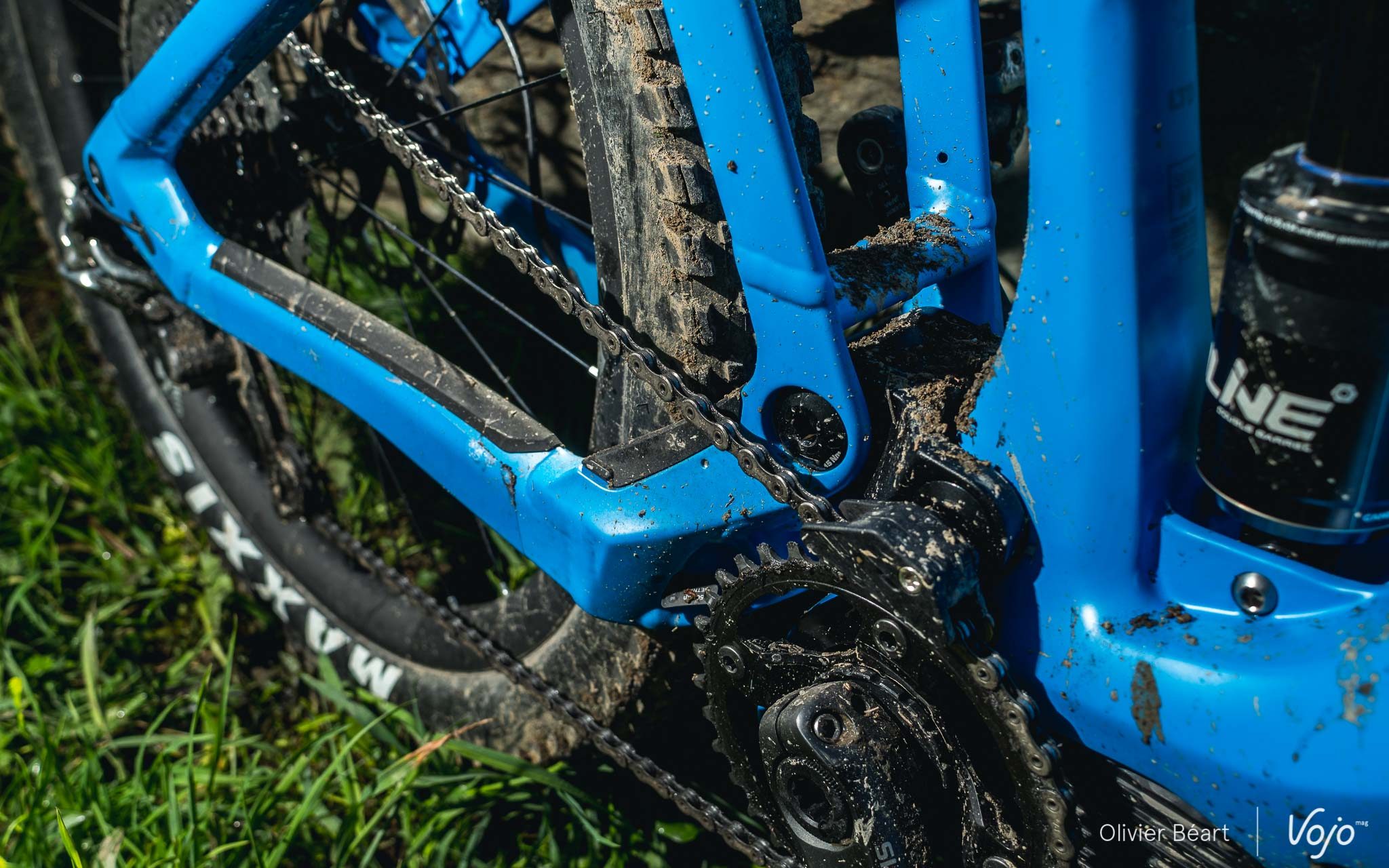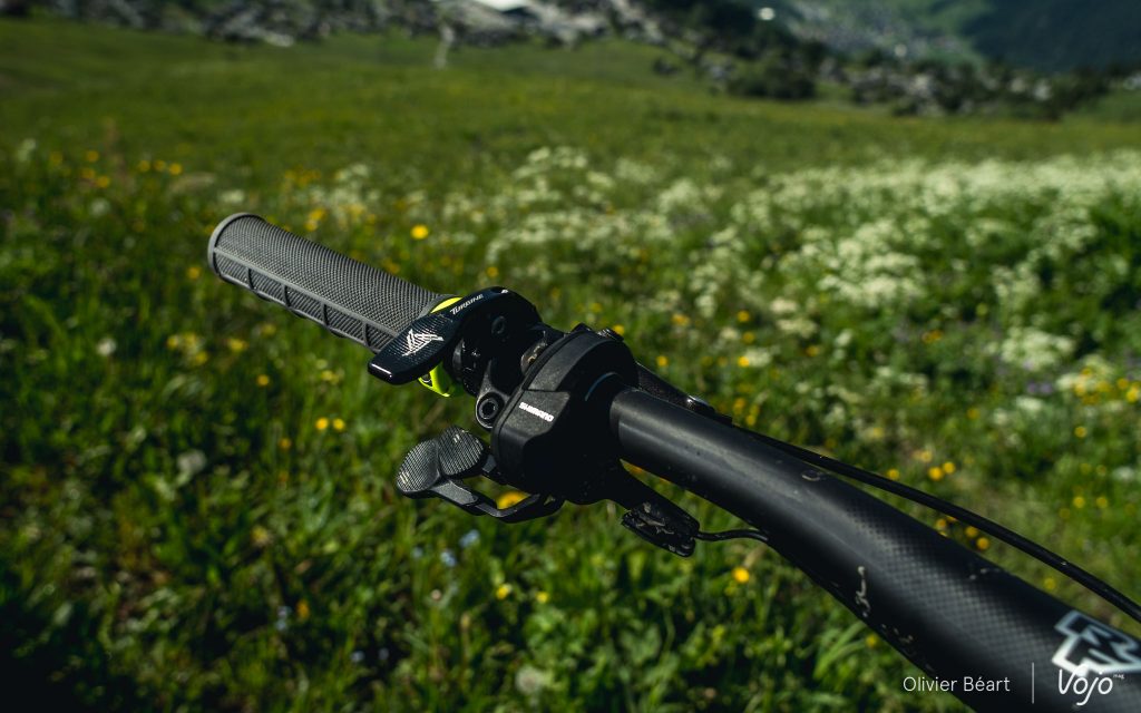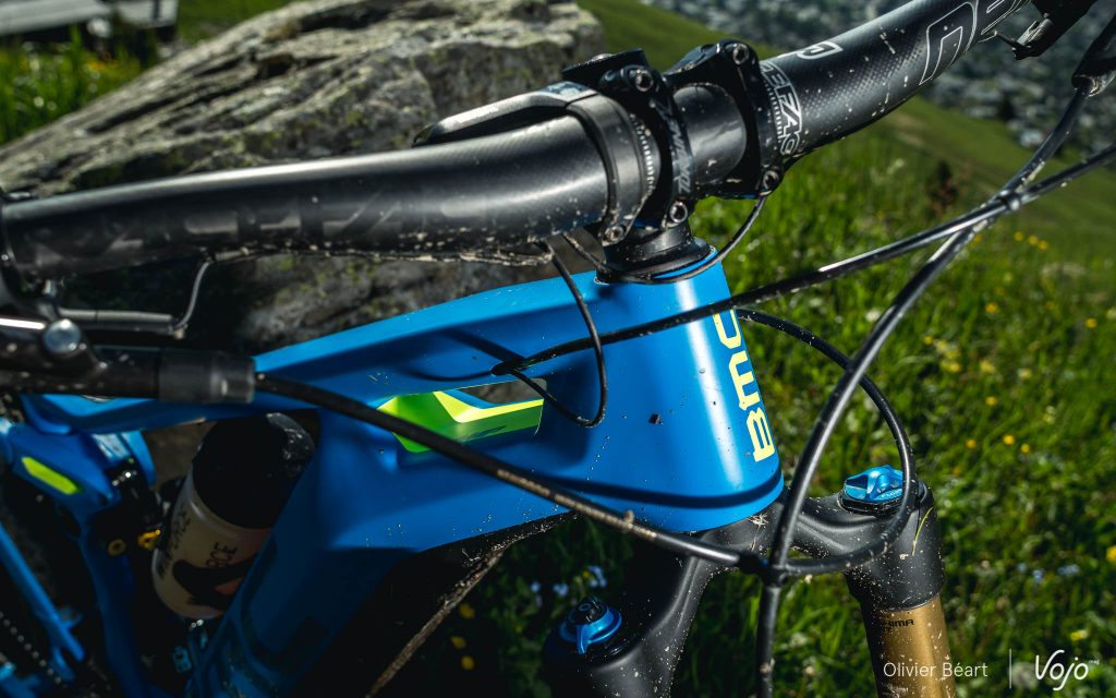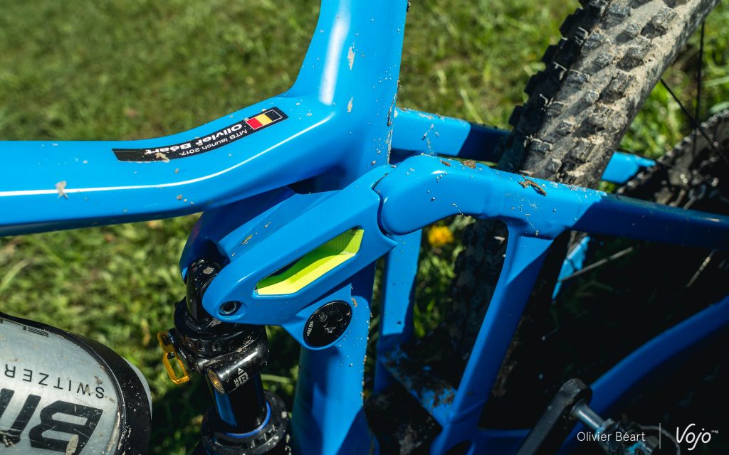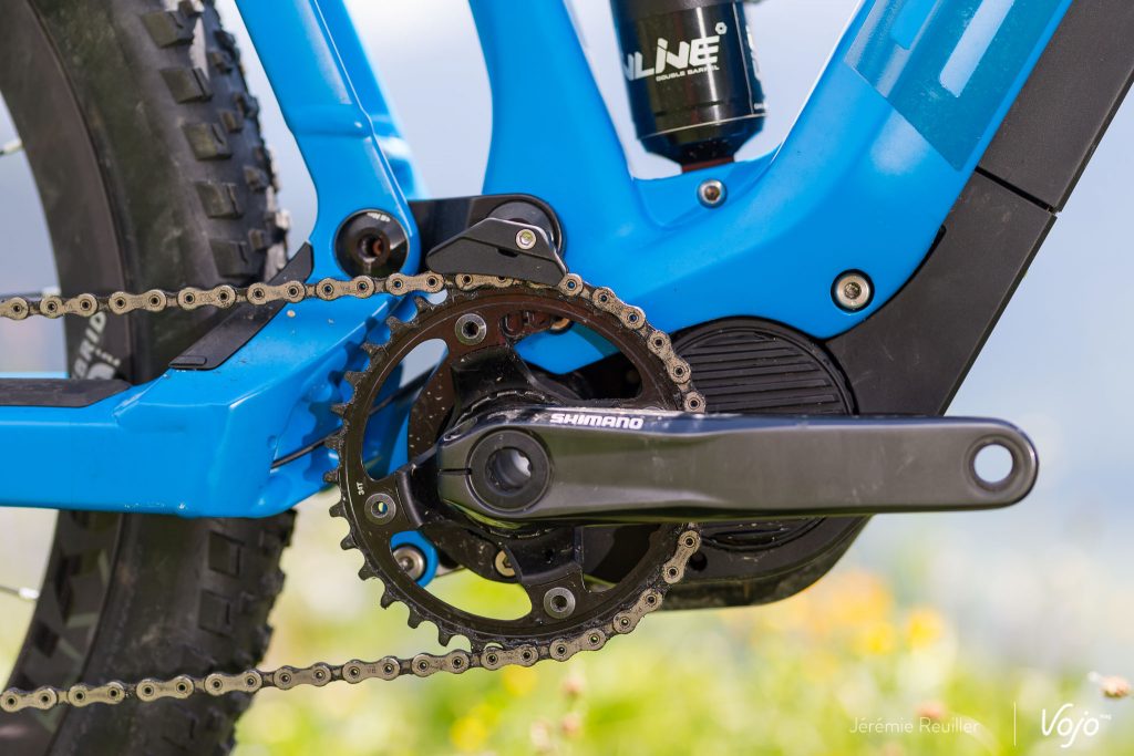 Un anti-déraillement spécifique a été développé par BMC car celui d’origine ne se mariait pas bien avec la suspension APS et, pour des raisons de protection et d’intégration visuelle, l’aimant du capteur de vitesse a été placé sur le disque de frein arrière, comme sur un certain Specialized Levo.