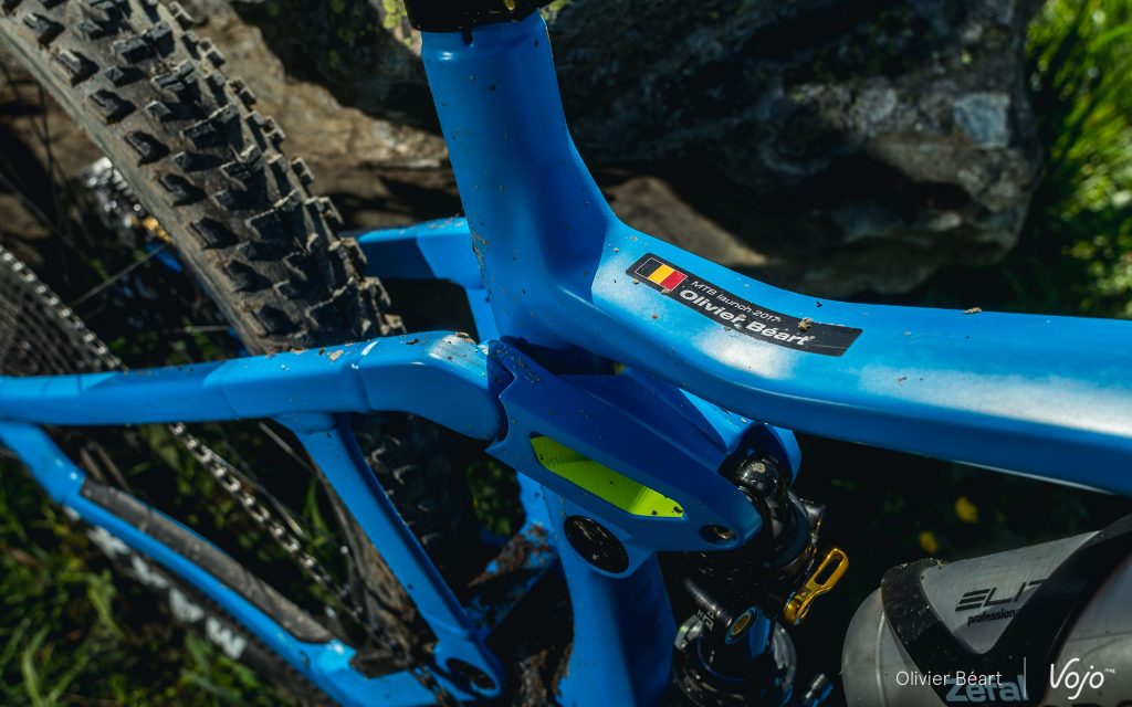 Pour la petite histoire, ce vélo roule toujours aujourd’hui et il a été utilisé pendant tout notre trip suisse par notre photographe, preuve de la qualité du travail effectué déjà à ce niveau. « Cette « mule » nous a permis de valider pas mal d’options techniques, comme par exemple au niveau de la suspension APS, que nous avons décidé de conserver. A priori, on pensait qu’un système anti-pompage n’était pas vraiment utile sur un ebike, mais en fait si ! »