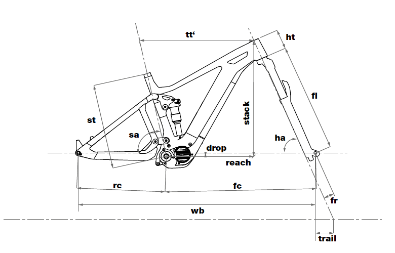 Le débattement est de 150mm à l’avant comme à l’arrière et la direction adopte un angle de 66° (fourche en offset 51mm). Le reach est franchement long avec 445mm en taille M (3 tailles au programme) et le but était clairement de renvoyer la proue du vélo fort en avant pour la confiance. Les bases font 445mm de long, soit la même chose que sur les vélos sans assistance de la marque. Quant à l’angle de selle, il est de 74,5°, soit assez redressé.
