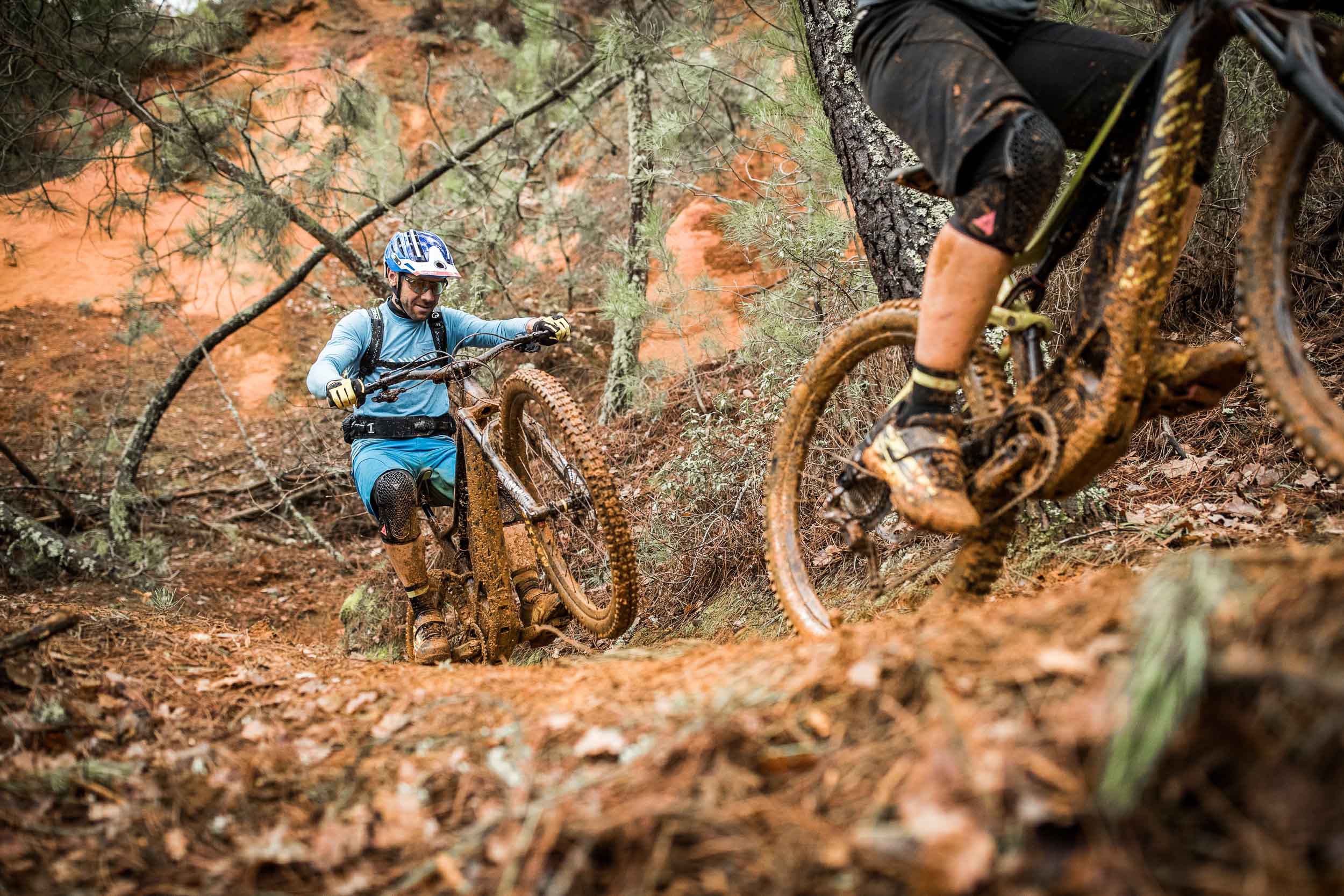 Tout comme ce bourrelet à l’arrière de la selle, qui permet de se sentir calé dans les montées moins raides mais plus longues (il y a d’ailleurs une version spécifique femme, plus large, dont on a goûté le confort et qui possède également ce bourrelet). Ce dernier s’avérera sans doute précieux les jours boueux, pour éviter de trop glisser sur la selle même avec un fessier bien maculé. À l’instar du choix de roues de tailles différenciées, standardisé par Moustache à ses débuts, ces inspirations issues du monde de la moto (bien connu de Fabien Barel, par ailleurs pilote d’enduro moto de talent puisqu’il a remporté une manche nationale la saison précédente) s’avèrent judicieuses sur le terrain.