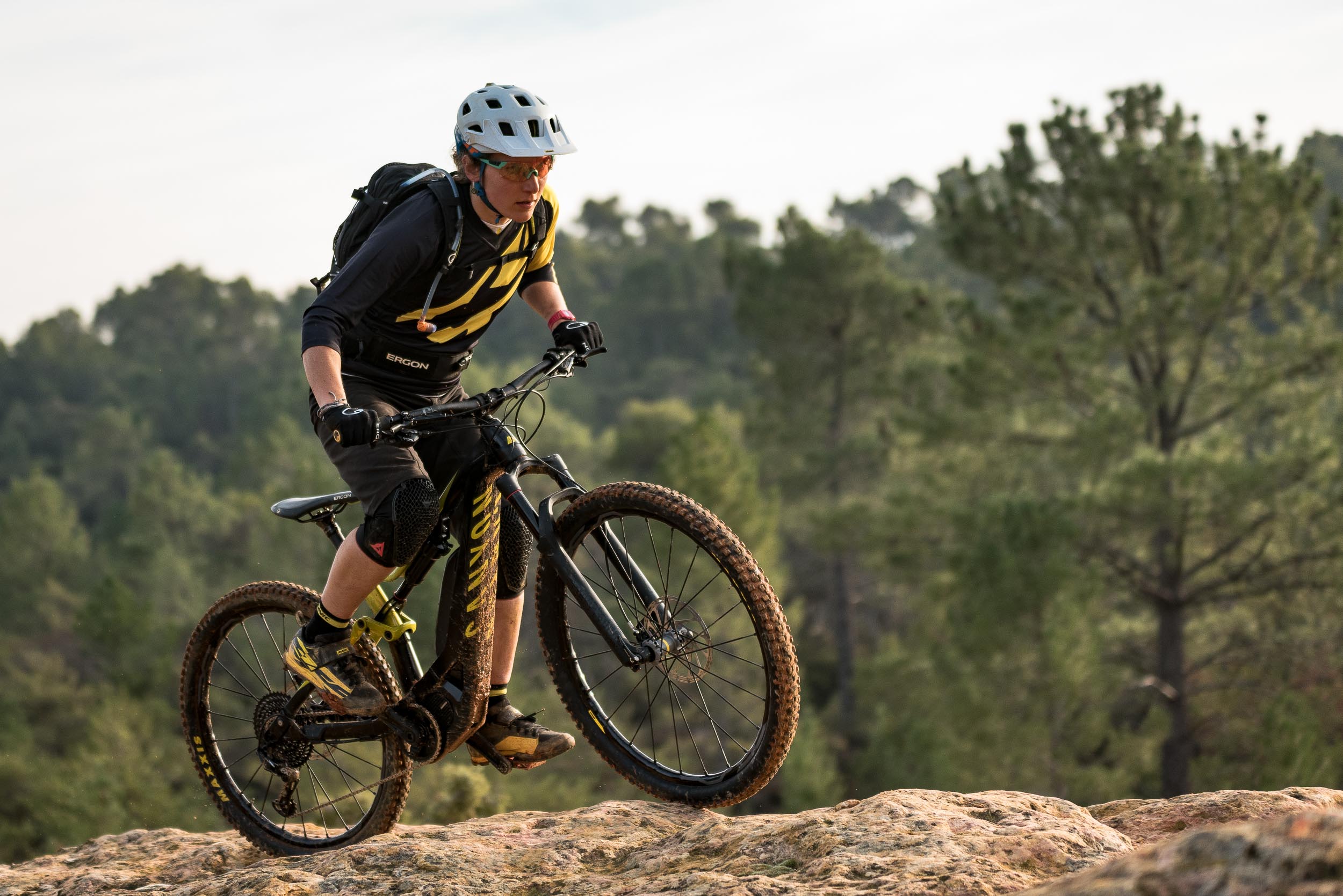Suspensions, pneus, jantes, freins, tout concourt à ce que les sections descendantes s’avalent sans se poser (trop) de questions. La sensation de confiance et d’emmener un vélo sain est vraiment plaisante, attestant du travail global mené sur le Spectral pour l’enduriser davantage (voir notre prise en main du modèle Unisex non électrisé). Autre choix technique pertinent : la longueur des manivelles en 165. À aucun moment, même dans les relances au cœur de sentiers parsemés de cailloux, on n’a touché. Et ça, c’est vraiment plaisant !