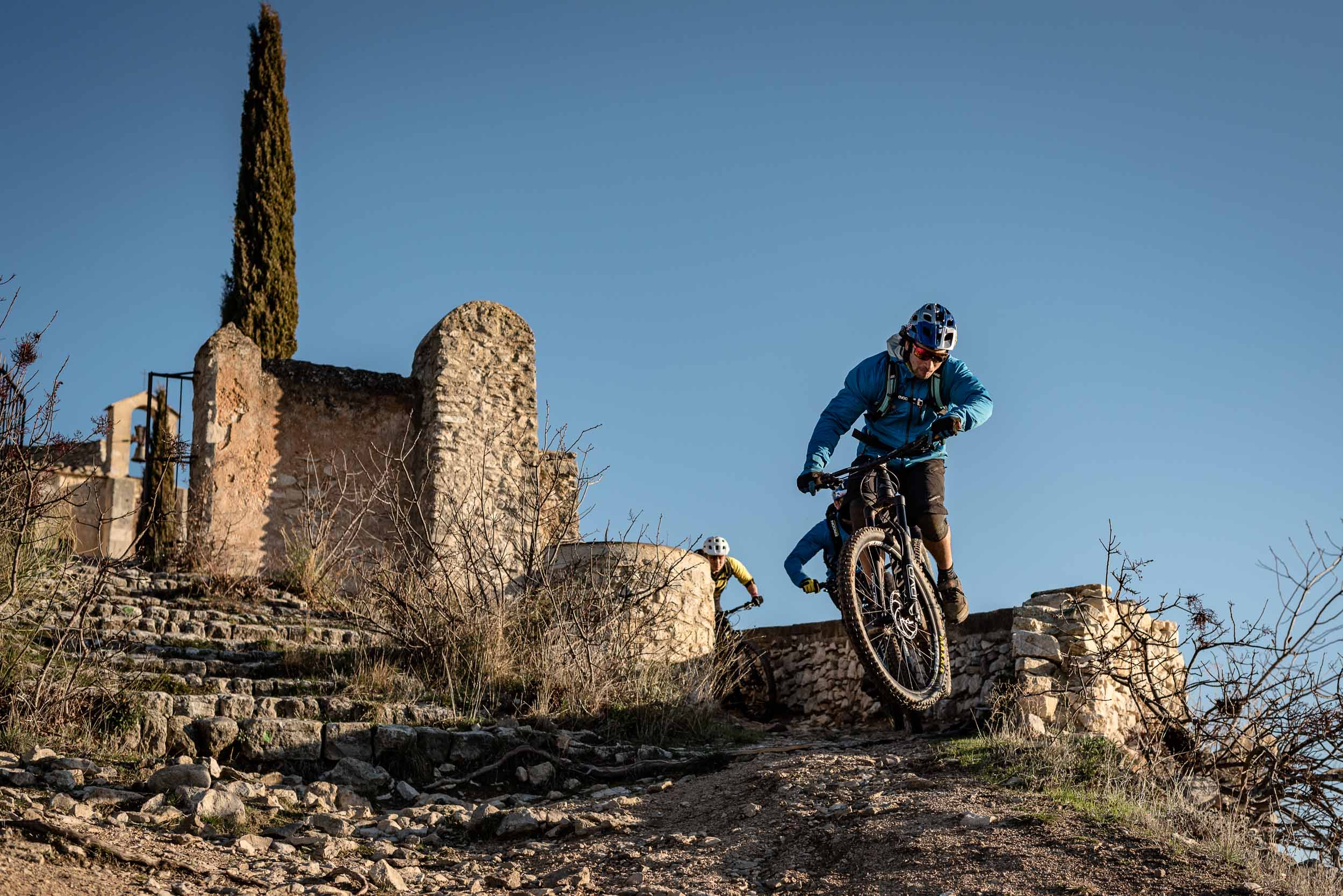 Car le vélo répond présent partout sur ce terrain de jeu de Fabien Barel qui mêle terres grises et dalles en pierre, petites montées raides ponctuées de pierres et de racines et coups de cul en descente. Ce qui m’a le plus bluffée ? L’impression que même dans les sections raides, l’avant ne décolle pas et l’arrière garde la motricité à chaque instant. Auparavant, même sur des e-bikes très aboutis (type Scott e-Spark), le franchissement en montée avec son corollaire – conserver la motricité sans cabrer – avait pu être délicat dans certaines sections.