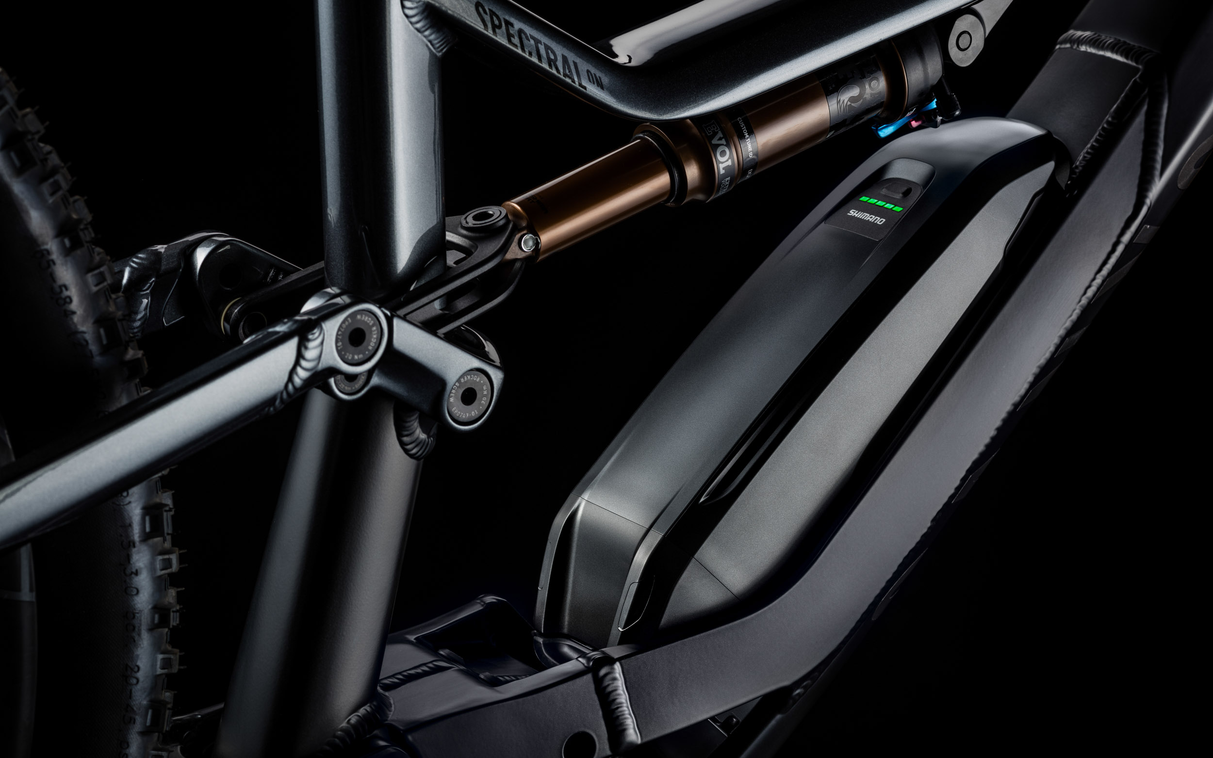 Outre ce point fondamental, Fabien Barel nous explique avoir testé toutes les autres solutions du marché et préféré la Shimano pour son côté doux mais puissant, ainsi que la possibilité de pédaler au-delà de 25km/h sans emmener de la pignonnerie hors assistance (coucou Bosch). Cerise sur le gâteau, Shimano propose des manivelles très courtes (en 165mm sur le Spectral:ON) qui évitent de taper un peu partout en côte. Dernier argument non négligeable, même s’il n’est pas technique : Shimano dispose d’un réseau de service mondial hyper développé, à même de dépanner un consommateur n’importe où dans le monde.