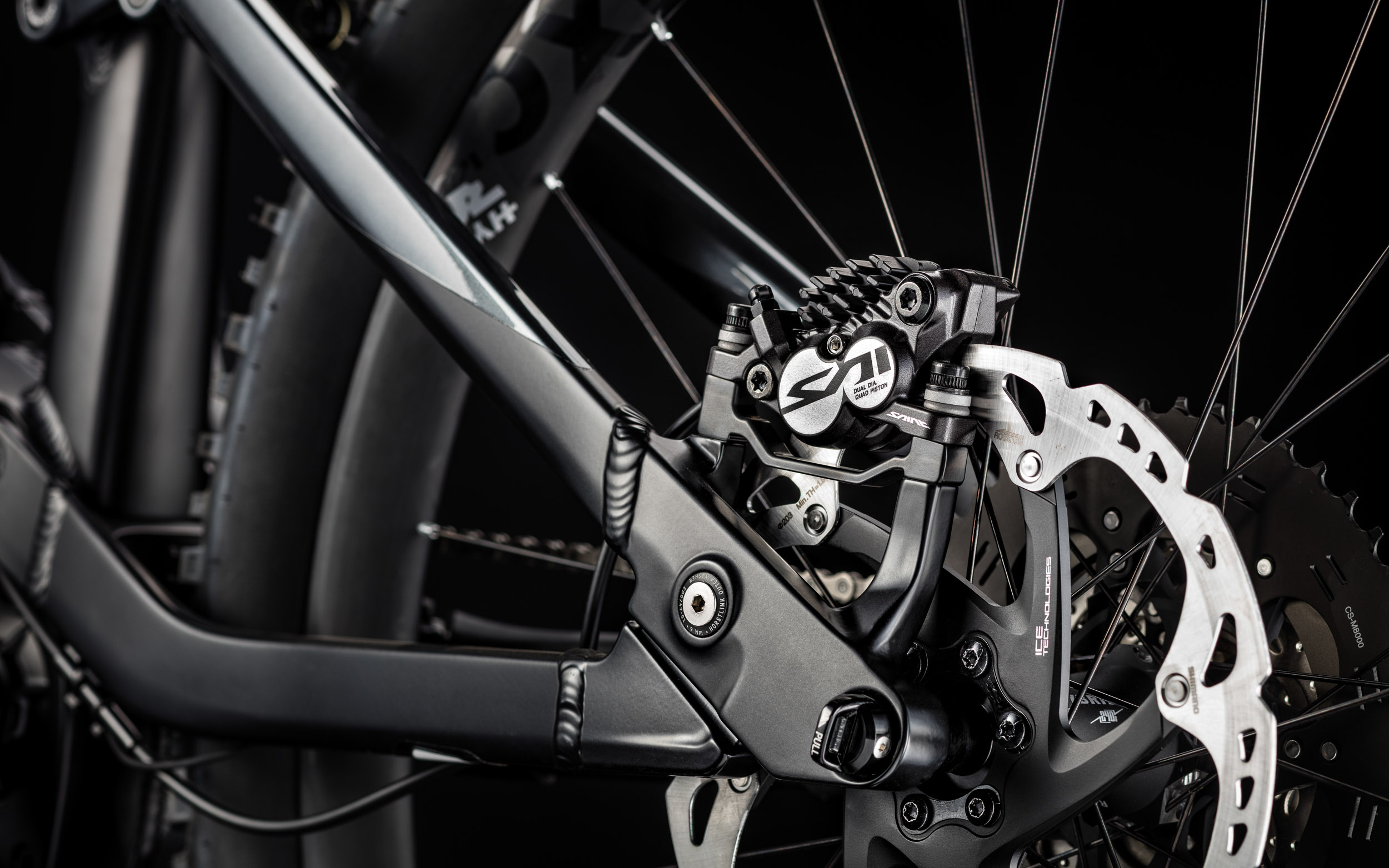 Canyon a aussi mis l’accent sur le freinage avec des étriers 4 pistons sur l’ensemble de la gamme et des disques de 200mm, histoire d’arrêter l’engin malgré son poids et de ne pas avoir trop d’échauffement dans les longues descentes. Enfin, il est aussi équipé de composants dits de « catégorie 3e », c’est-à-dire testés selon les plus hautes contraintes par la marque et 50% plus de charge par rapport à la catégorie 3 lors des tests de fatigue.