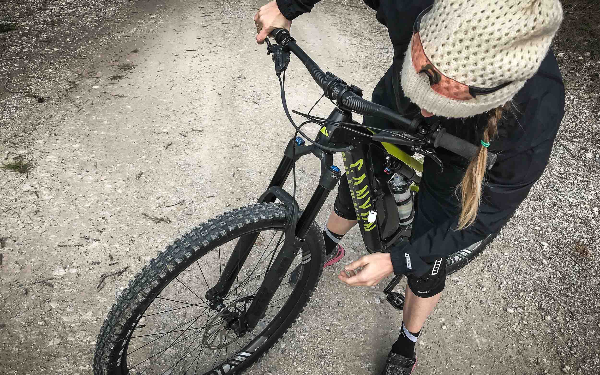 Là, on ne peut que louer l’excellent travail mené sur la suspension, qui permet à la cinématique de fonctionner de façon optimale et de mêler adroitement motricité et grip à l’avant. Si je ne suis pas passée dans certaines montées raides, je ne le devais qu’à moi-même (dur pour l’amour-propre, mais bon signe pour le vélo). Car la roue arrière en 2.8 motrice fameusement.