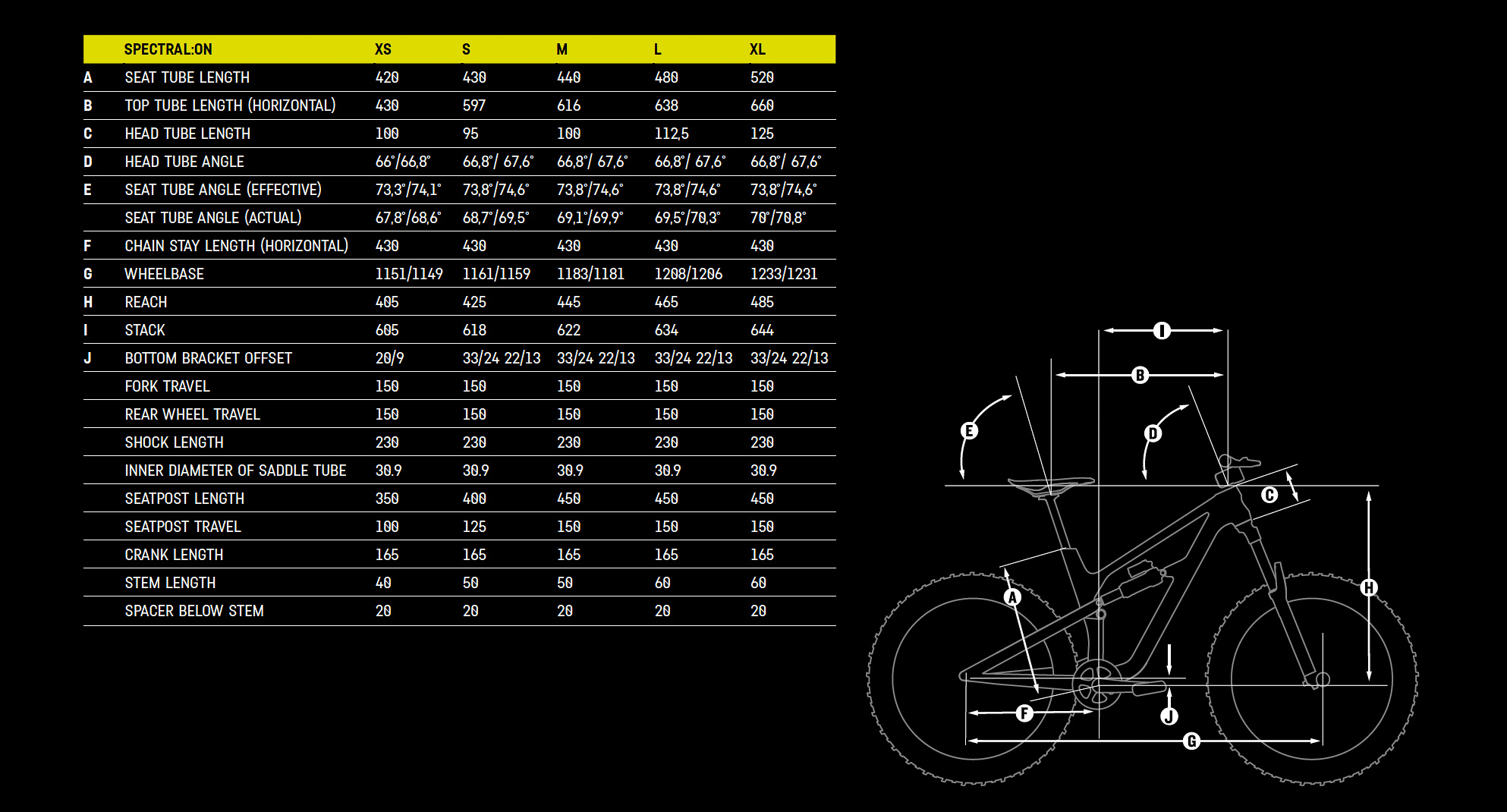 Au niveau de la géométrie, on se retrouve avec des valeurs très proches de celles du Spectral classique, notamment au niveau des bases en 430mm dont nous avons parlé d’emblée car il s’agit d’un beau petit exploit sur un VTTAE.