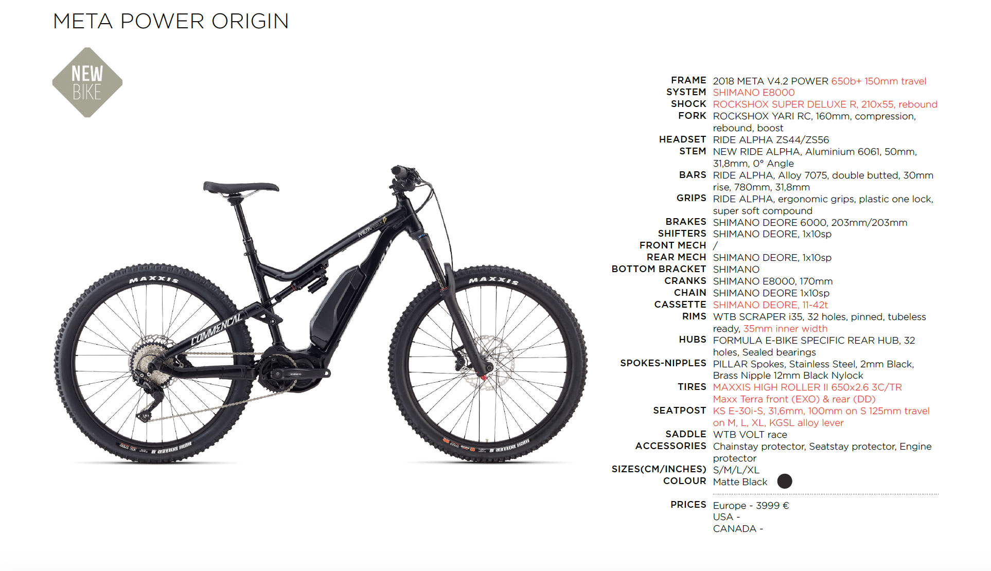 On le voit, la gamme est assez réduite mais cohérente avec 3 modèles (Commencal Meta Power Origin, Essential et Race) dont le prix d’accès se situe à 3999€. Compte tenu des équipements de la version « de base », c’est plutôt concurrentiel et il risque même de faire de l’ombre au Meta HT Power Race à 3499€… sans suspension. Quant au haut de gamme à 5000€, il culmine là où d’autres e-bikes commencent seulement. Bref, Commencal est parvenu à rester dans sa ligne tarifaire habituelle et c’est tant mieux.