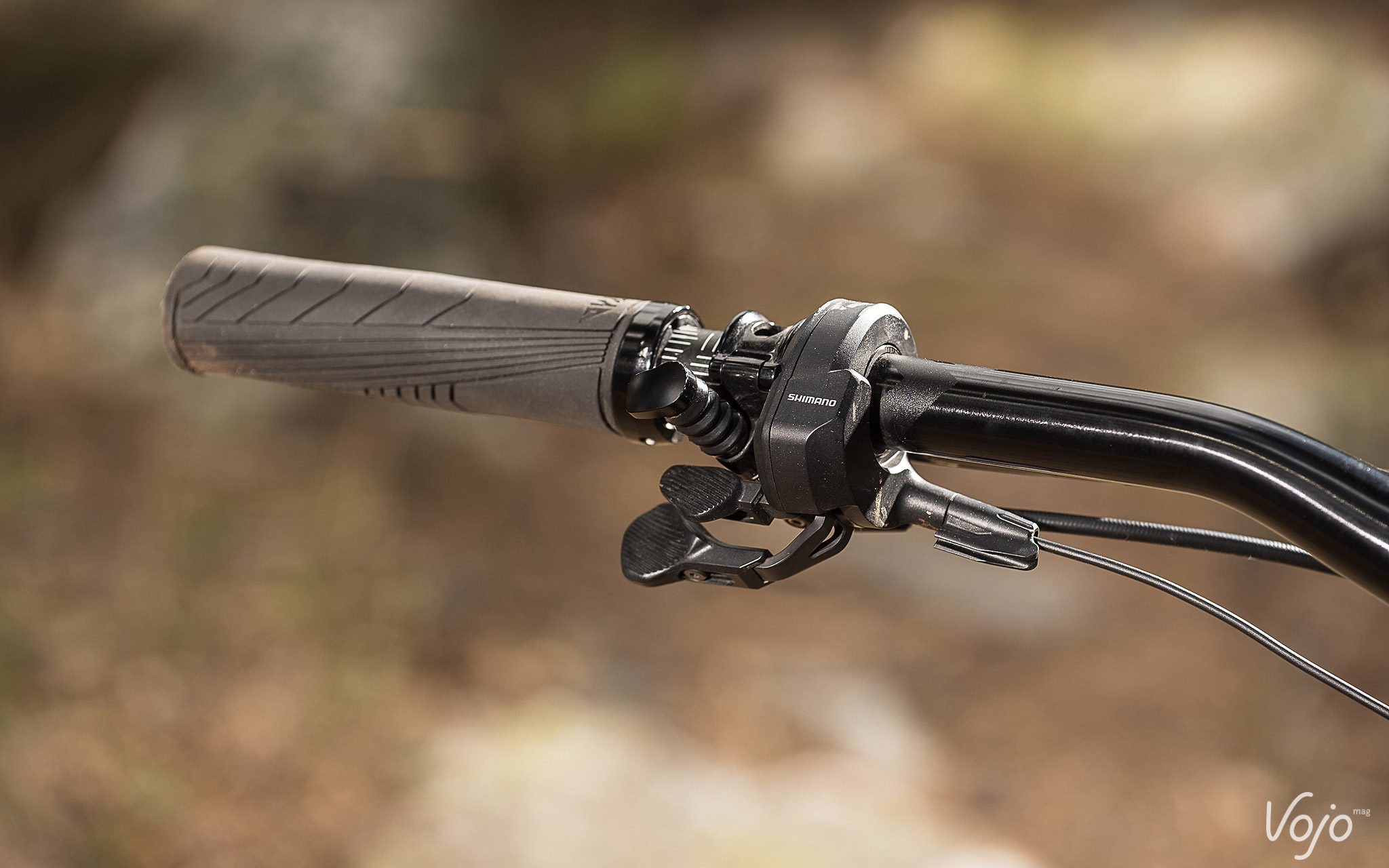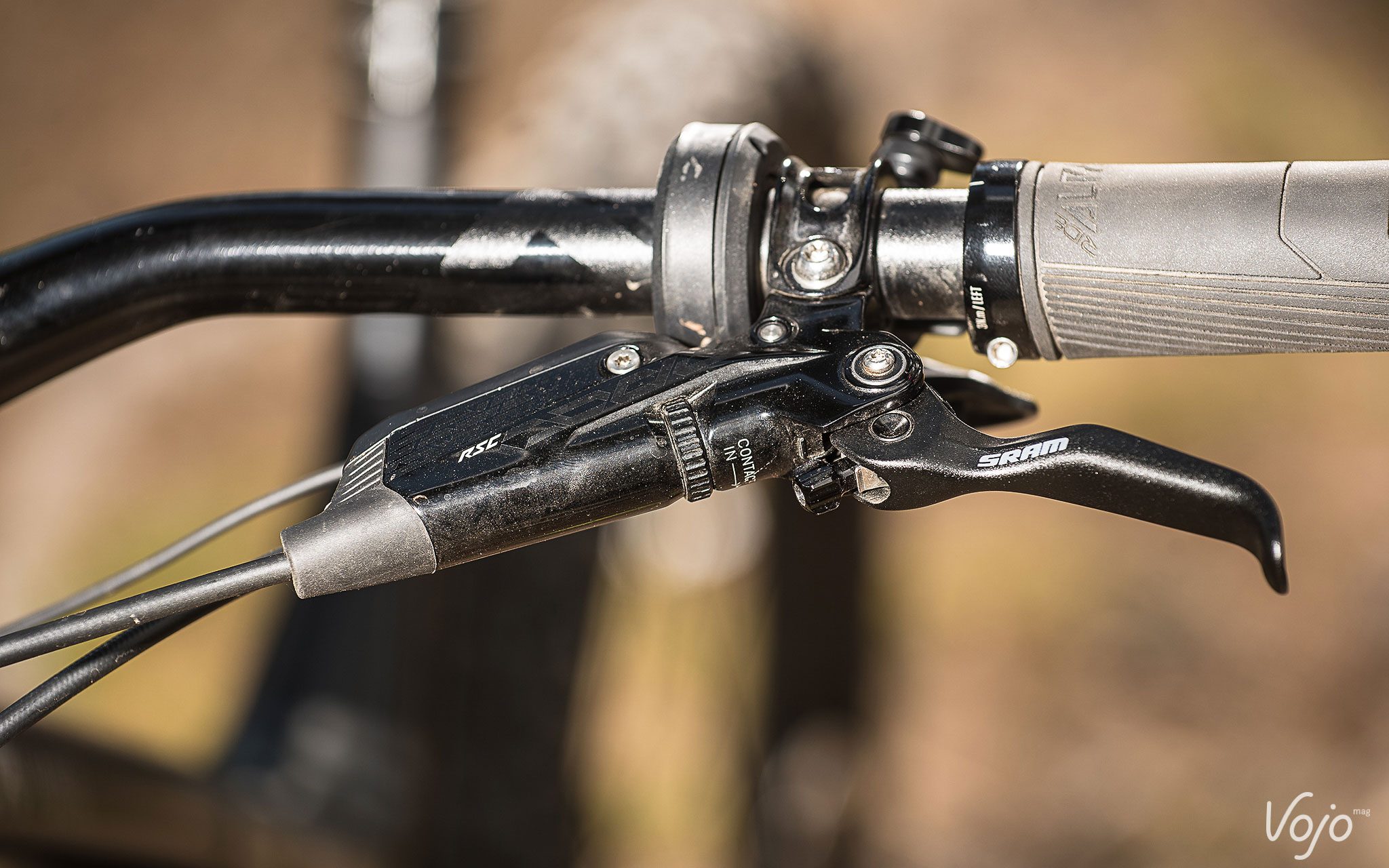 Le centrage des masses et le fait qu’on n’a pas une direction camionnesque joue un rôle, mais les suspensions aussi. Fox fait une grosse razzia en ce moment, mais RockShox garde de solides arguments sur le terrain. L’amortisseur à ressort aide aussi à économiser le pilote au niveau des jambes en absorbant encore un peu mieux les mini vibrations qu’un amortisseur à air. Enfin, l’ergonomie du poste de pilotage et un détail comme les grips très confortables font office de cerise sur le gâteau.