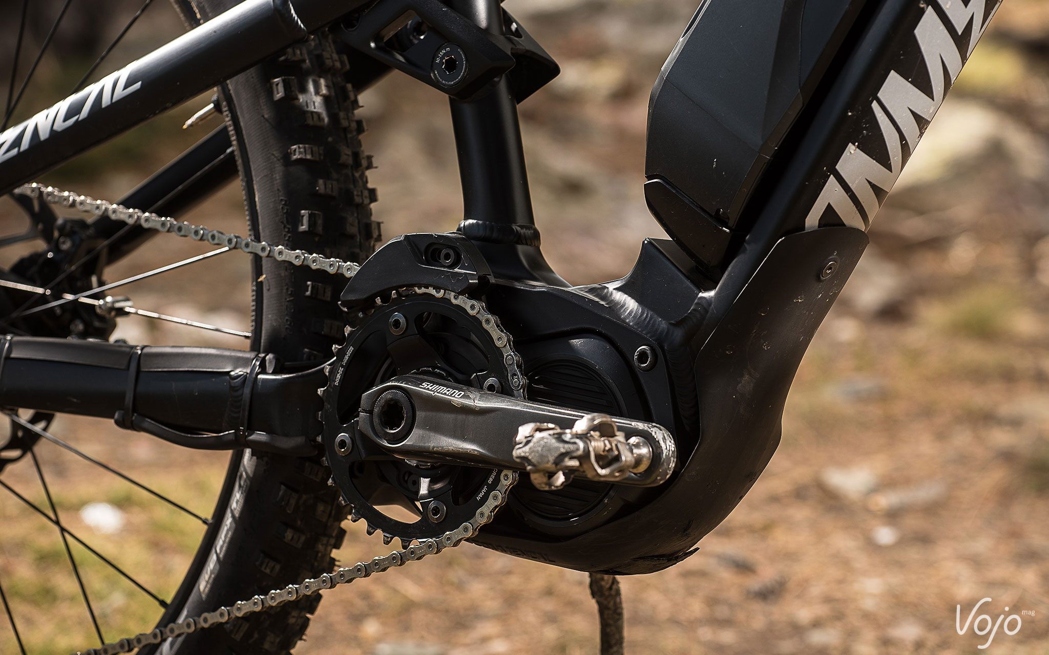Par contre, sur terrain mixte et technique (façon sentier en balcon avec des passages trialisants), le boîtier semble fort bas et les manivelles touchent le sol. Quand nous lui signalons, Thomas qui nous accompagne sourit : « On est d’accord et sur la version de série, nous avons remonté un peu le boîtier. Puis ici ce sont des manivelles de 175mm et il y aura des 170 en production. » Nous voilà rassurés !