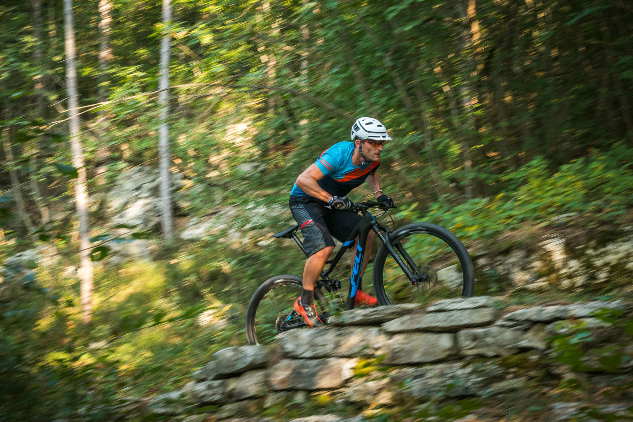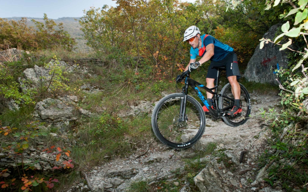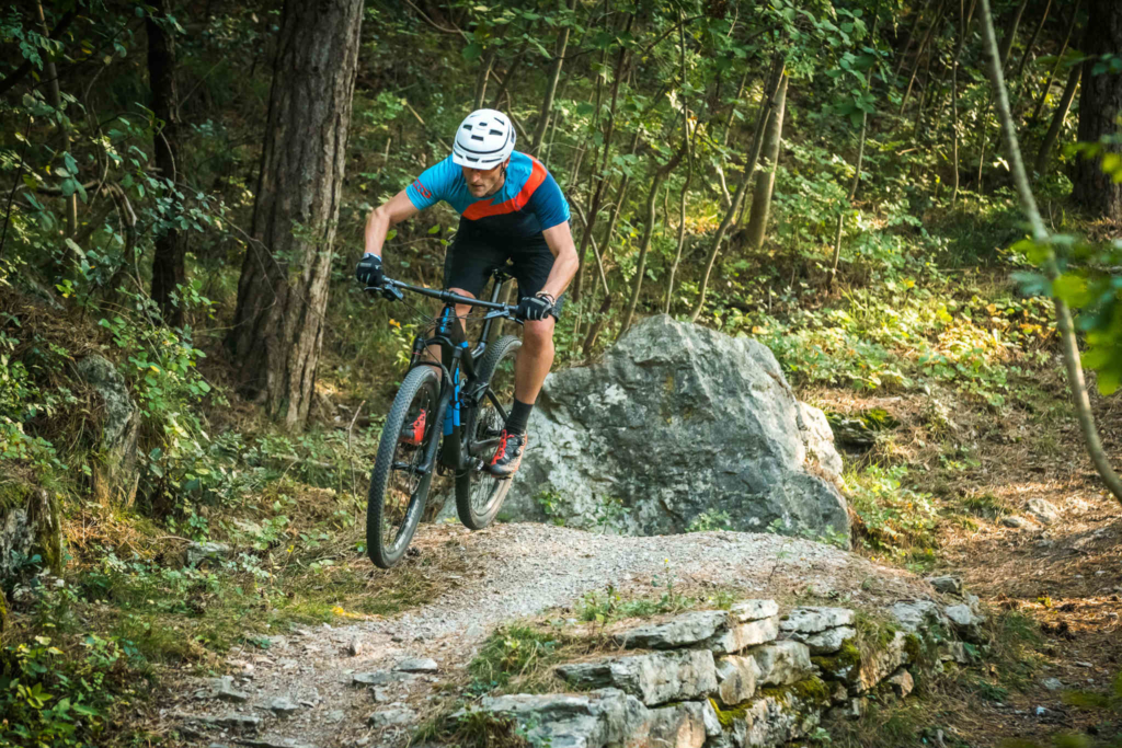 Ceux qui sont familiarisés au terrain et aux trails autour de Torbole savent qu’ils ne sont pas des plus simples. Les montées sont raides, alors que la surface est un fameux mélange de rochers et de cailloux. Felt avait tracé trois boucles pour l’occasion, dépendant du type de vélo. Plus tôt dans la journée, nous roulions sur le nouveau semi-rigide, le Doctrine (nous vous en reparlerons). La boucle pour le Doctrine était un parcours-type du cross-country moderne : une côte raide, une descente rapide suivie d’une nouvelle côte raide et d’une descente rocailleuse brutale.