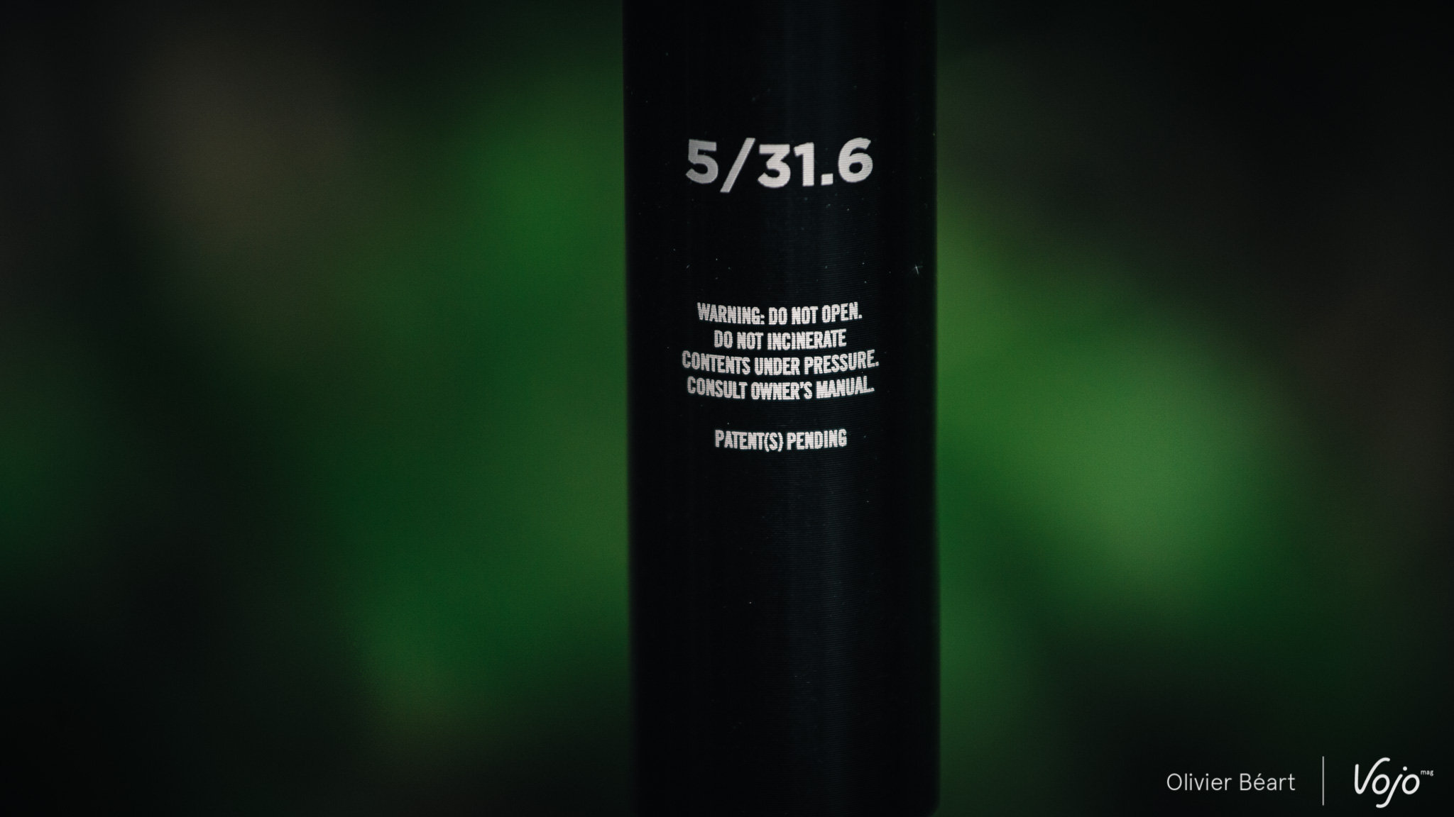 A l’intérieur, Fox a voulu miser sur la fiabilité et la douceur de fonctionnement. On ne retrouve pas une technologie air/huile comme sur la plupart des modèles du marché, mais gaz/huile, comme sur les fourches Float de la marque. En bas, on retrouve de l’azote sous pression, installé en usine. La pression du gaz à l’intérieur n’est pas ajustable soi-même avec une pompe, mais ce n’est pas très important car la vitesse de remontée dépend de la pression sur la commande au guidon. Sur ce point, Fox a aussi beaucoup travaillé sur la fluidité du levier de commande et son faible débattement afin d’assurer une action très facile de la tige.